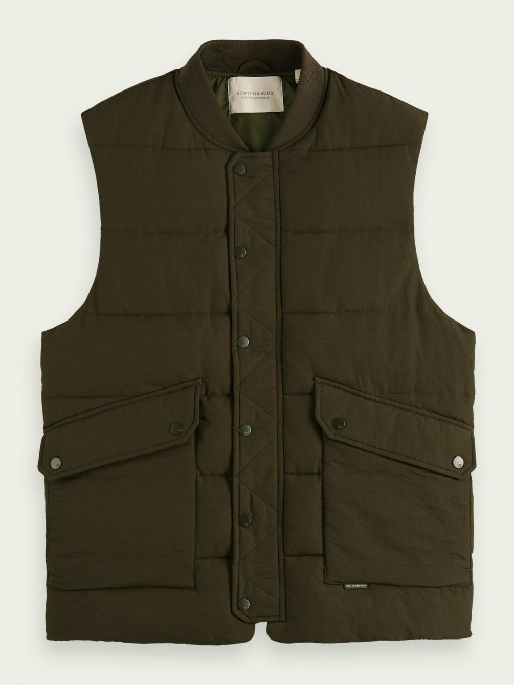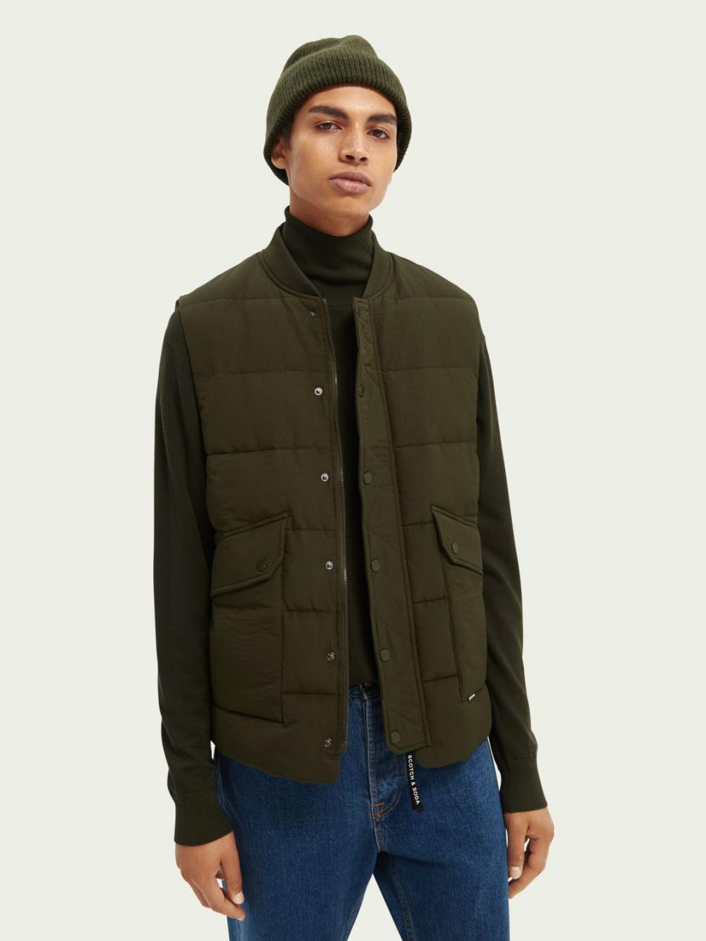 Jassen & jacks | Doorgestikte bodywarmer Utility Green – Scotch & Soda Heren