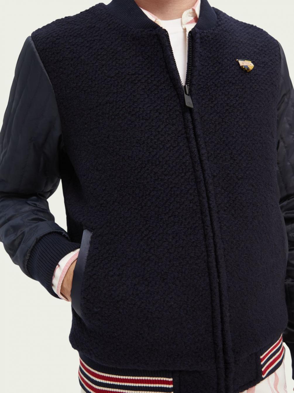 Ons gebreide bomberjack is de ultieme mix van klassiek en modern. Perfect voor het tussenseizoen en voor iedere gelegenheid, overdag of ’s avonds. Het jack is ontworpen met een geribbelde zoom en mouwboorden en een geborduurd logo op de voorkant.
