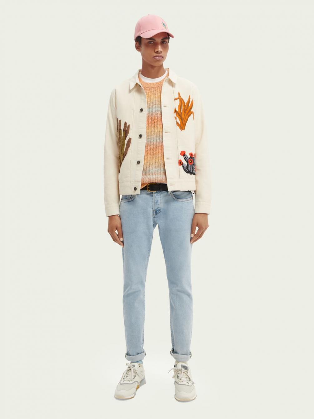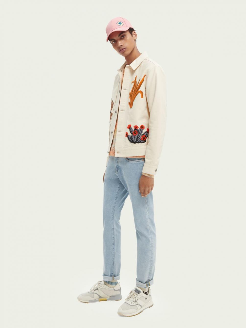 Onze nieuwe versie van het truckerjack is gedecoreerd met aandachtig geplaatste borduursels. Dit jack is geïnspireerd door het woestijnleven en geeft je outfit een vleugje kleur. We hebben de klassieke details van het truckerjack behouden. Statement en simpel tegelijk.