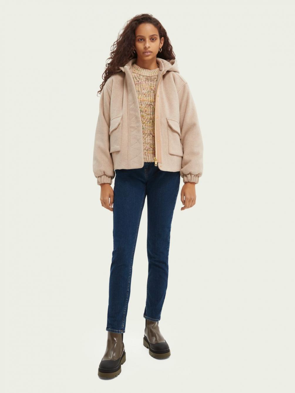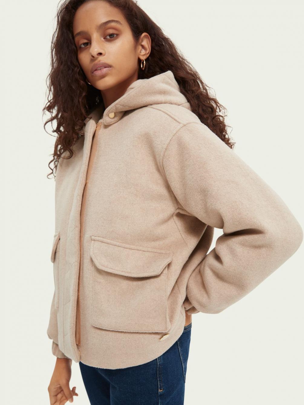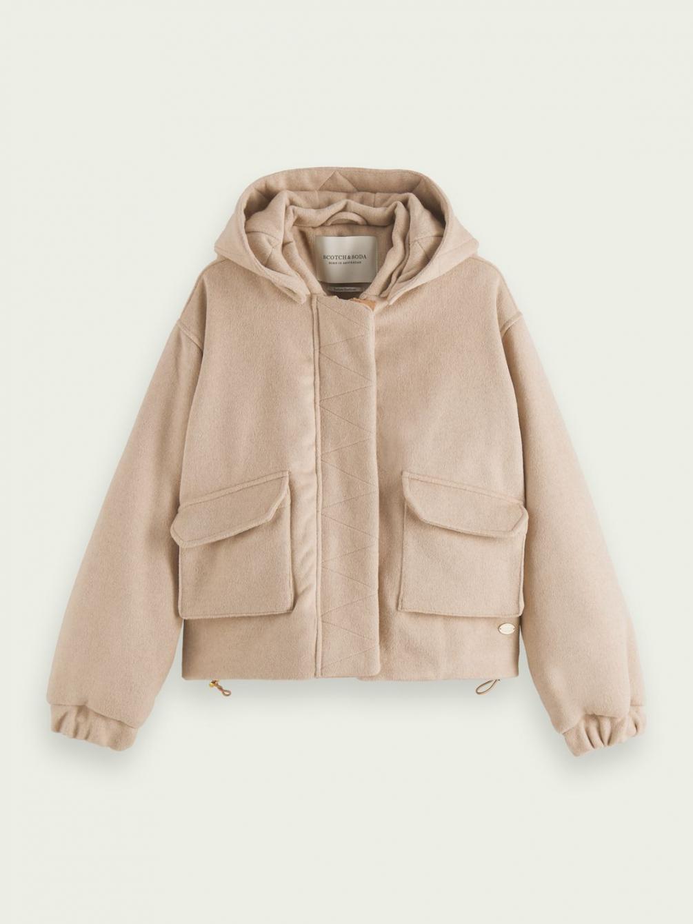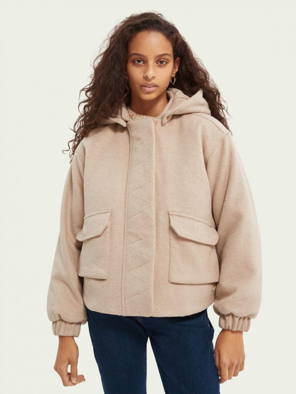 Jassen & jacks | Korte jas met capuchon Oatmeal Melange – Scotch & Soda Dames