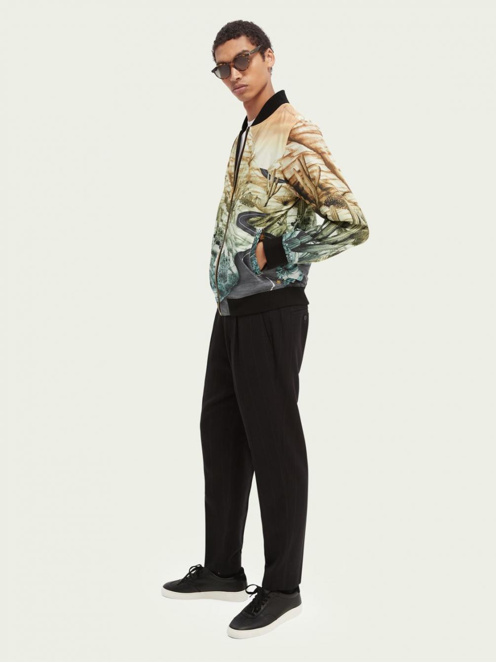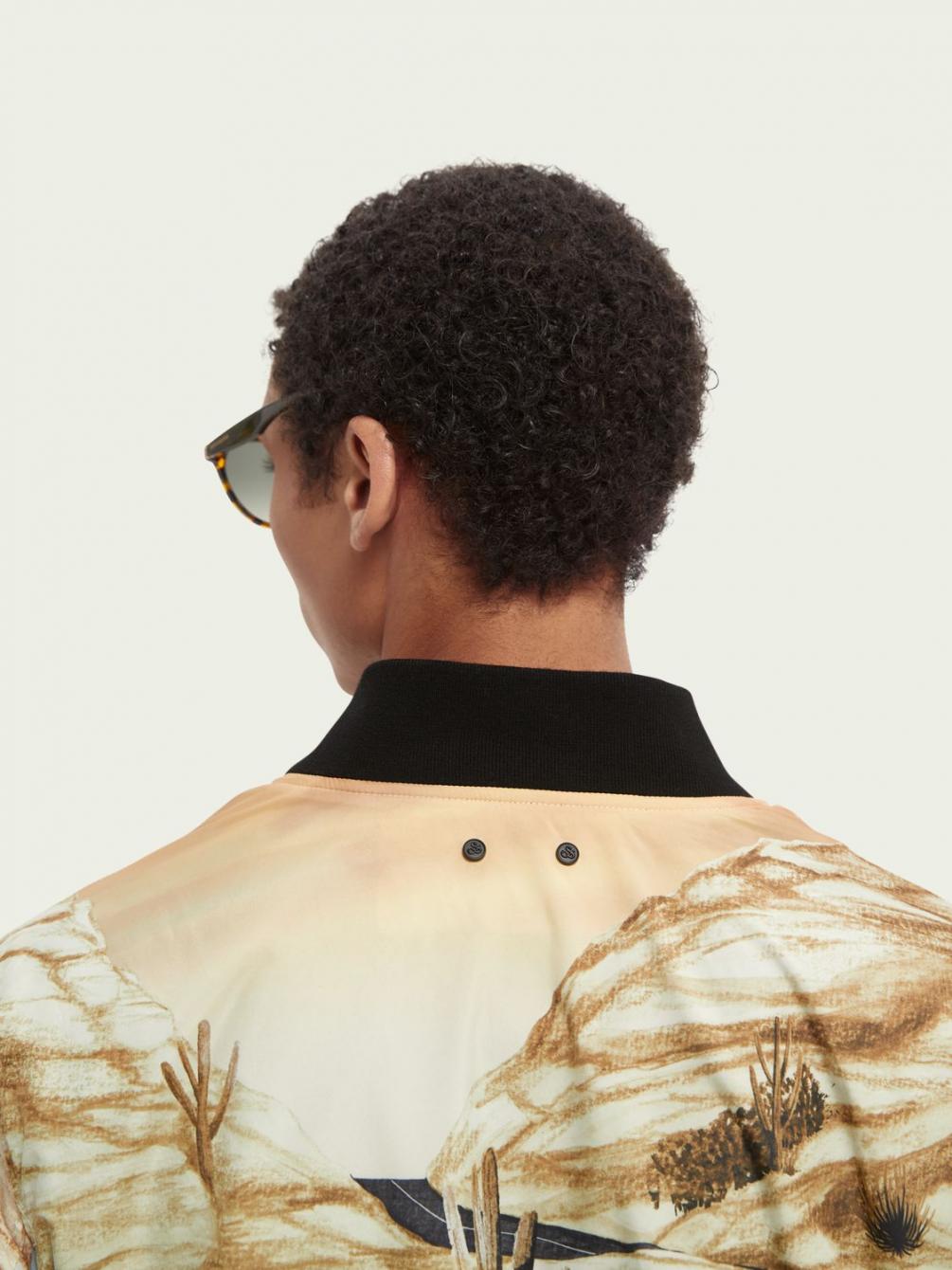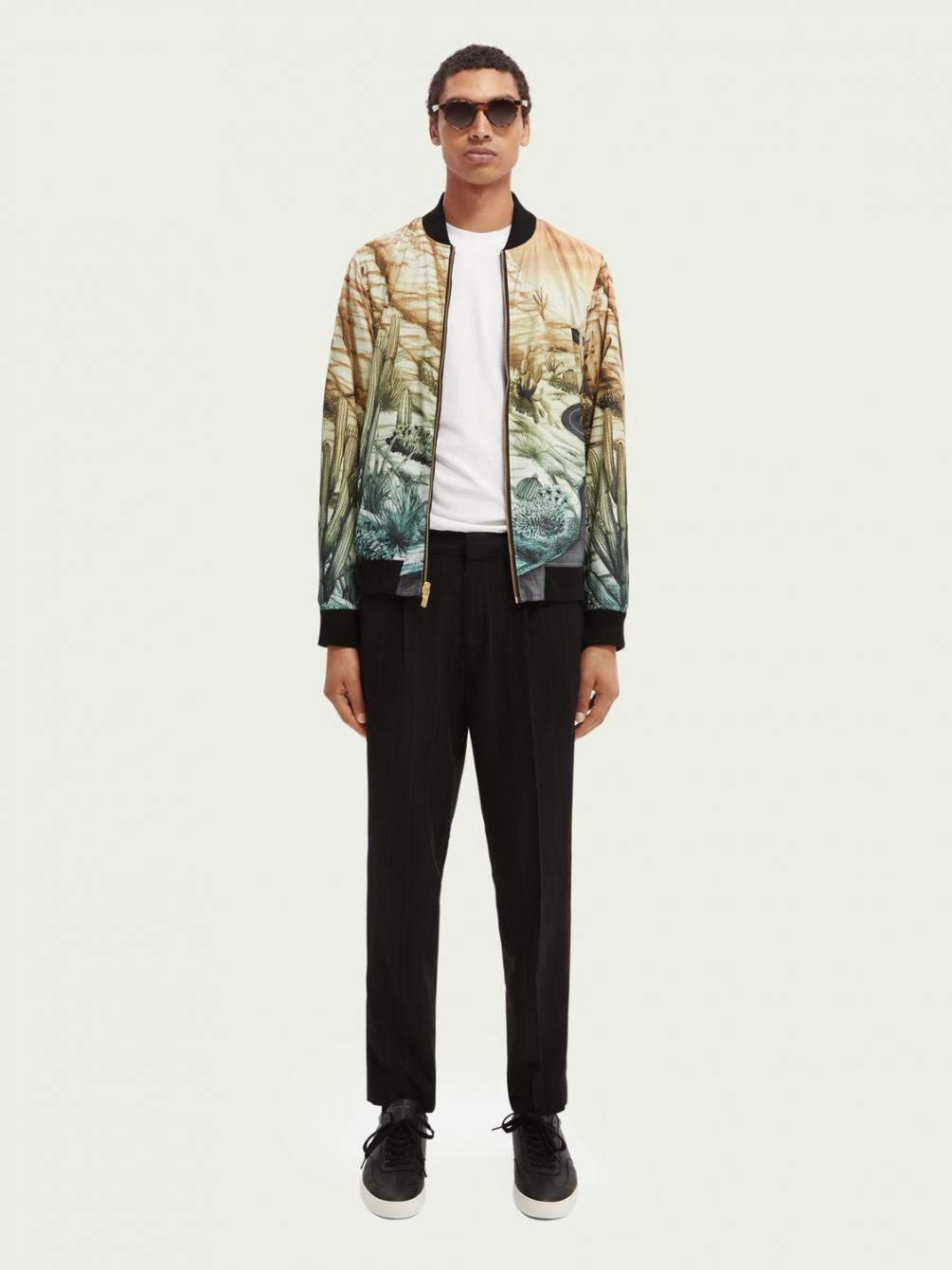 Ons omkeerbare bomberjack biedt het beste van twee werelden. En het maakt niet uit welke kant je kiest: de opvallende prints passen altijd bij de gelegenheid. Het heeft de klassieke kenmerken van een bomberjack: een geribbelde zoom, mouwboorden en kraag – plus een coole, goudkleurige ritssluiting.