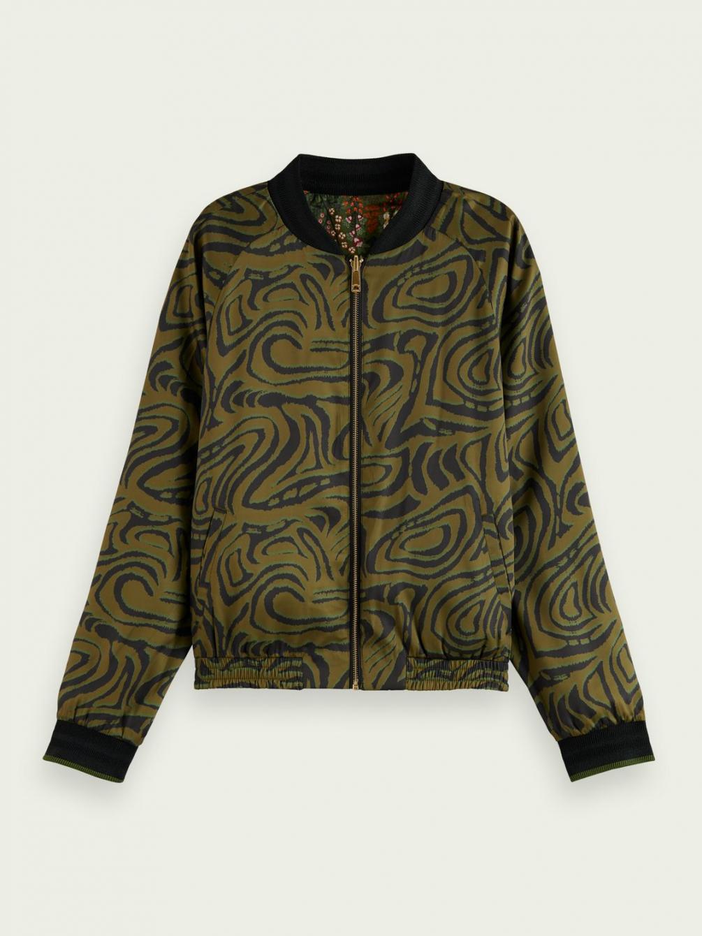 Ons omkeerbare bomberjack biedt het beste van beide werelden. En het maakt niet uit welke kant je kiest: de opvallende prints springen eruit. Ontworpen met de klassieke finishing touches van een bomberjack, zoals een geribbelde zoom, mouwboorden en kraag, en een coole goudkleurige ritssluiting. Dit jack is er helemaal klaar voor.
