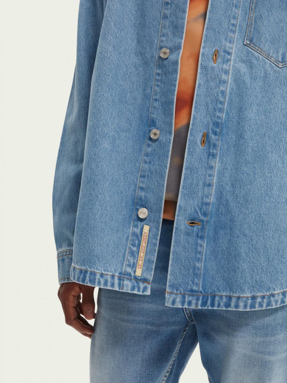 Iedere garderobe moet op zijn minst één denim jack bevatten. Ons unisex denim overshirt is het perfecte tussenjack voor het komende seizoen. Het model zit ruim in de schouders en taille en het is afgewerkt met verfijnde geweven details, zoals de opgestikte borstzak aan de linkerkant. Gemaakt met biologisch katoen: niet genetisch gemodificeerde zaadjes worden gezaaid in grond die vrij is van pesticiden en kunstmest, met minder waterverbruik en geteeld met gebruik van gewasrotatie, wat beter is voor de gezondheid van de bodem.