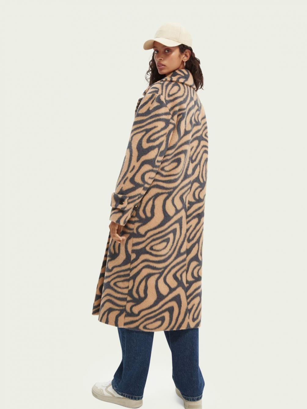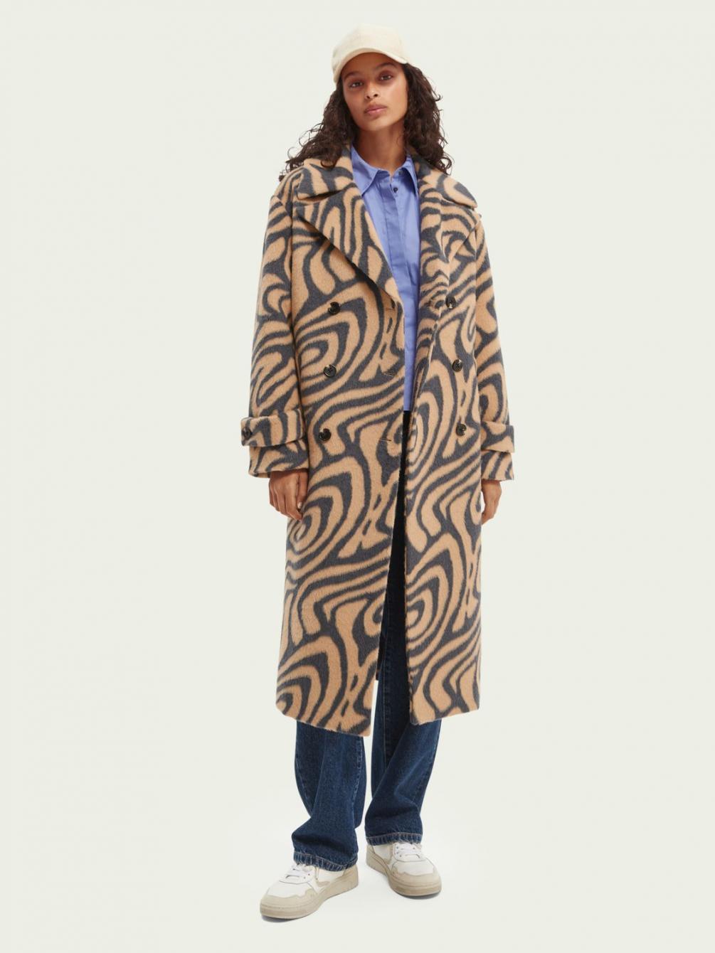 Klaar om een statement te maken? Deze oversized jas doet het wel voor je! De wolmix en grote kraag houden je warm en helpen je de herfst door, in stijl dankzij de vloeiende vormen van de print.