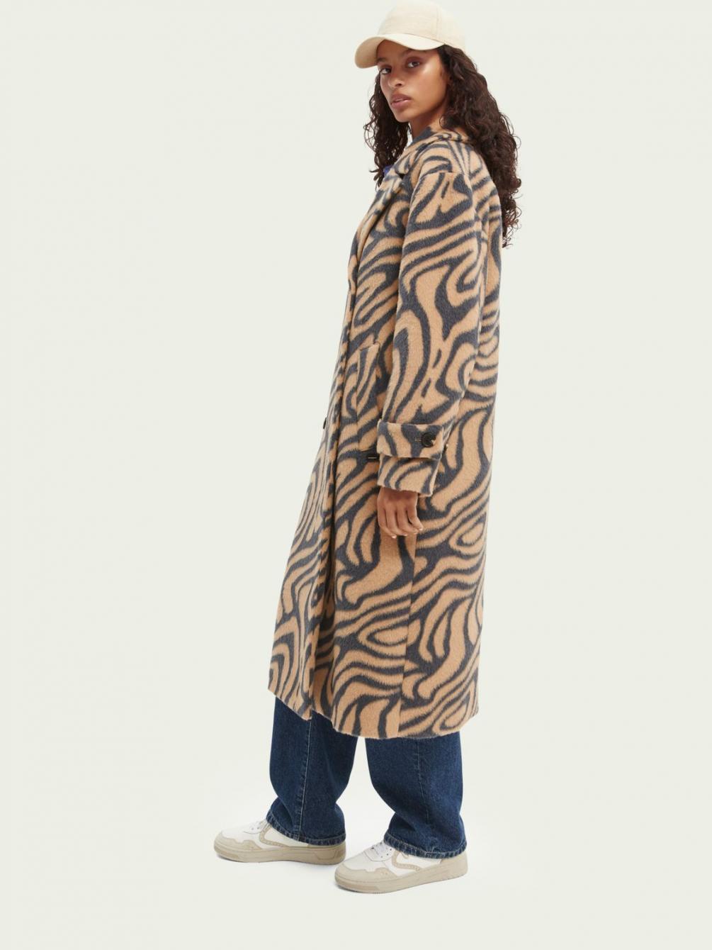 Klaar om een statement te maken? Deze oversized jas doet het wel voor je! De wolmix en grote kraag houden je warm en helpen je de herfst door, in stijl dankzij de vloeiende vormen van de print….