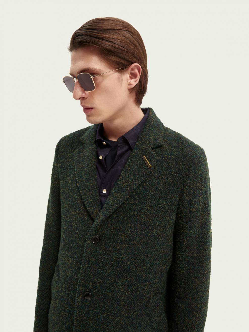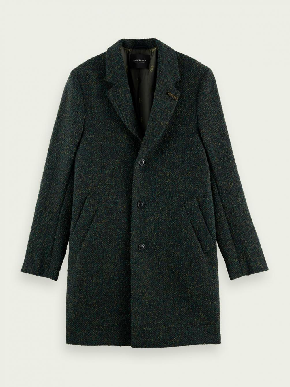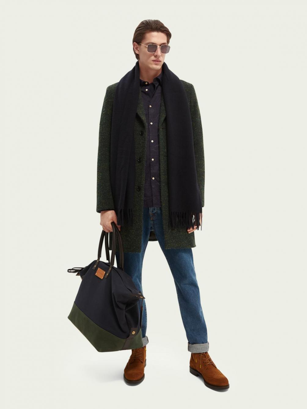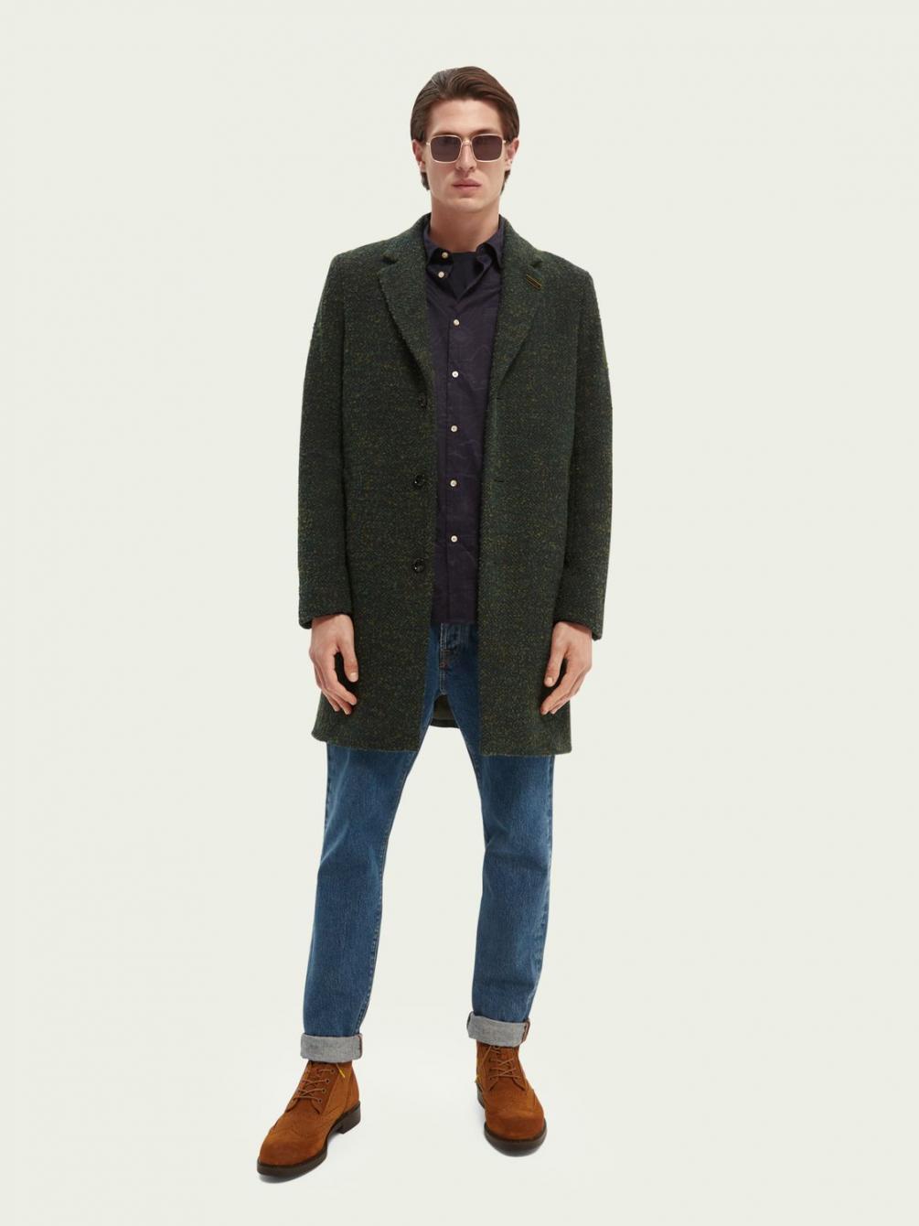 Met een klassieke overjas zit je altijd goed. Deze versie van een zware wolmix speelt helemaal op zeker met schuine zakken en een traditionele look.