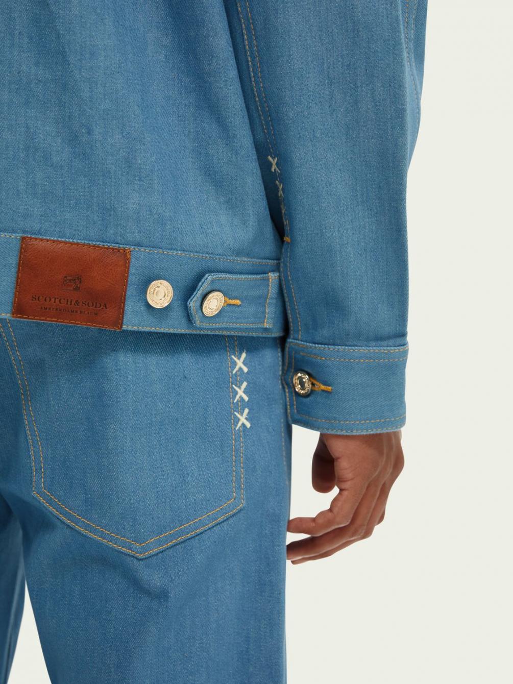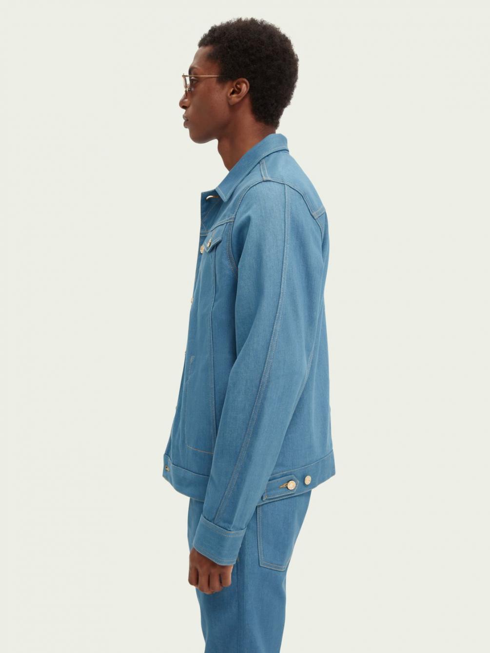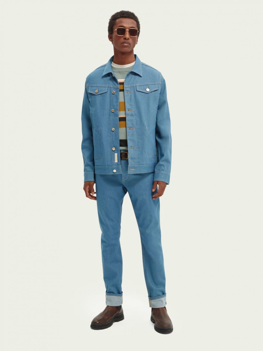 Dit AMS Blauw truckerjack is gemaakt van een katoenmix, maar het is de kleur die er echt uitspringt. Zo af en toe mag het best een beetje knallen en daarom hebben we klassiek indigo verruild voor een verrassende helderblauwe tint die perfect contrasteert met de traditionele details, zoals de naden over de borst en twee borstzakken. Draag er een wit T-shirt bij voor een James Dean look.