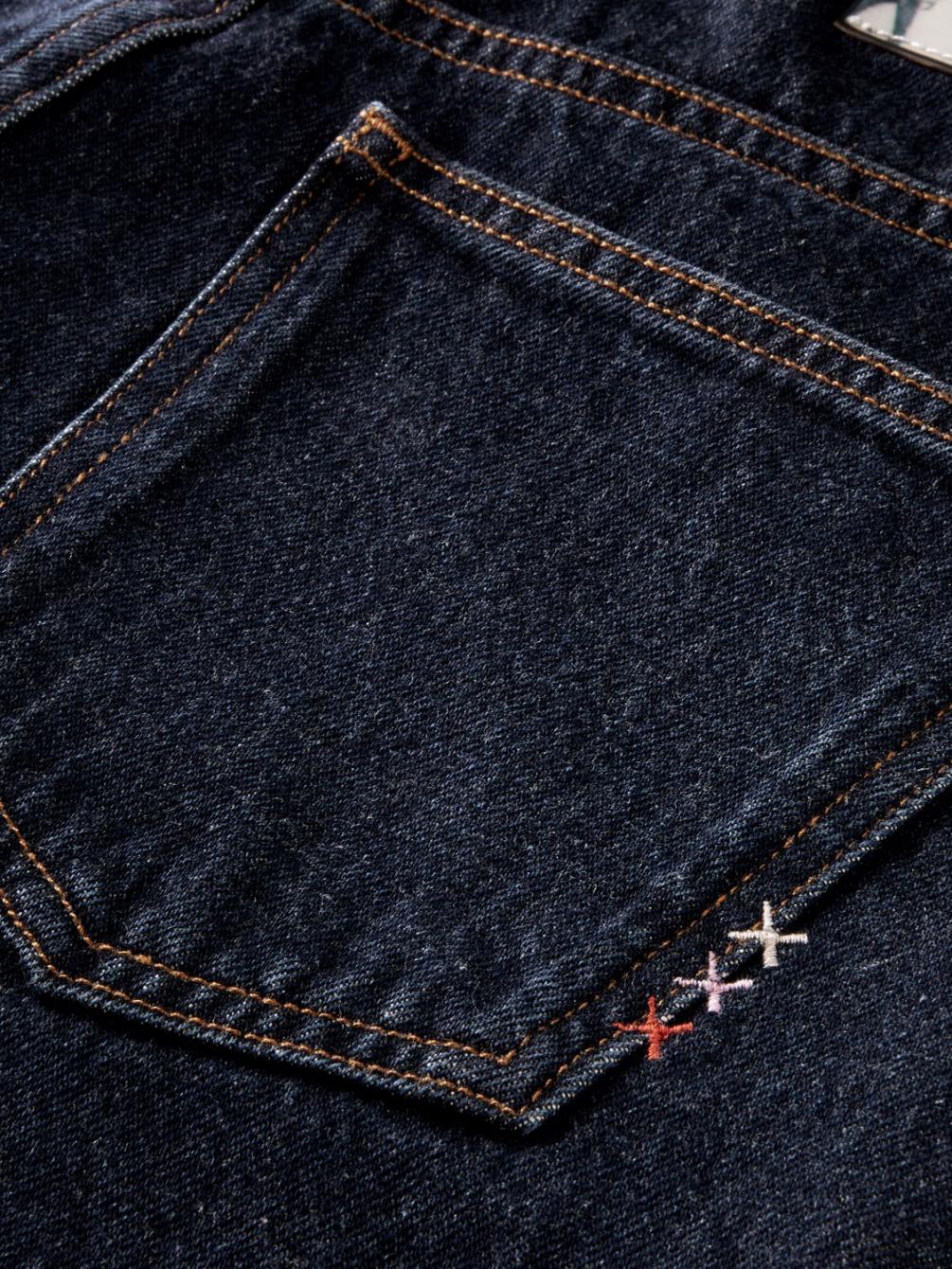 Rock-‘n-roll is terug: laat je meevoeren op deze nieuwe golf. Voor dit seizoen hebben we onze high-rise jeans ontworpen met wijde pijpen van non-stretch denim in een prachtige ecru-tint. Afgewerkt met borduursel op de achterzak en speciaal ontworpen decoraties. Deze jeans is alles wat je nodig hebt om er geweldig uit te zien terwijl je danst. Of gewoon stilstaat. Maak de look af met matching truckerjack. Gemaakt met biologisch katoen: niet genetisch gemodificeerde zaadjes worden gezaaid in grond die vrij is van pesticiden en kunstmest, met minder waterverbruik en geteeld met gebruik van gewasrotatie, wat beter is voor de gezondheid van de bodem.