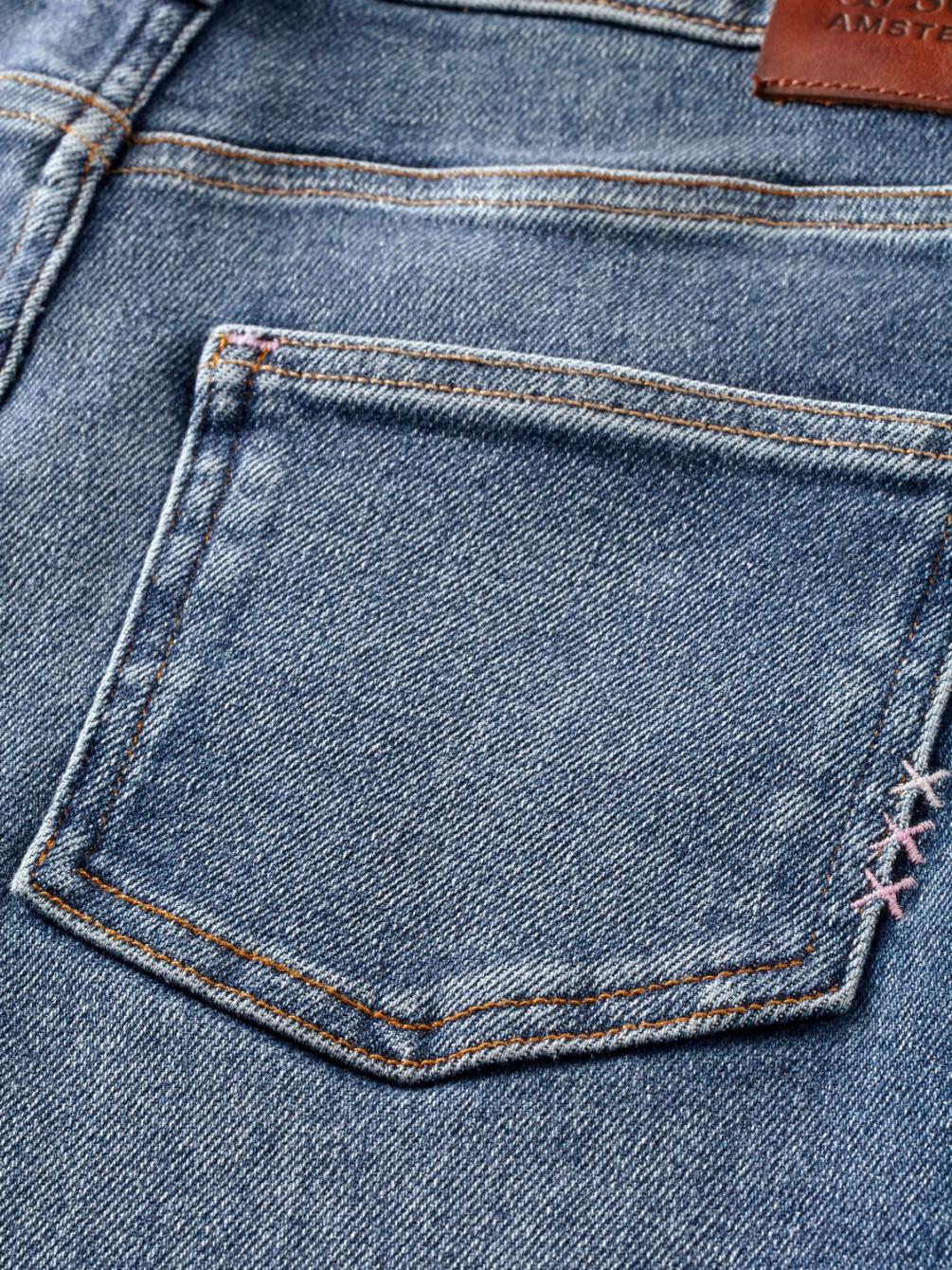 Haut, onze signature high-rise jeans voor dames, is en blijft een favoriet. We hebben de look een boost gegeven met realistische slijtage-effecten en een iets zwaardere en gestructureerde super stretch basis. Gedeeltelijk gemaakt met biologisch katoen (61%): niet genetisch gemodificeerde zaadjes worden gezaaid in grond die vrij is van pesticiden en kunstmest, met minder waterverbruik en geteeld met gebruik van gewasrotatie, wat beter is voor de gezondheid van de bodem. Dit is een mix, de precieze samenstelling van het materiaal staat vermeld op het label en in de highlights.