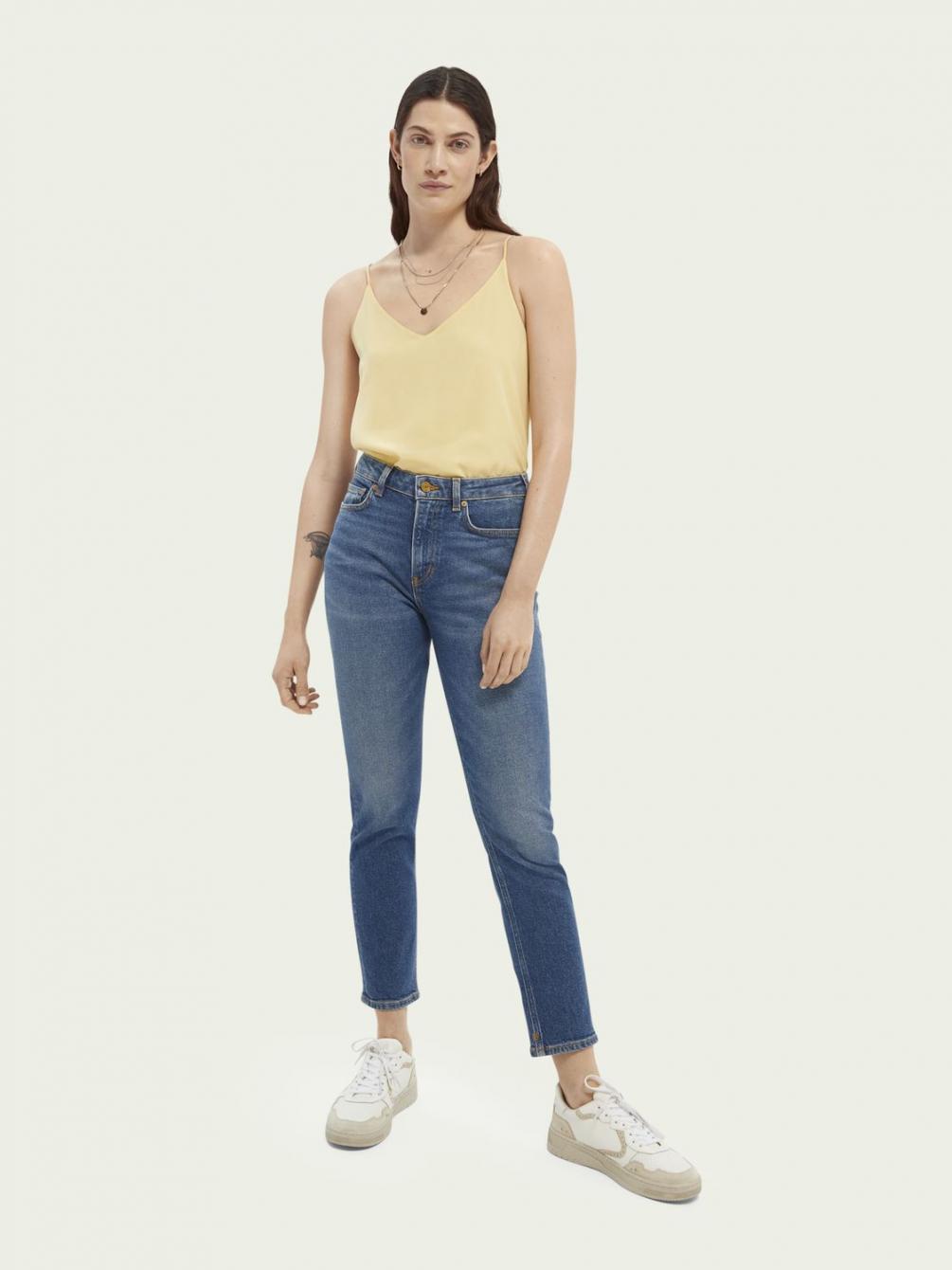 High Five is onze high-rise, slim fit denimstijl voor iedere gelegenheid. De katoenmix bevat comfort stretch waar je de hele dag door van zult genieten en is gewassen tot een coole middenblauwe tint voor een vintage uitstraling. Het enkellange model is modern en retro tegelijk.