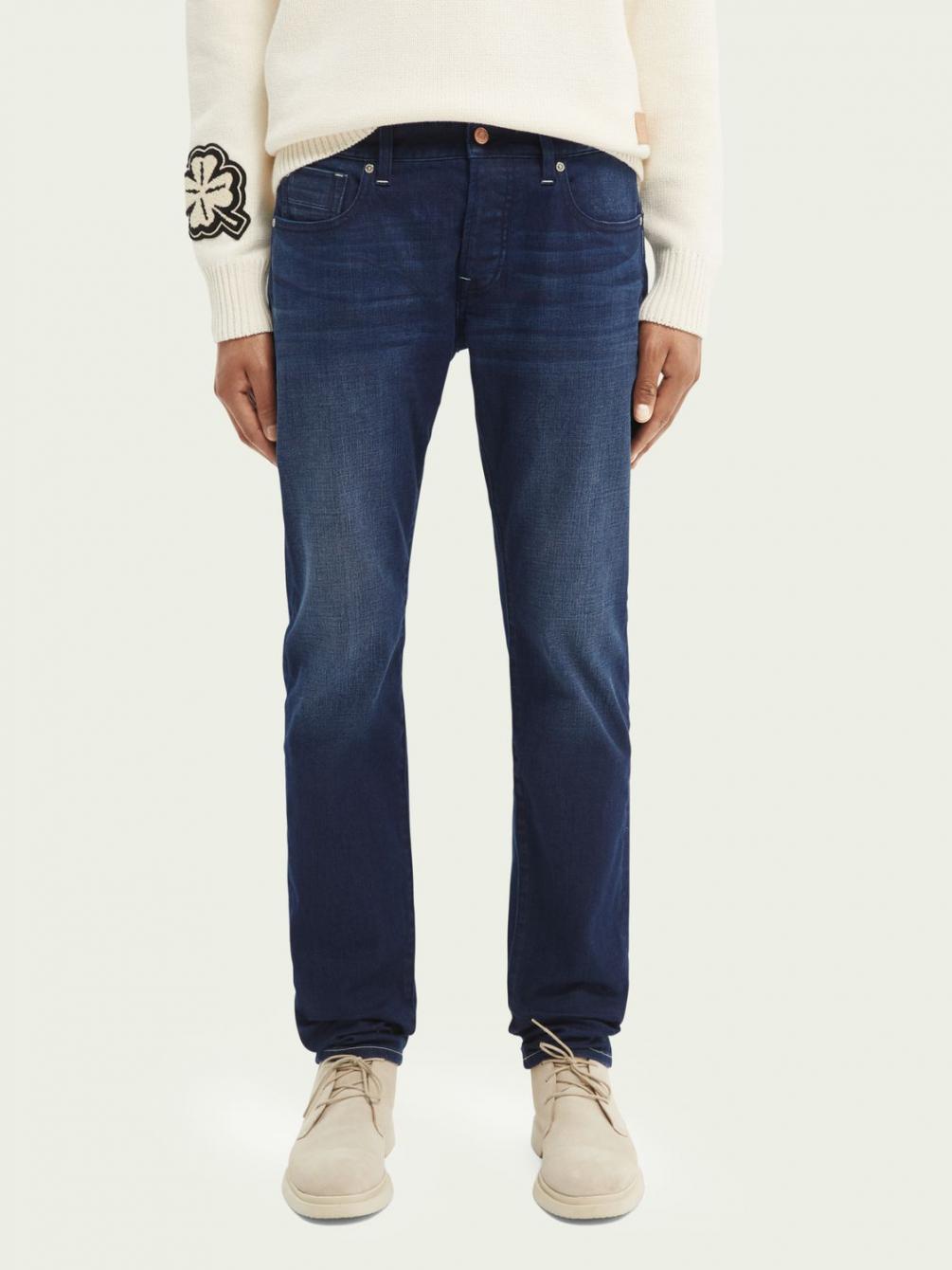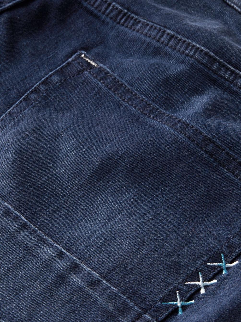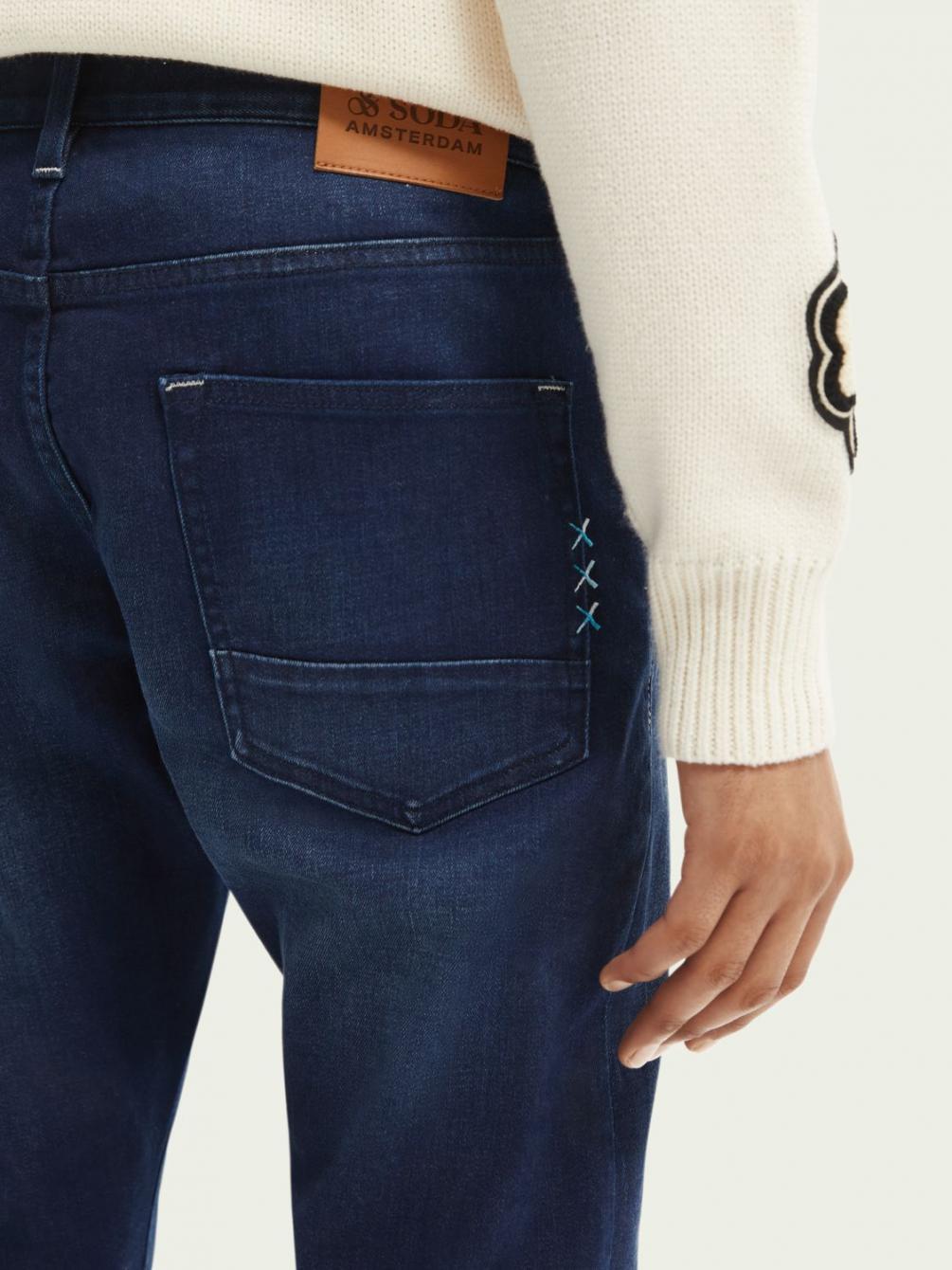 Deze regular slim-fit jeans met een klassieke, blauwachtige tint is flexibel en tegelijkertijd lichtgewicht. We hebben de diepblauwe tint hier en daar wat afgeborsteld zodat deze jeans niet te sterk contrasteert met de rest van je outfit.