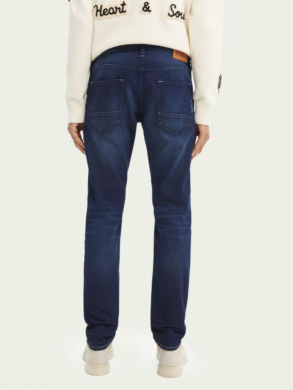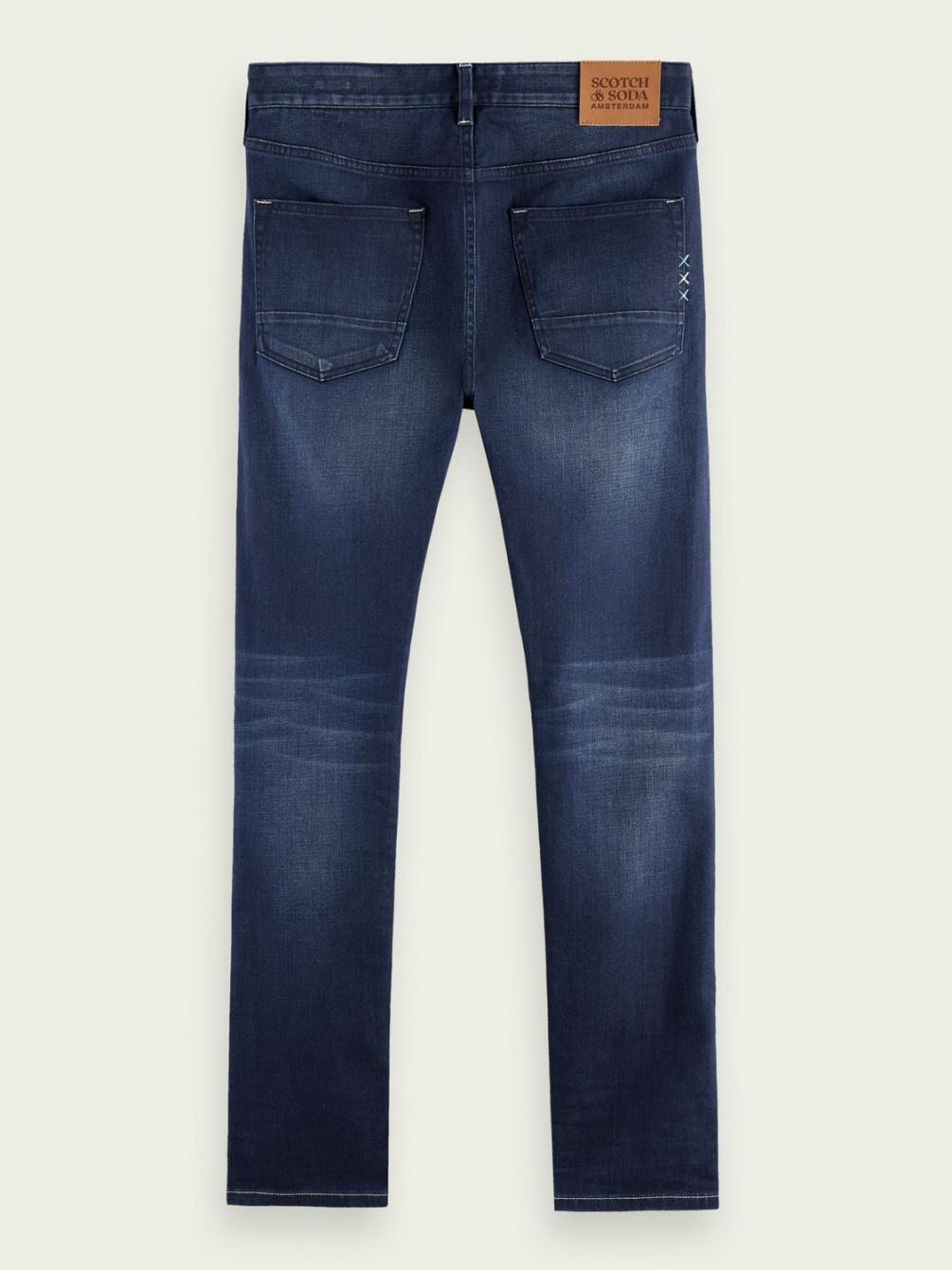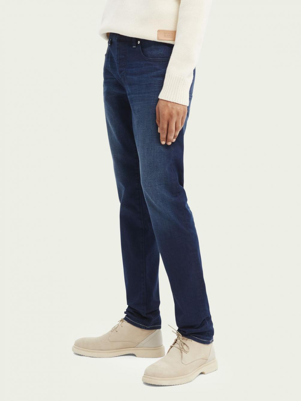 Deze regular slim-fit jeans met een klassieke, blauwachtige tint is flexibel en tegelijkertijd lichtgewicht. We hebben de diepblauwe tint hier en daar wat afgeborsteld zodat deze jeans niet te sterk contrasteert met de rest van je outfit.