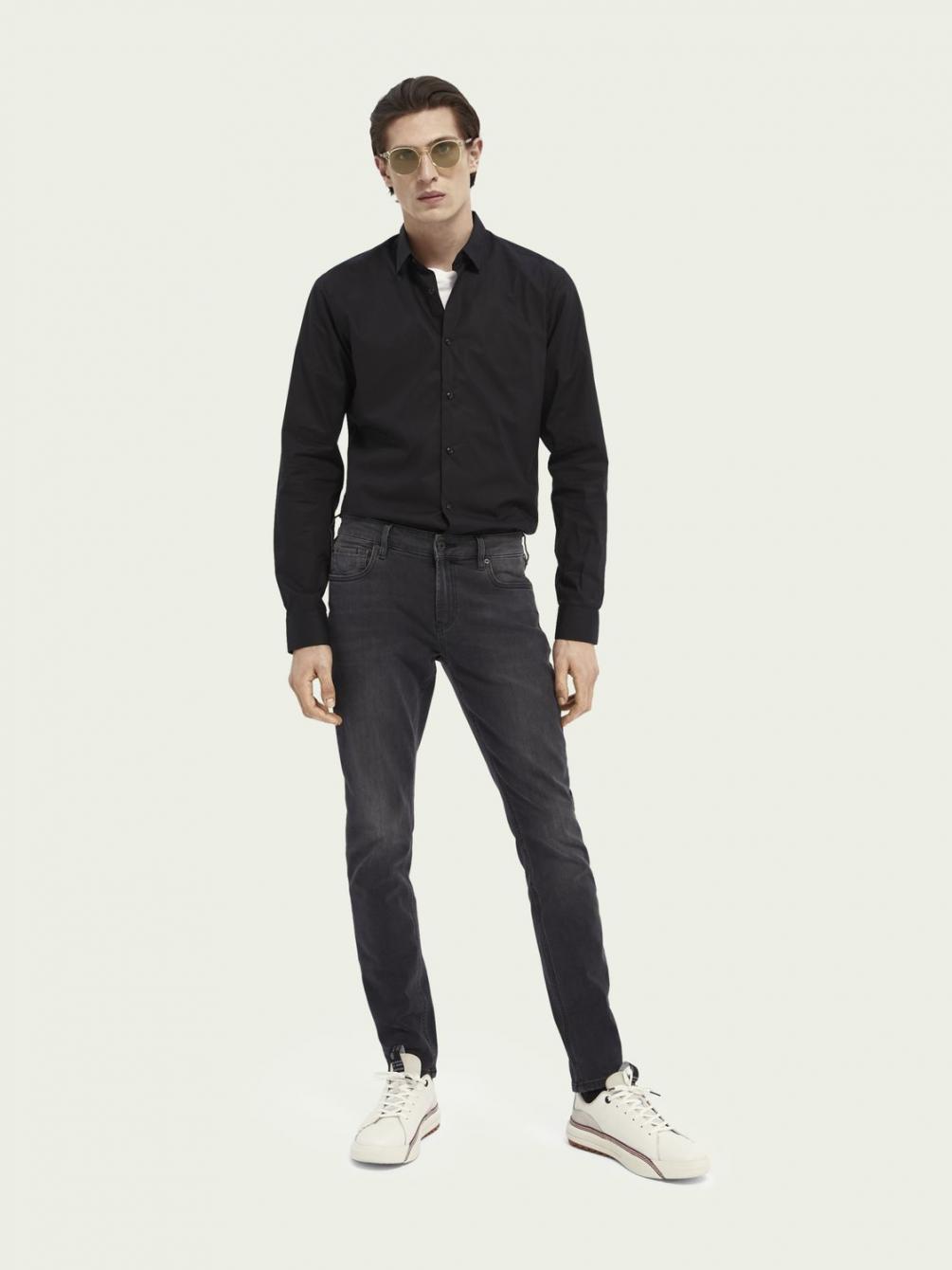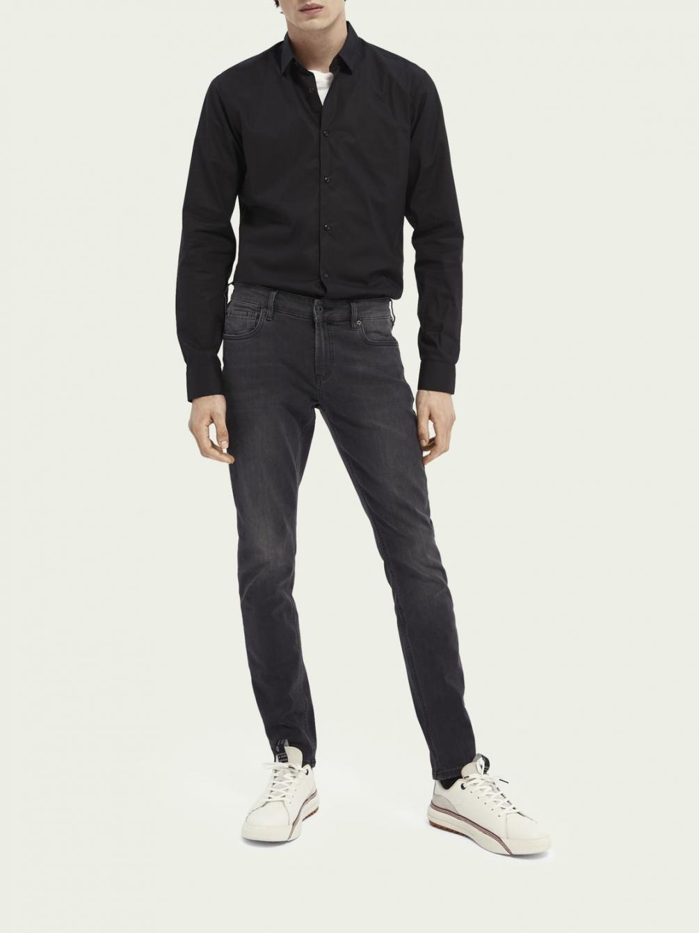 De Skim is onze skinny-fit jeans. Deze zwarte jeans van stretch denim heeft gewassen effecten voor een ingedragen look….