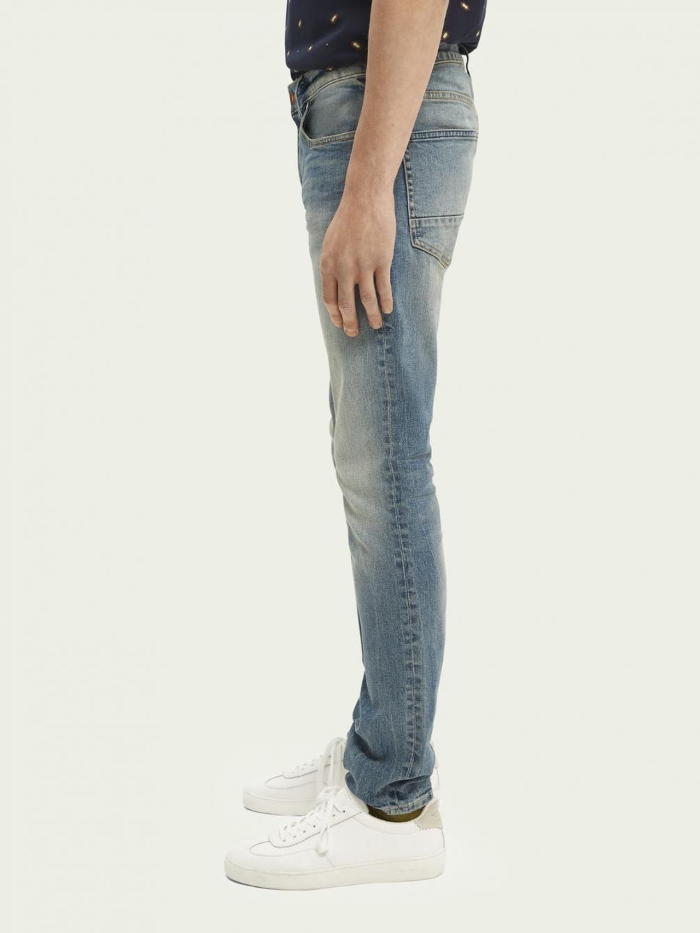 De Skim is onze meest skinny fit. Deze jeans zit strak van bovenbeen tot enkel, maar blijft toch de hele dag comfortabel dankzij stretch. De frisse blauwtint en subtiele gewassen effecten geven deze jeans zijn moeiteloze look.