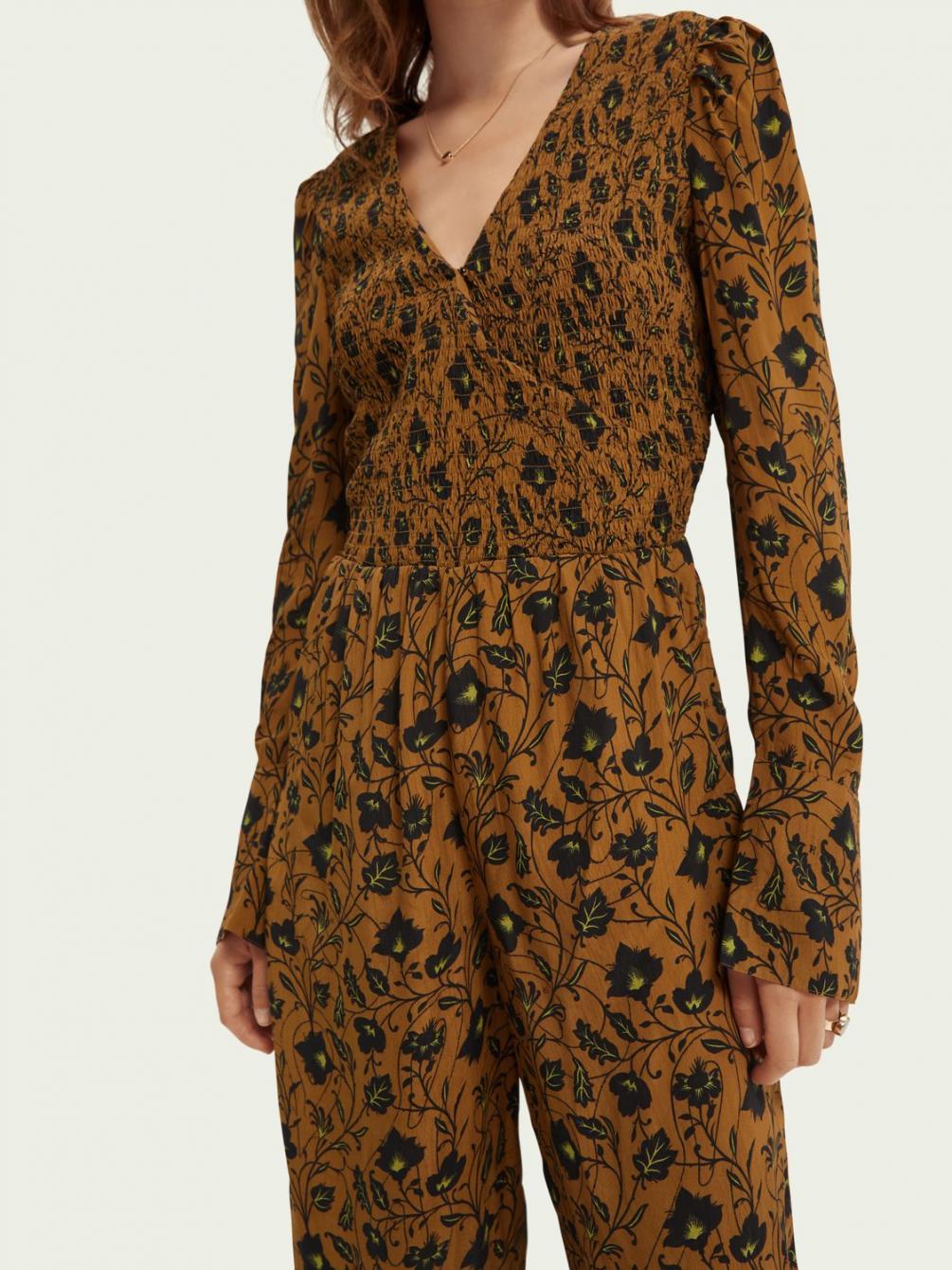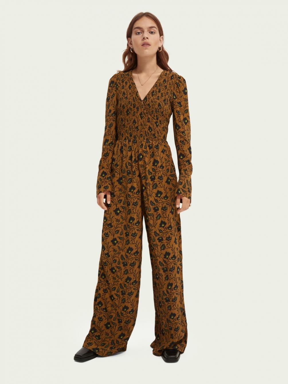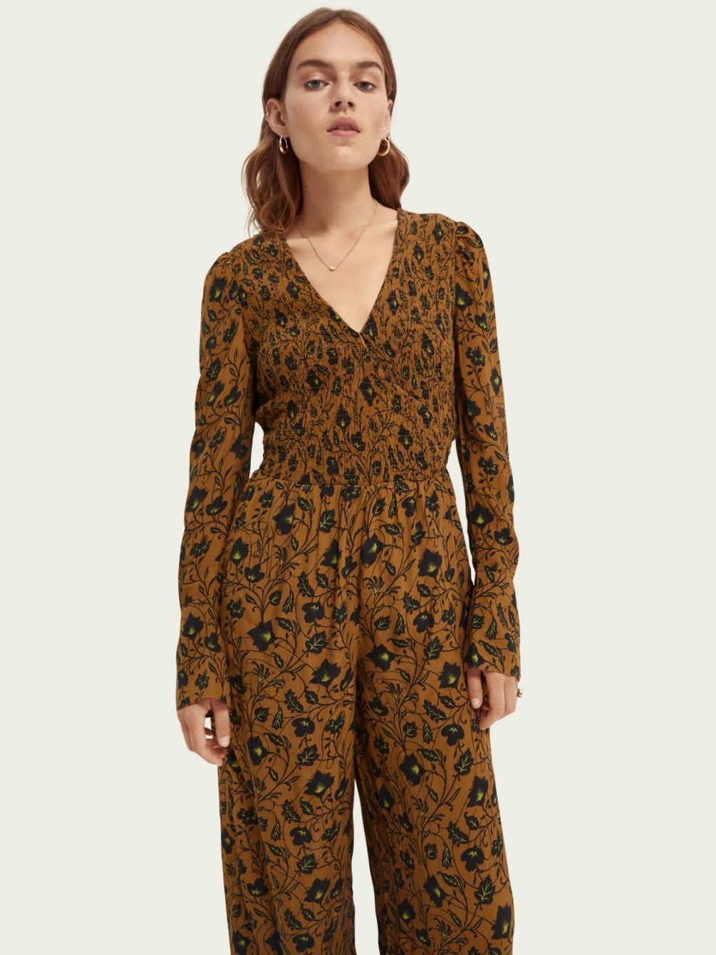 Gesmokte details én een mooie print, deze jumpsuit heeft het allemaal. Plus een extra vleugje drama dankzij de wijde pijpen en V-hals. Draag er een paar leuke laarzen onder voor een coole look.