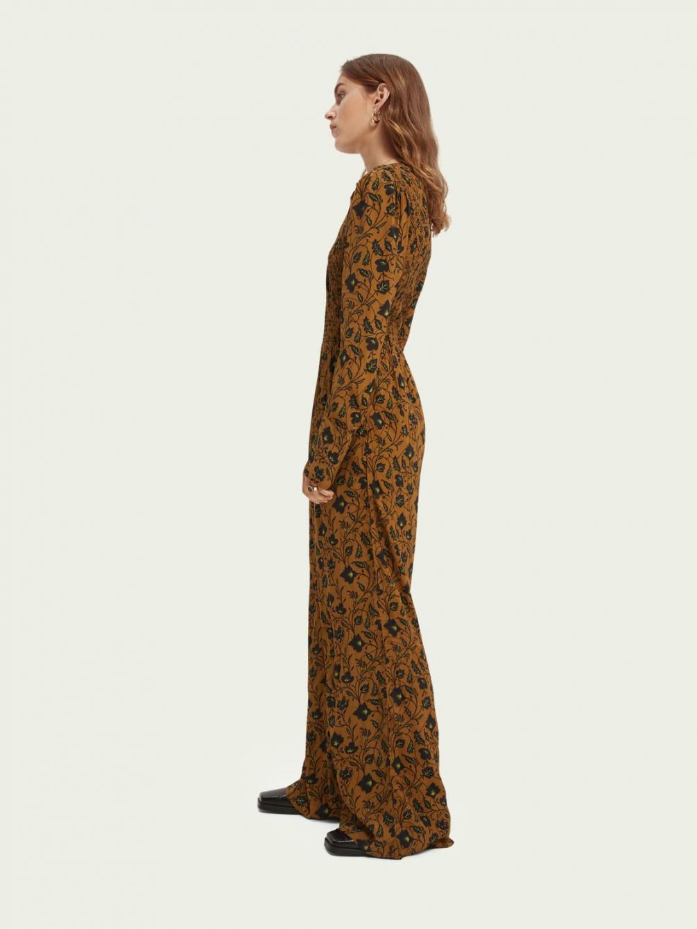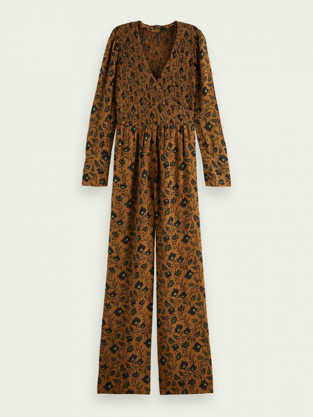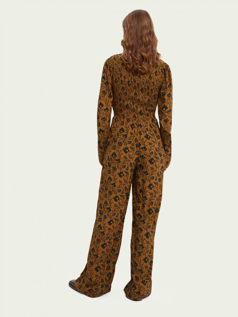 Gesmokte details én een mooie print, deze jumpsuit heeft het allemaal. Plus een extra vleugje drama dankzij de wijde pijpen en V-hals. Draag er een paar leuke laarzen onder voor een coole look.