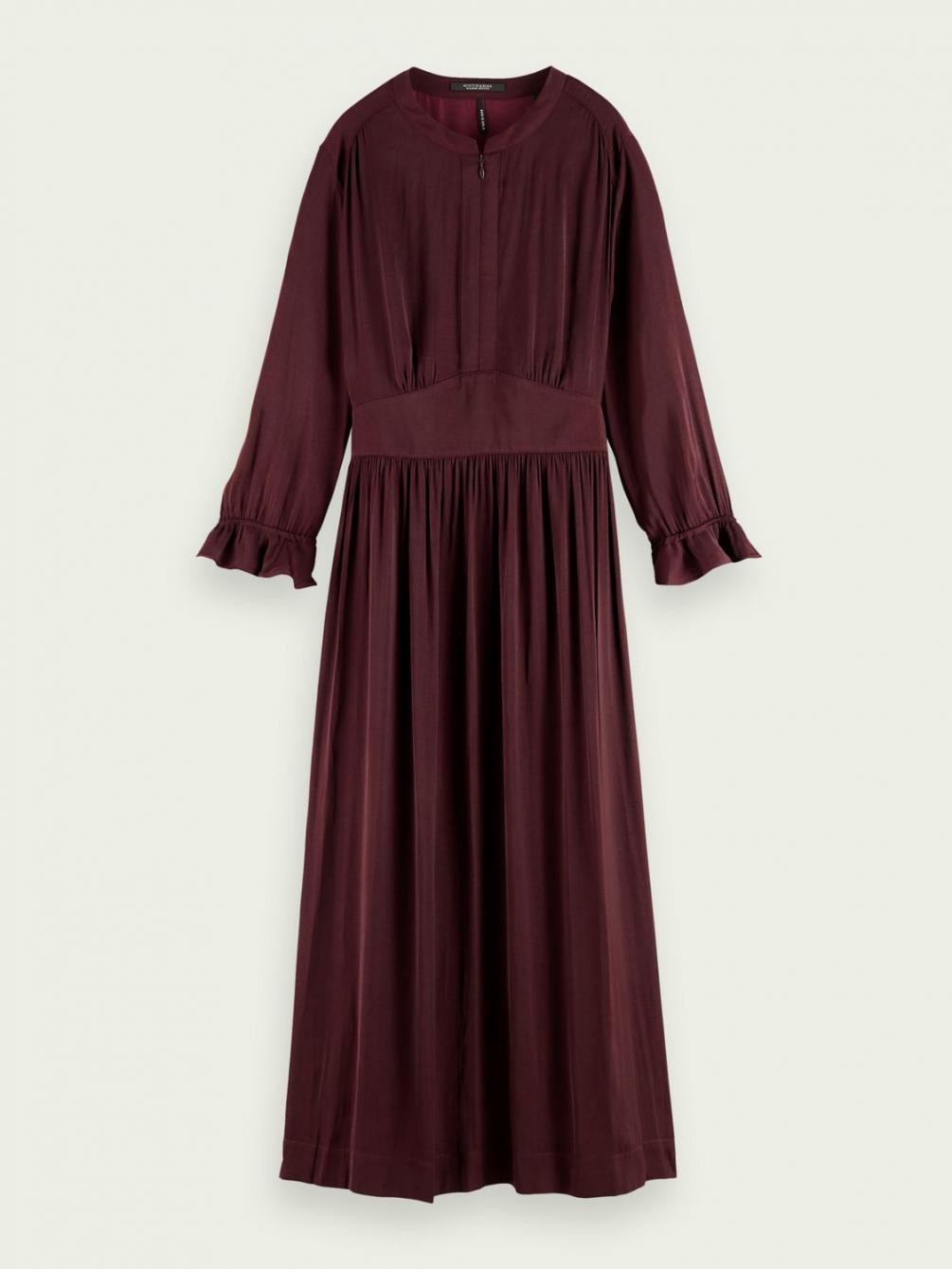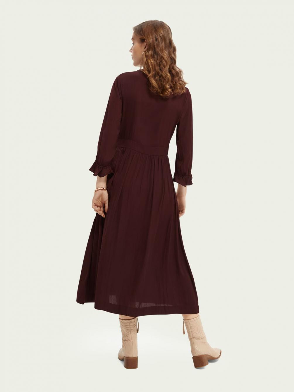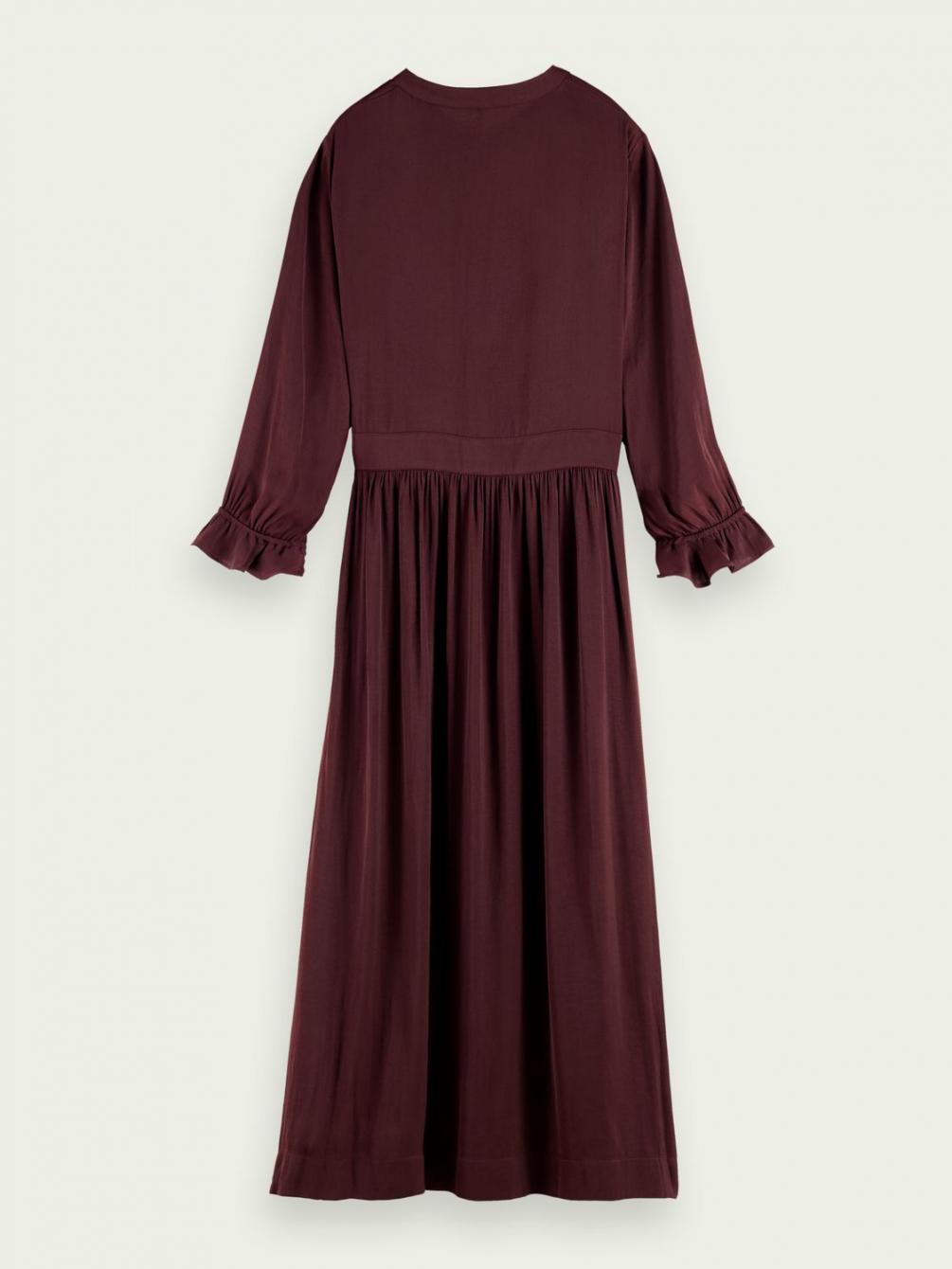Deze midi-jurk zit boordevol beeldige details, zoals de V-hals met knoopsluiting, zodat je zelf kunt bepalen hoe diep je de hals wilt dragen. De ballonmouwen met ruches aan de manchetten geven deze look nog een extra boost. Deze jurk is getailleerd voor een vrouwelijke look.