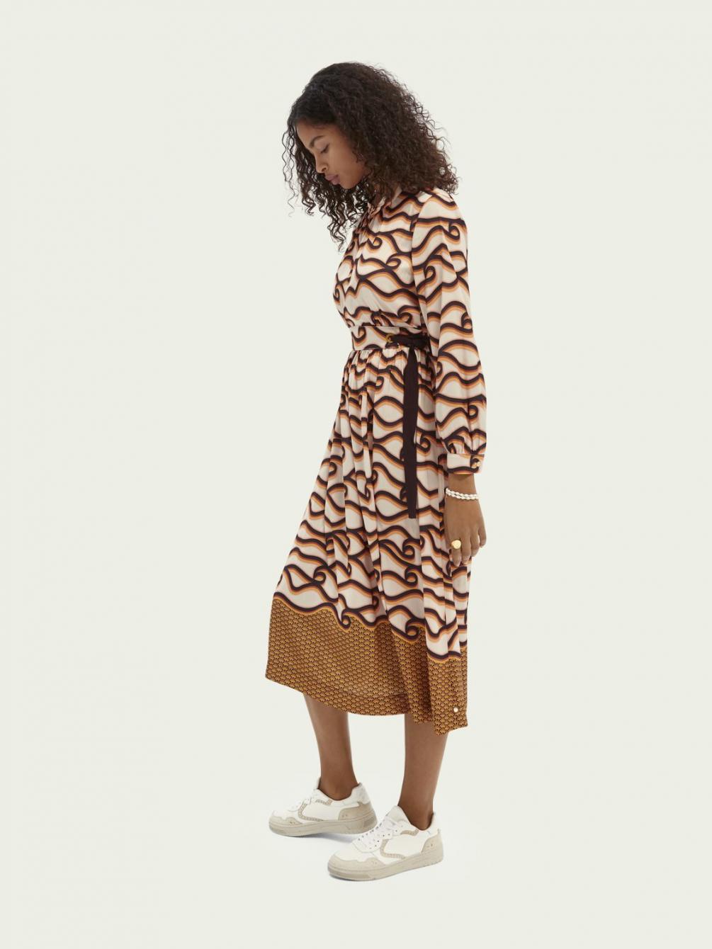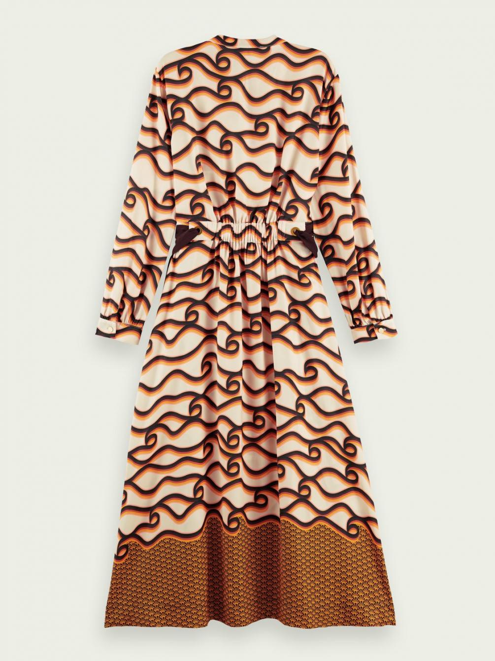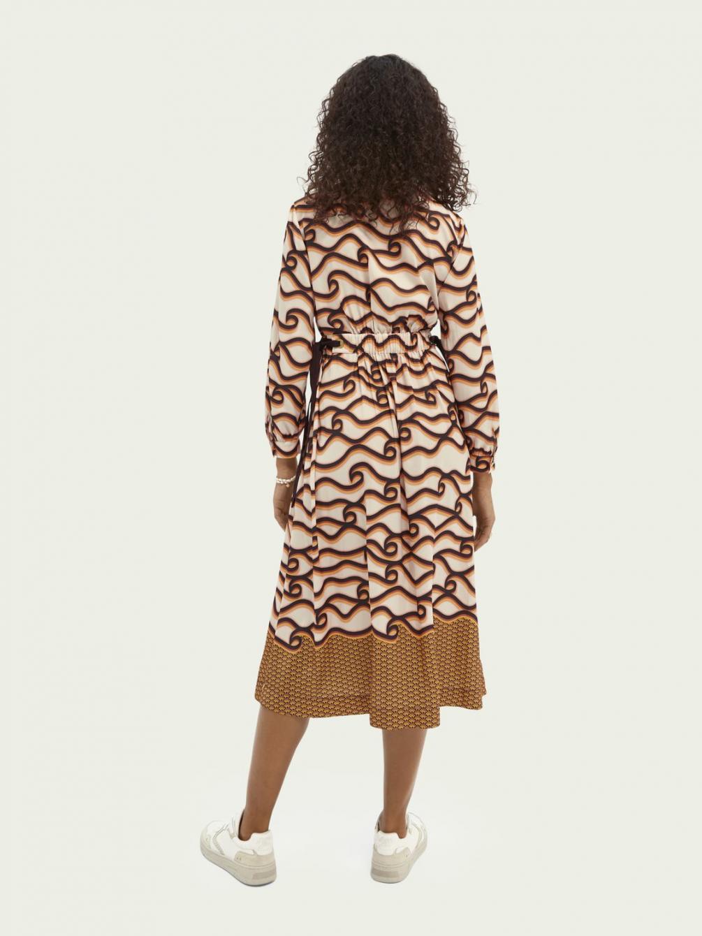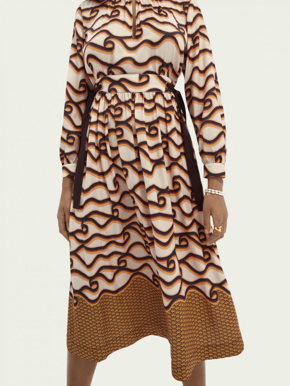 Deze midi-jurk zit boordevol beeldige details die dit item een onderscheidende look geven, zoals het knoopje aan de bovenkant van de V-hals. De volumineuze mouwen en de prachtige print maken het nog specialer. Je kunt de vrouwelijke vormen accentueren door de bandjes aan beide zijkanten van de jurk te strikken.