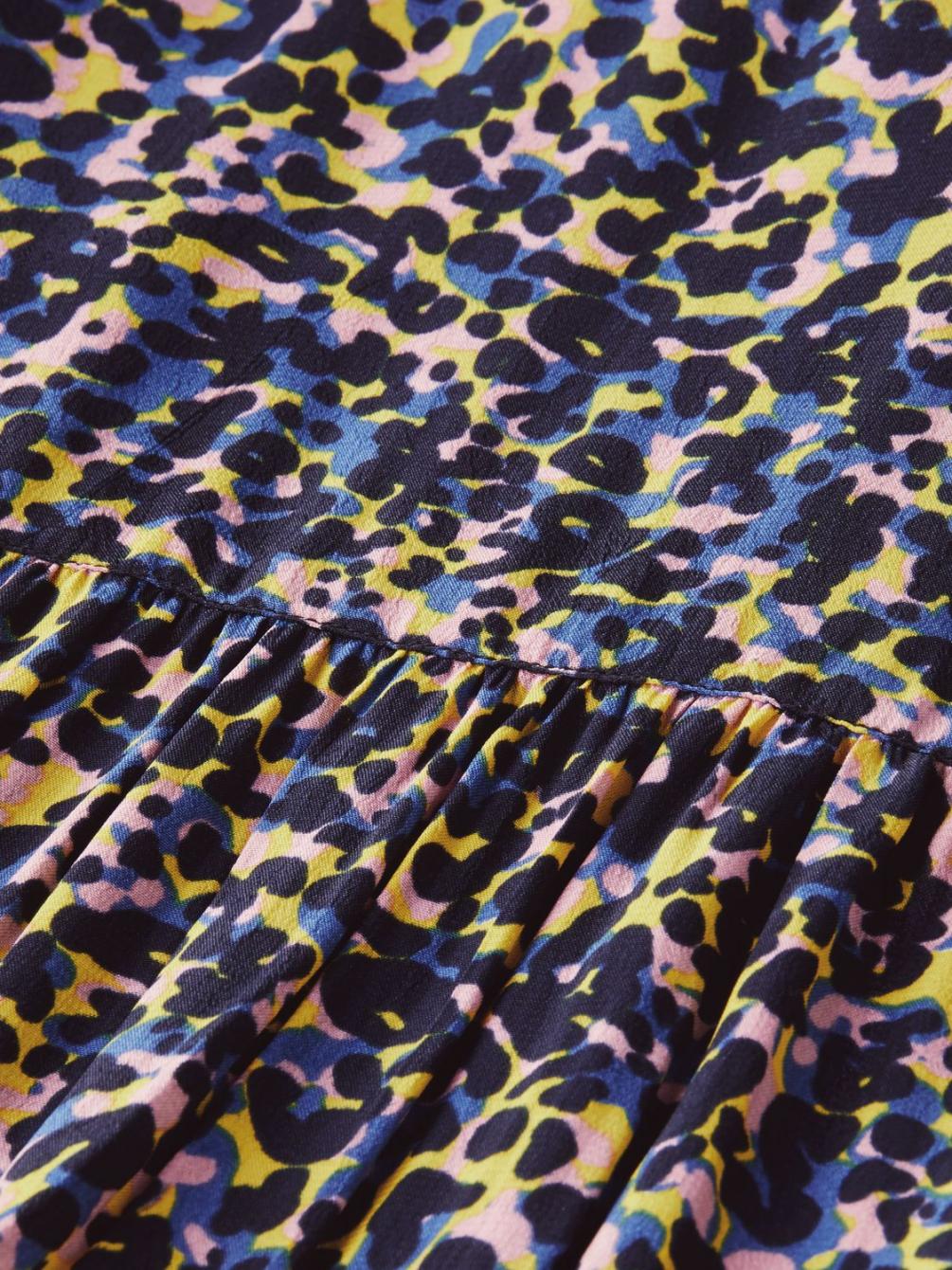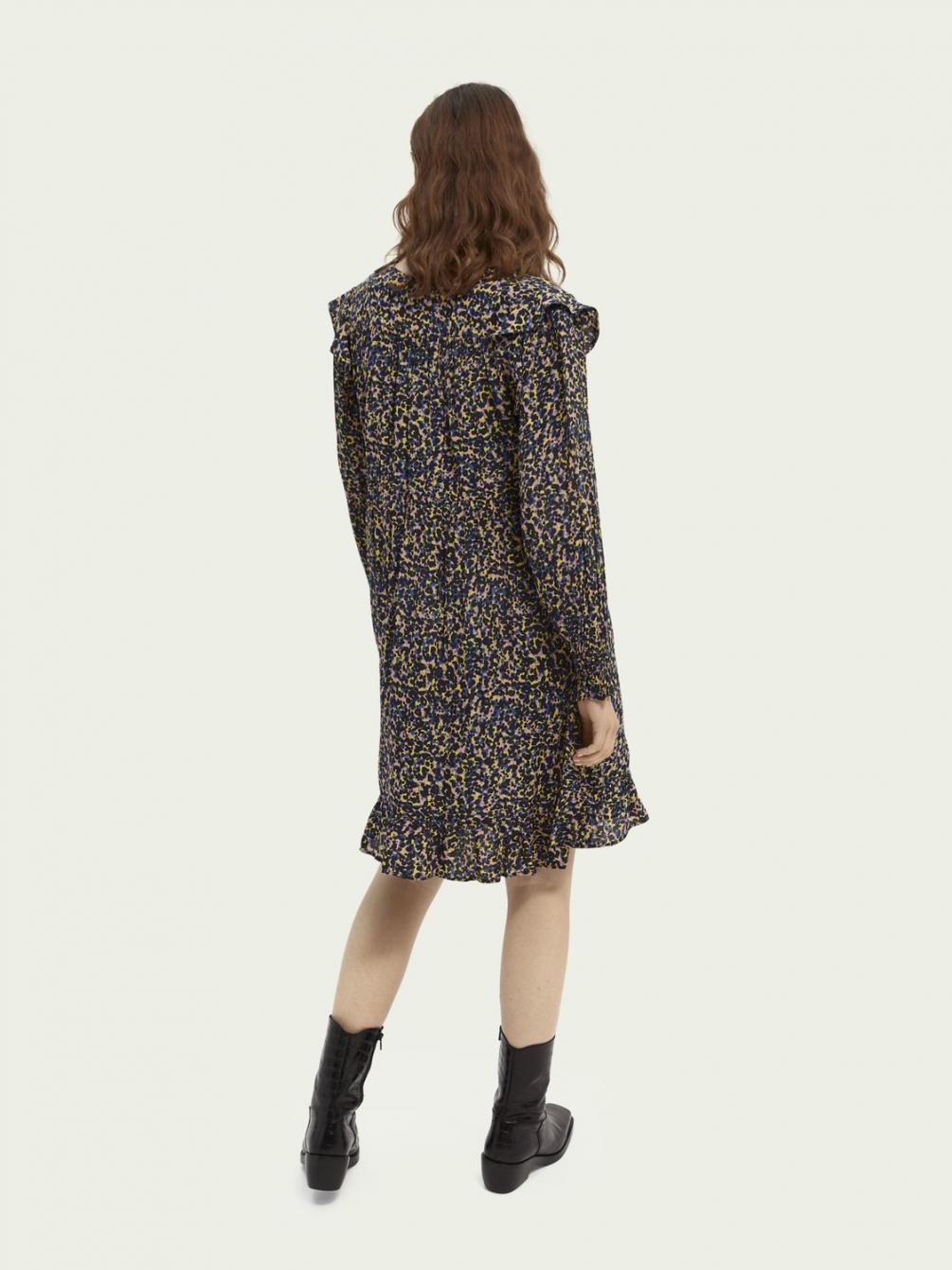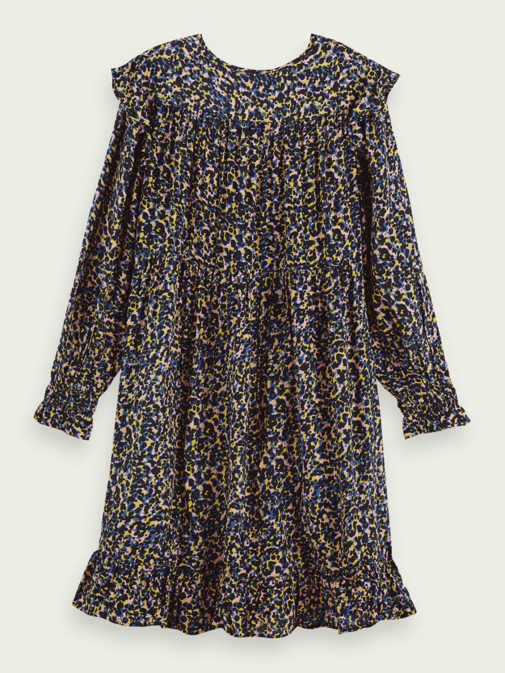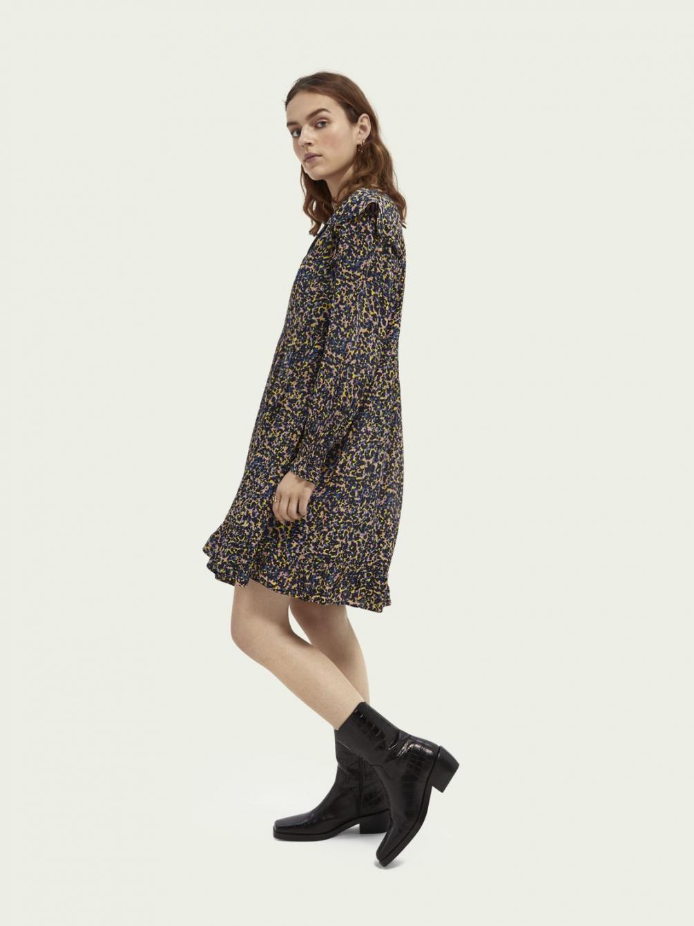 Mix een vrolijke print met ruches en je hebt onze nieuwste jurk. Het A-lijn-model is afgewerkt met opvallende ruches aan de schouders en subtiele ruches aan de zoom. Het knoopje aan de hals is de finishing touch; zo kun je zelf bepalen hoe diep je de hals wilt dragen. Met een paar stevige laarzen eronder heb je toch nog een festivalgevoel.