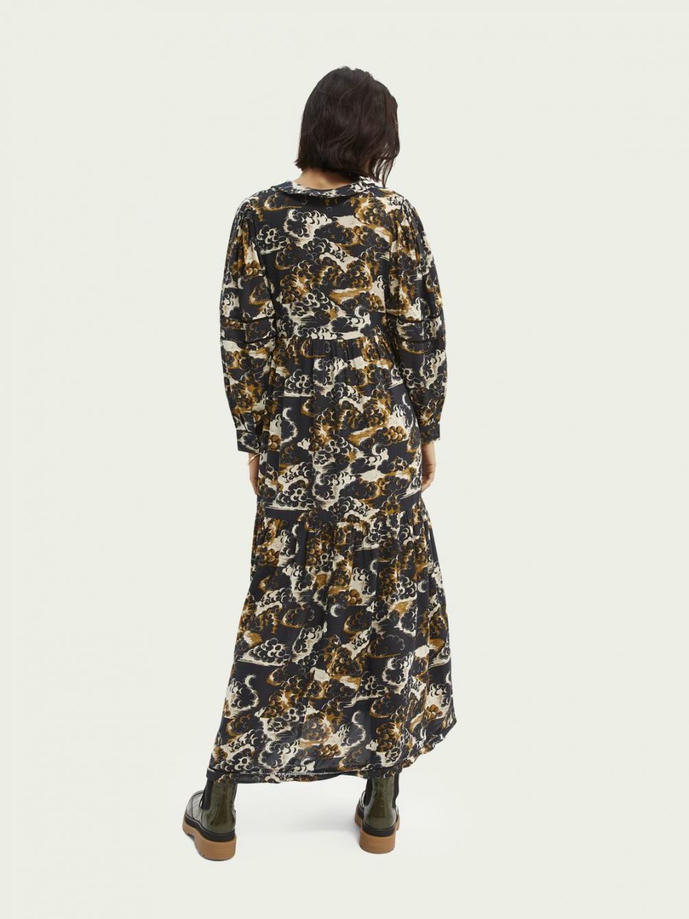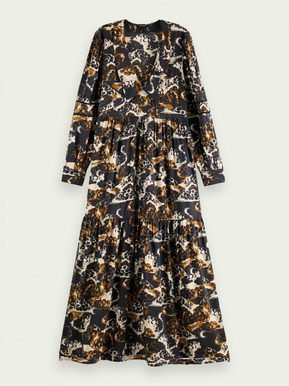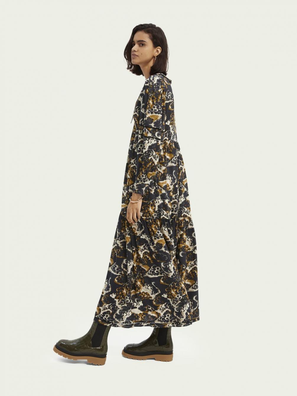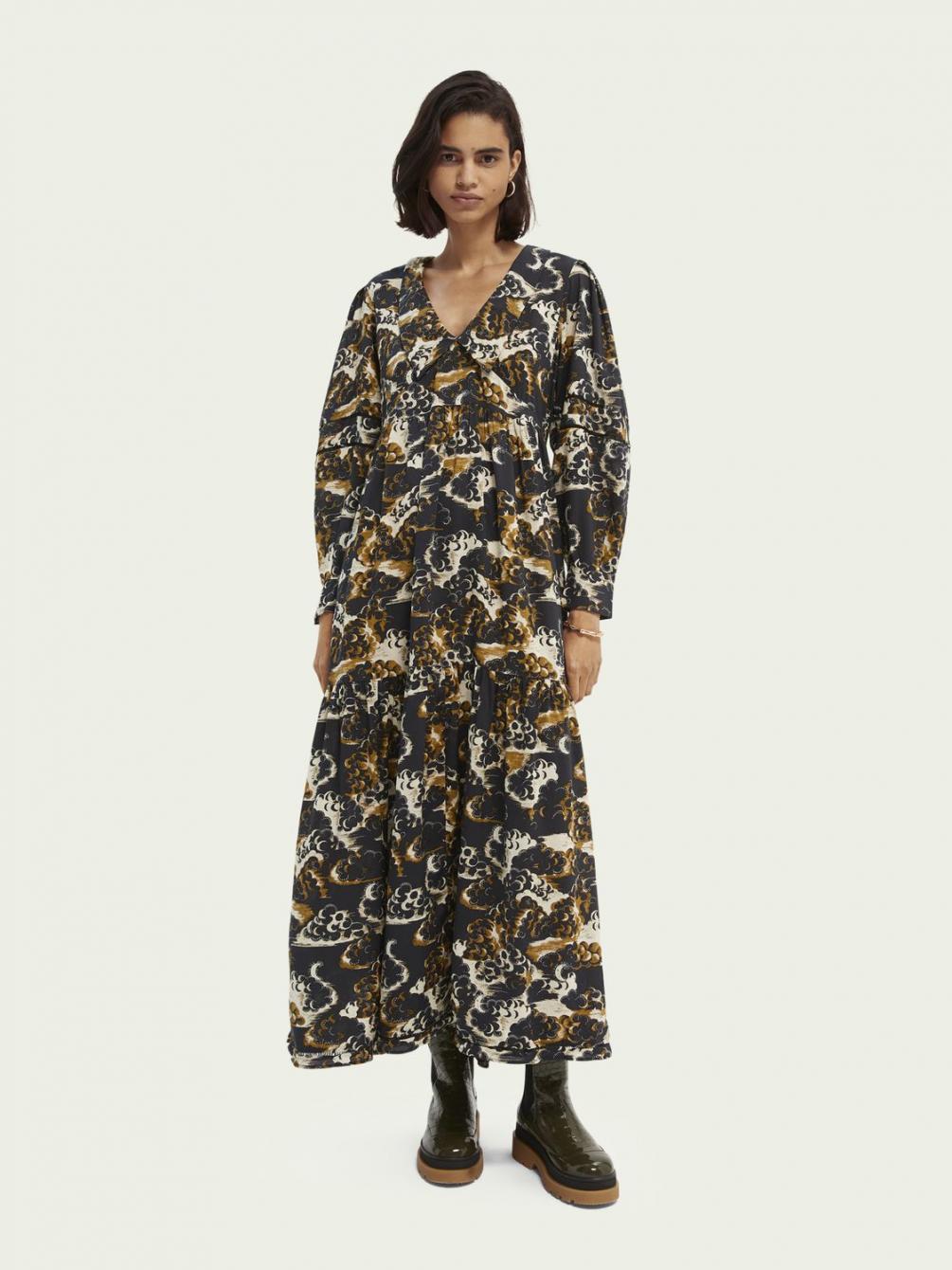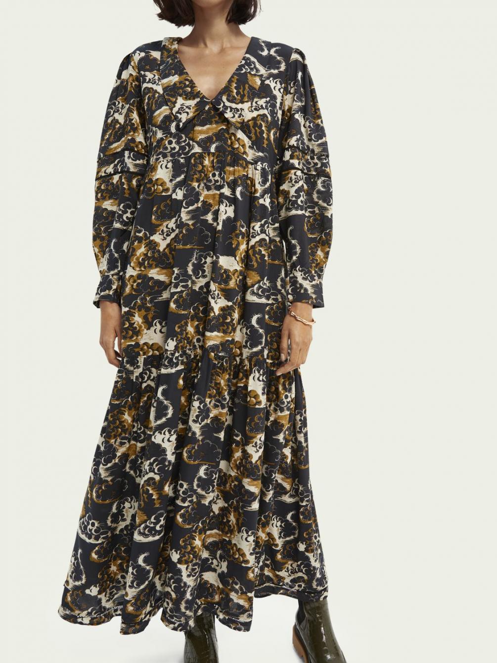 Dit is de dramaqueen onder de jurken, ontworpen met een abstracte print en maxi-fit. Draag er cowboylaarzen onder voor de ultieme look.
