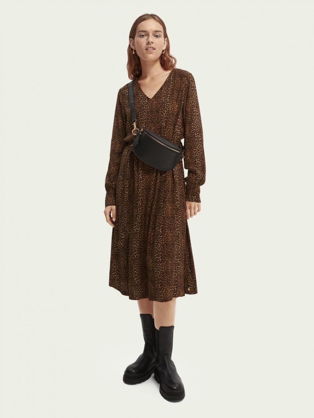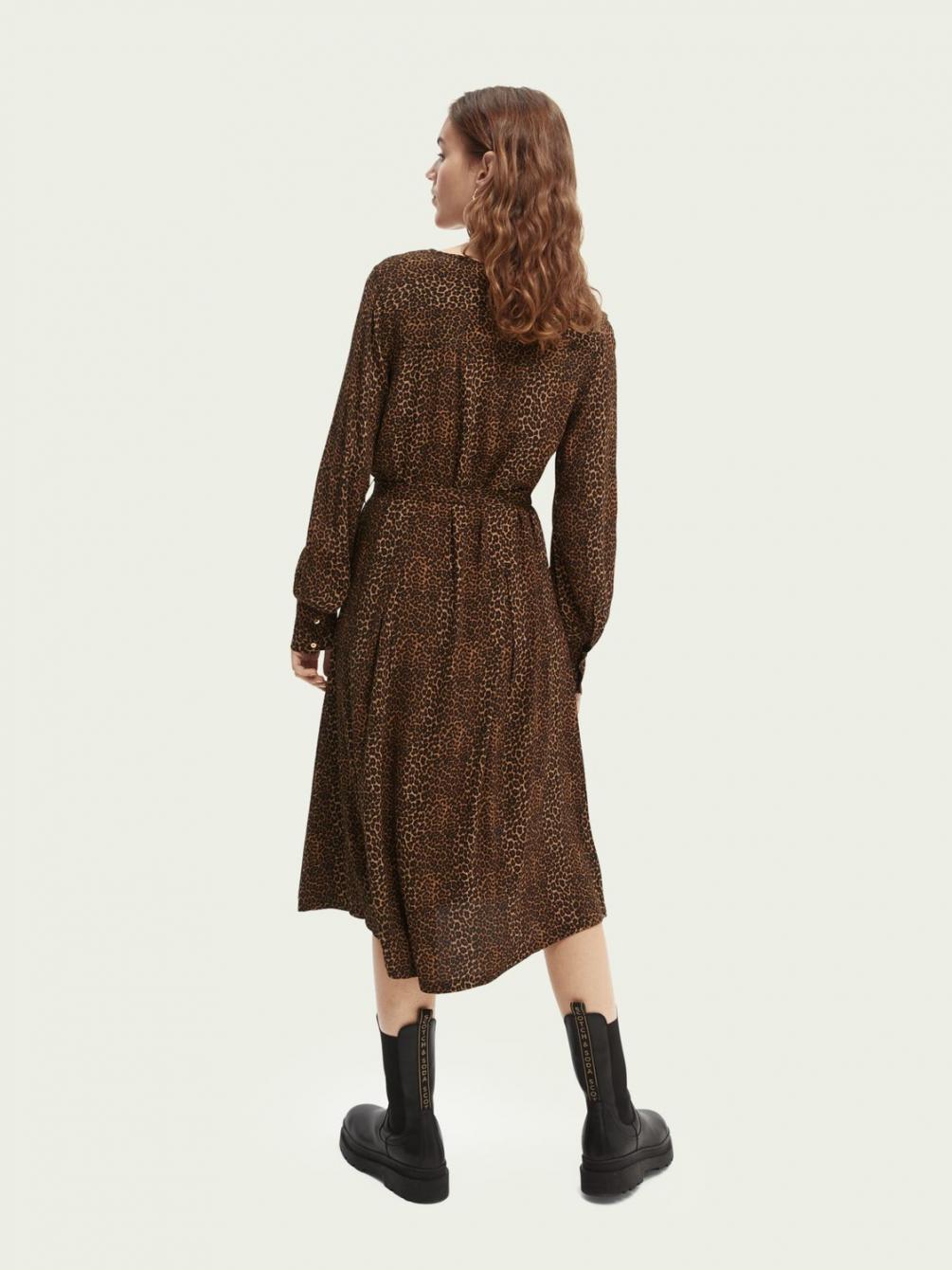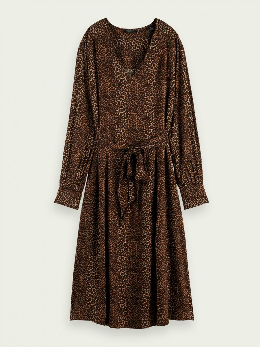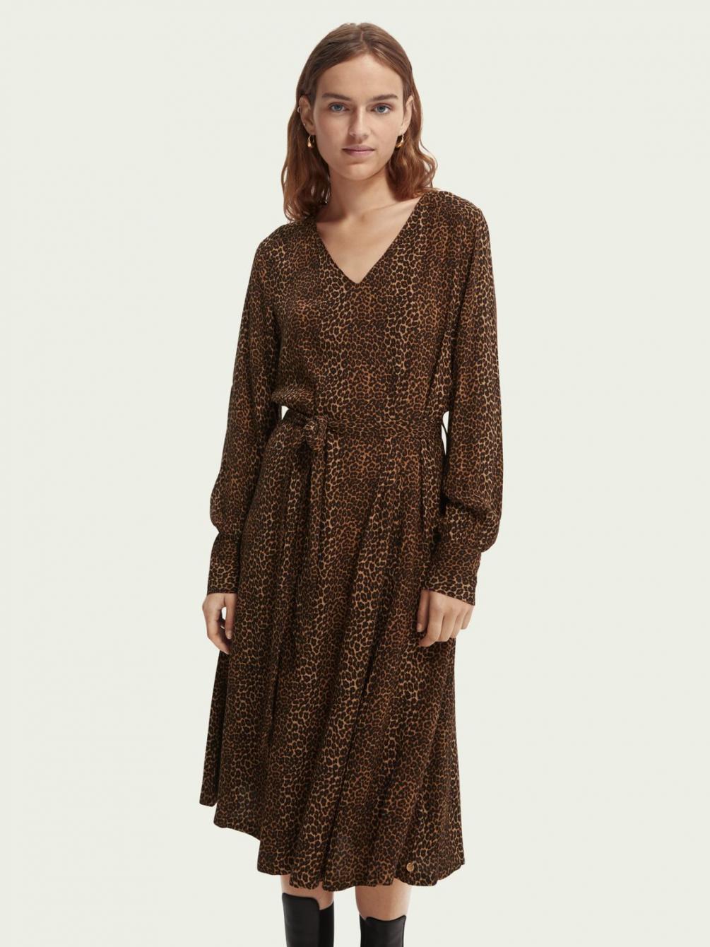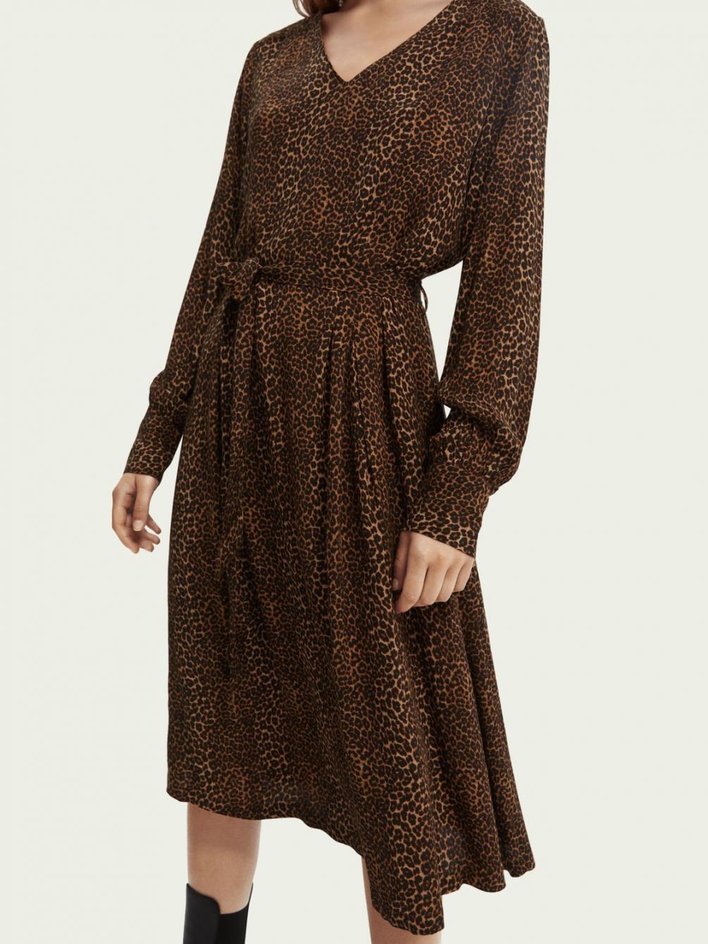 Deze jurk geeft je garderobe een flinke dosis drama: de print, V-hals, ballonmouwen en lange rok met ruches zijn slechts enkele van de details die deze look echt tot leven brengen. Gewoon vaststrikken bij de taille en je bent klaar voor alles wat er op je pad komt.