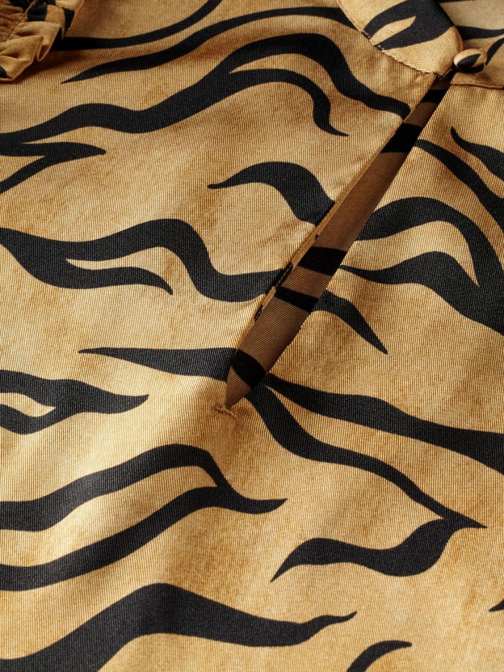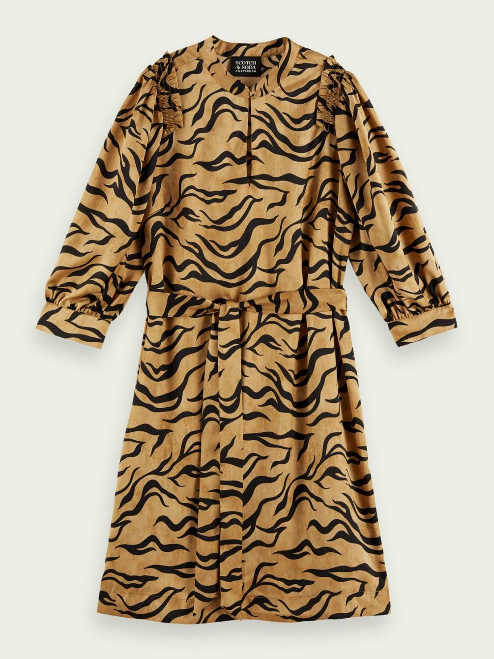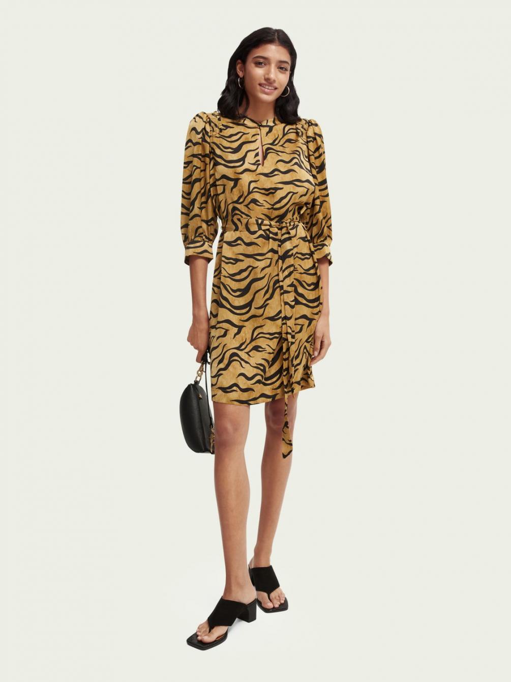 Jij houdt van lange wandelingen over het strand … of eigenlijk overal. Onze soepelvallende jurk met print is gemaakt voor zomerse wandelingen en terrasjes. Ontworpen met lange mouwen, een strikceintuur en een knoopsluiting.