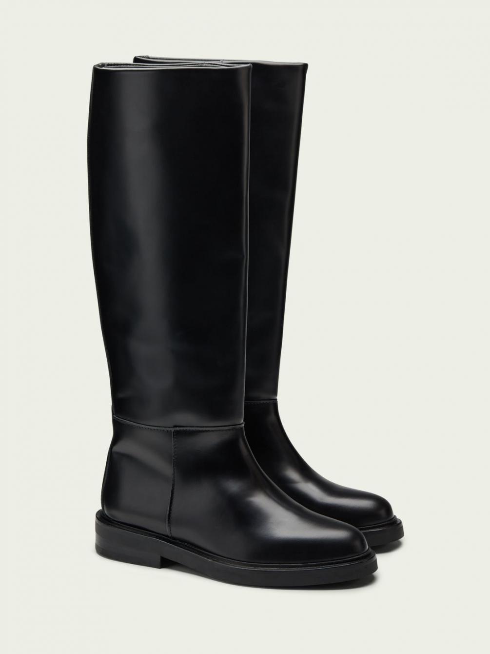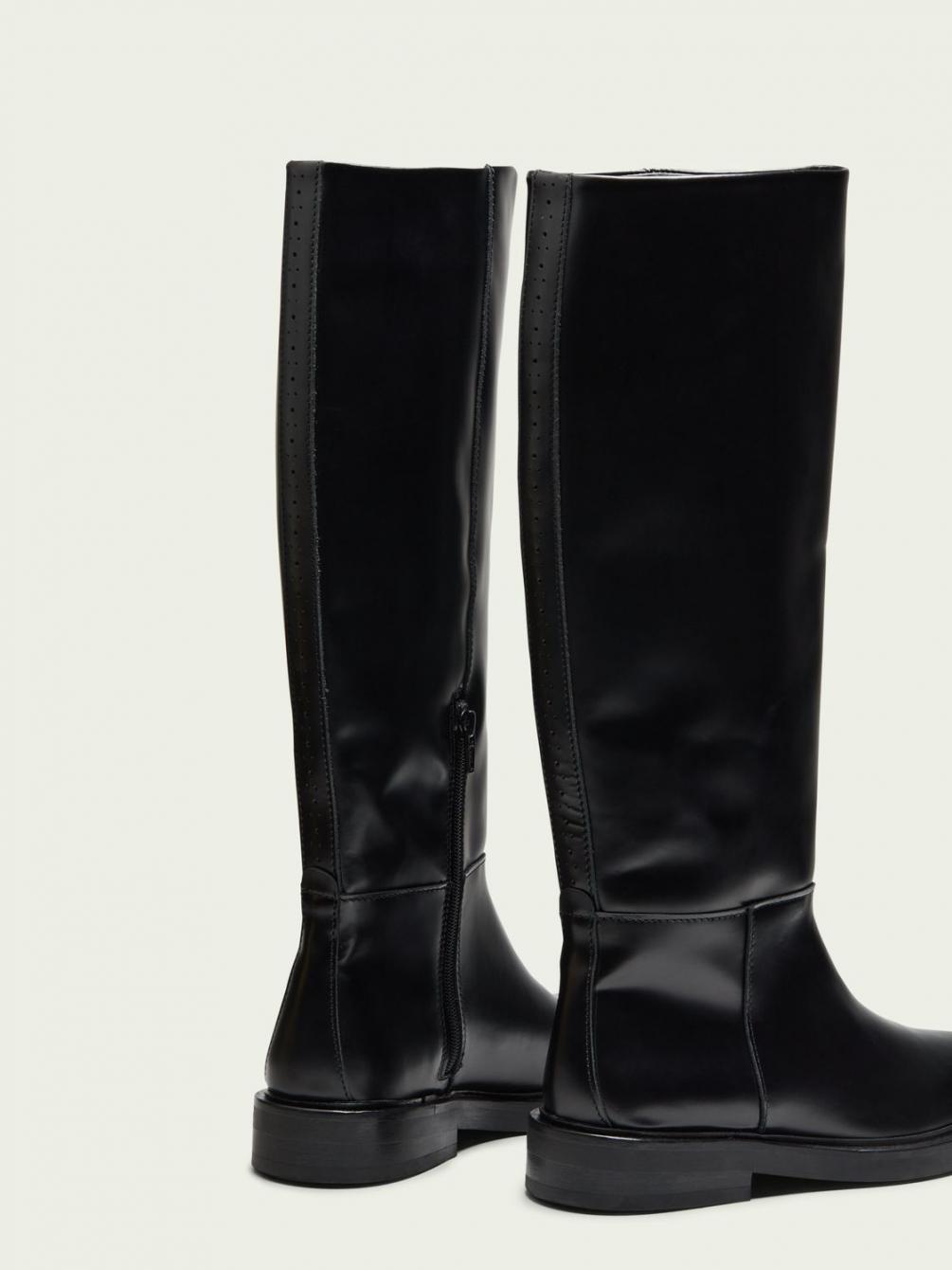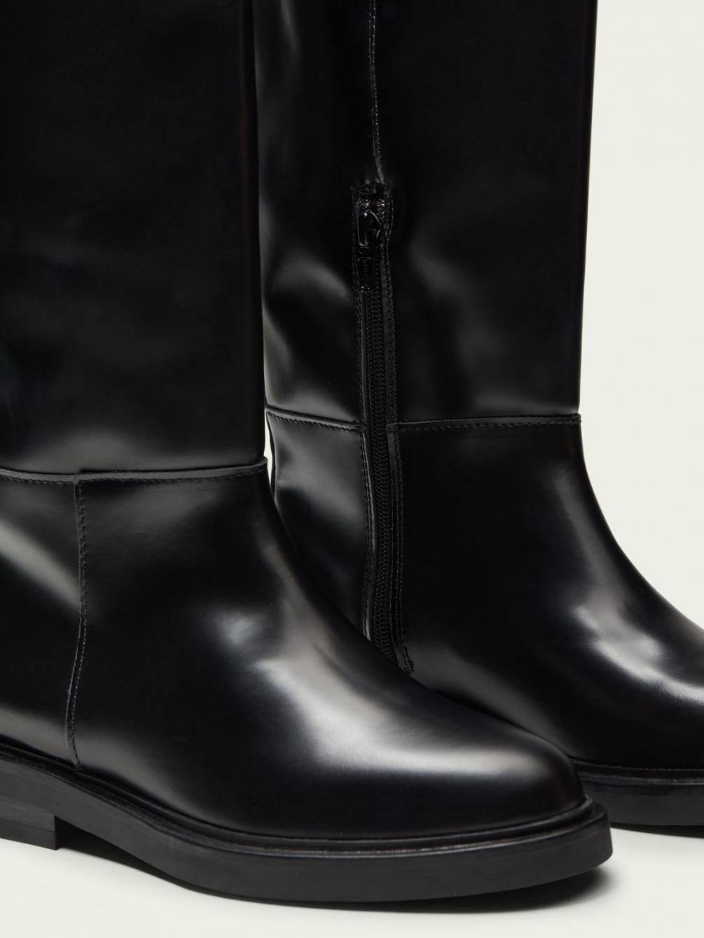 Deze laarzen hebben het klassieke ontwerp van een rijlaars en zijn gemaakt van zacht polido rundleer. Ze zijn verkrijgbaar in zwart. Deze laarzen matchen met alles in je garderobe, en meer.
