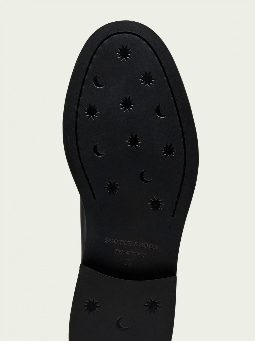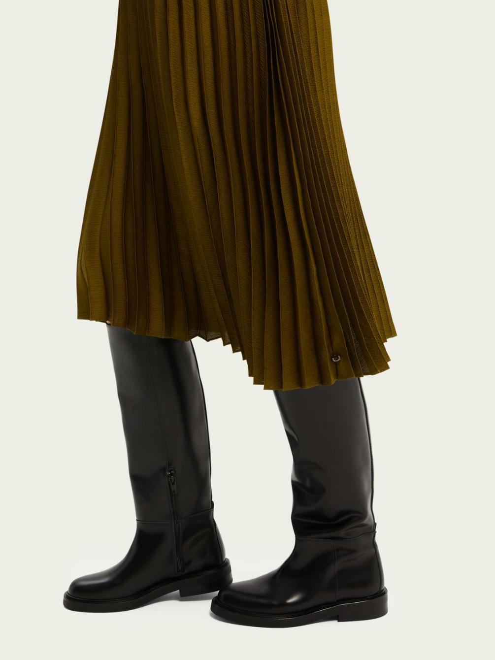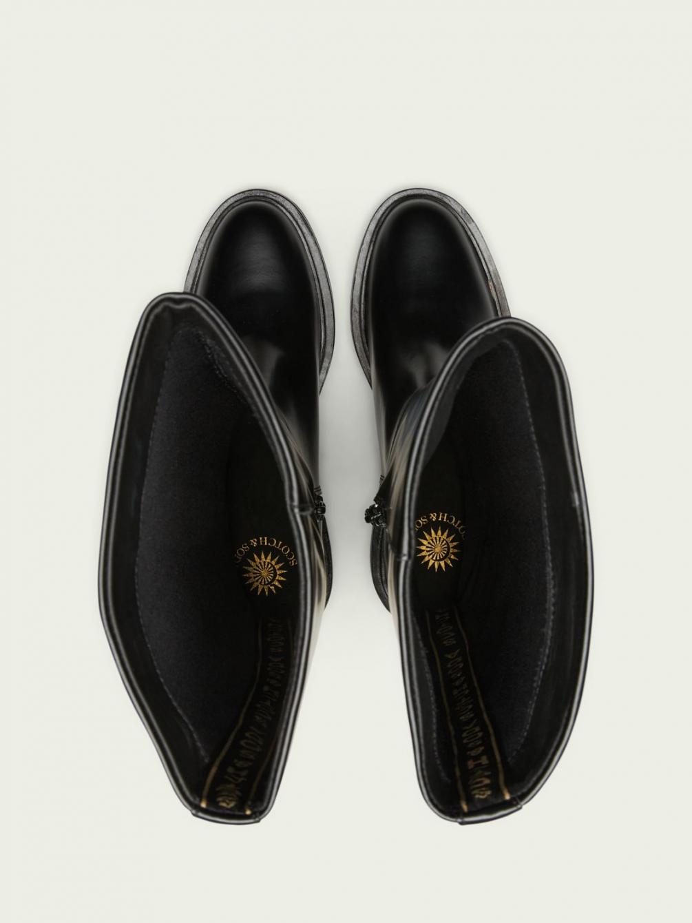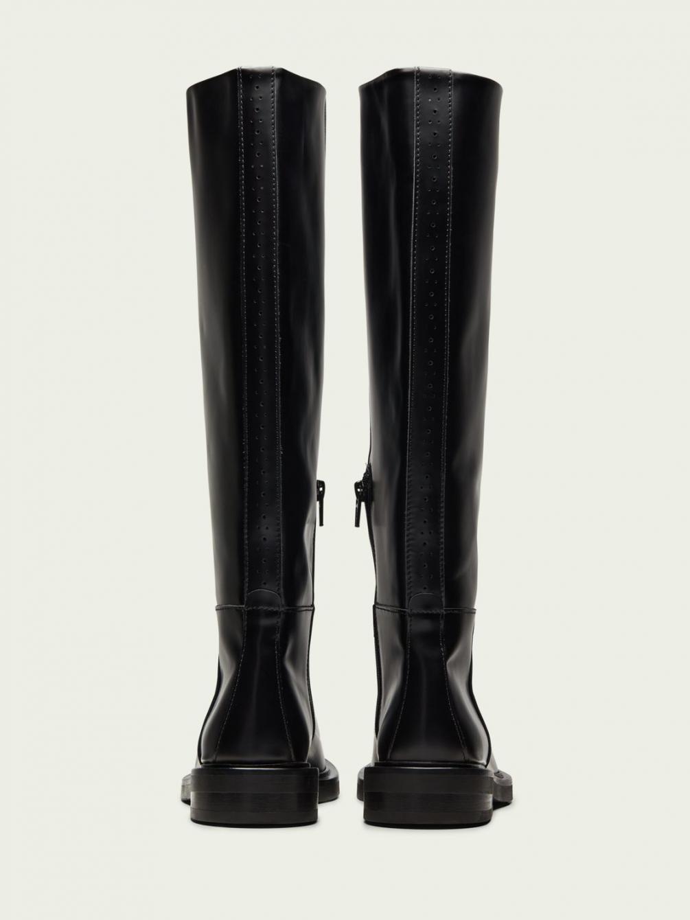 Deze laarzen hebben het klassieke ontwerp van een rijlaars en zijn gemaakt van zacht polido rundleer. Ze zijn verkrijgbaar in zwart. Deze laarzen matchen met alles in je garderobe, en meer.
