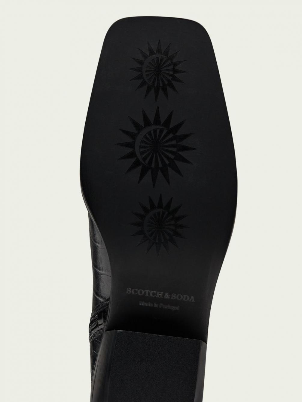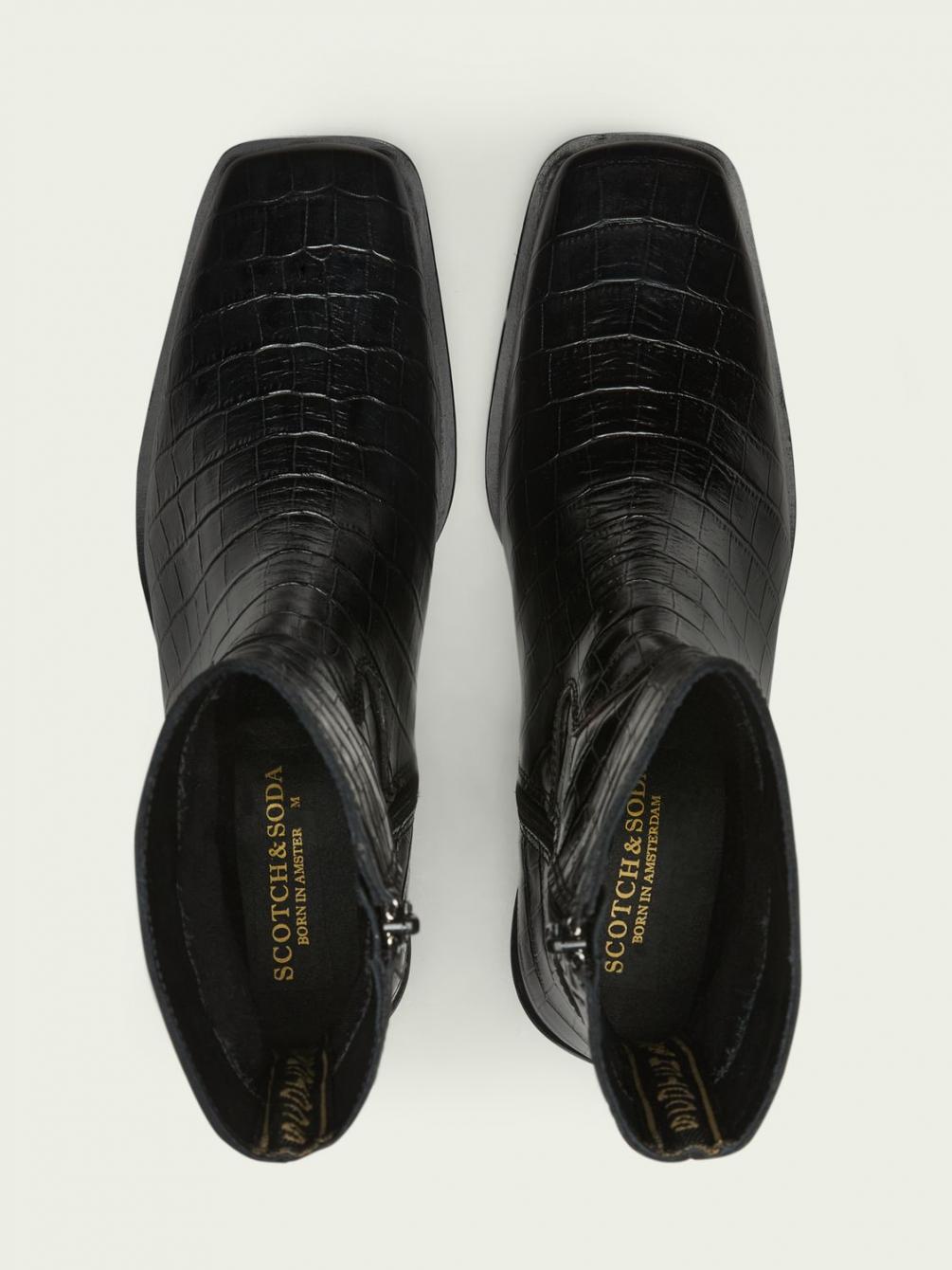 Laarzen | Hannah leren enkellaarzen Blk Croco Optics – Scotch & Soda Dames