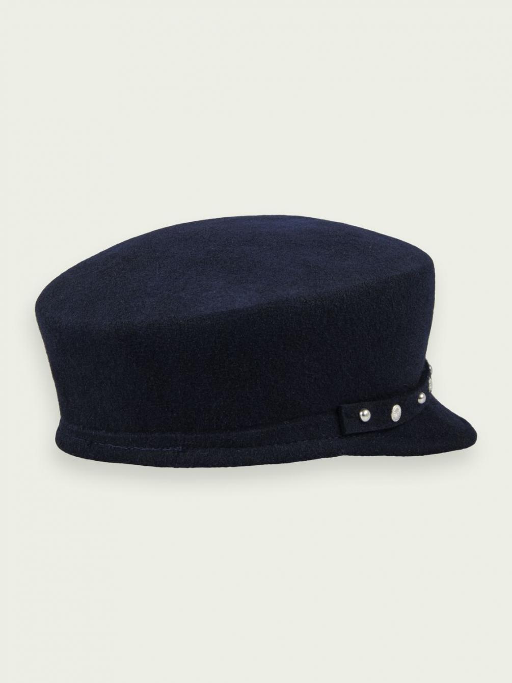 Deze kwalitatieve bakerboy-pet geeft je outfits een boost met zijn moderne uitstraling. De comfortabele, warme wol en de band met studs vormen een charmant contrast.