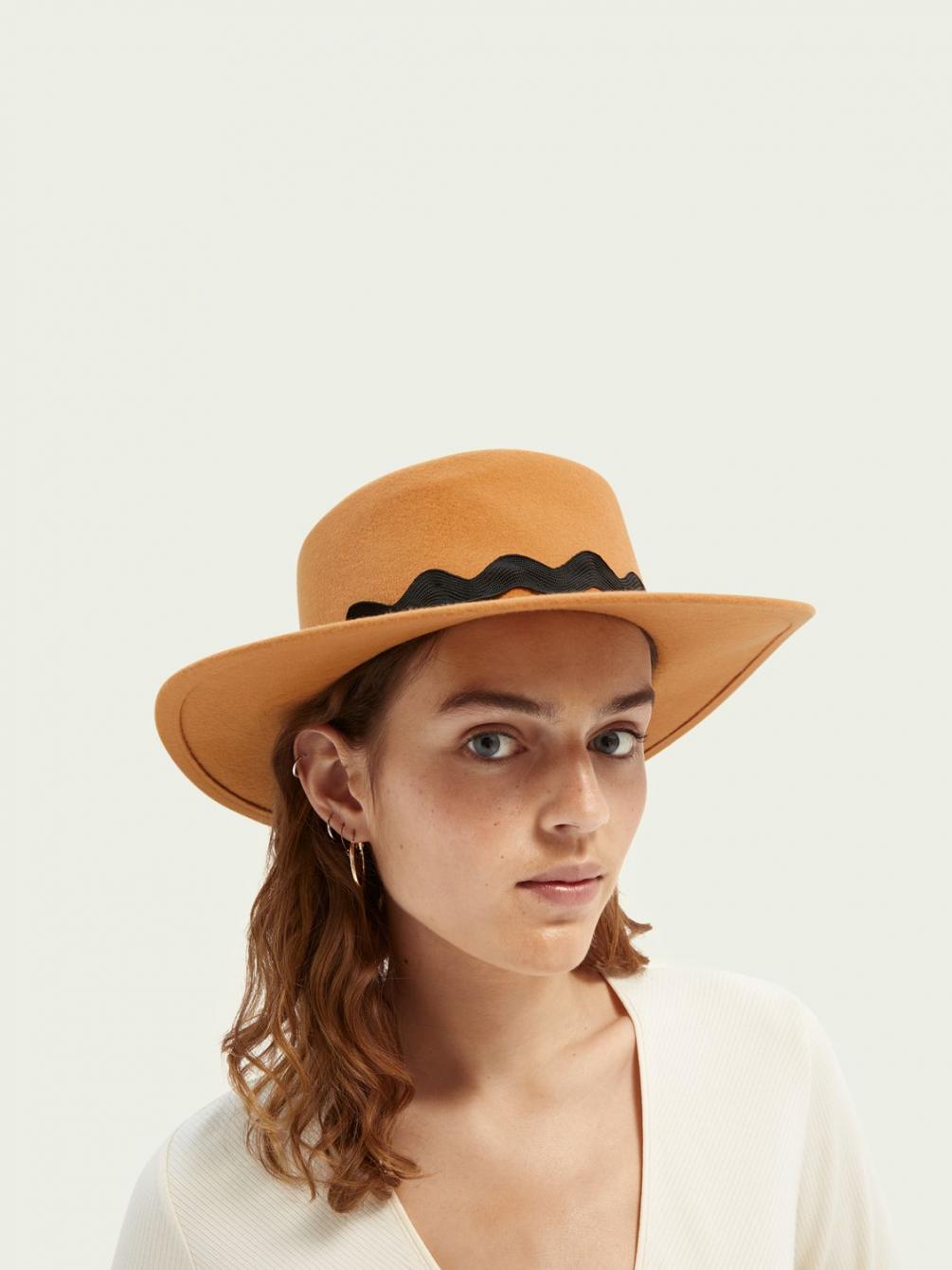 Deze hoed van pure wol is een stijlvolle finishing touch voor ieder seizoen. De ronde rand en golvende band hebben een coole en iets retro look. Experimenteer erop los, want deze hoed geeft iedere outfit een boost.
