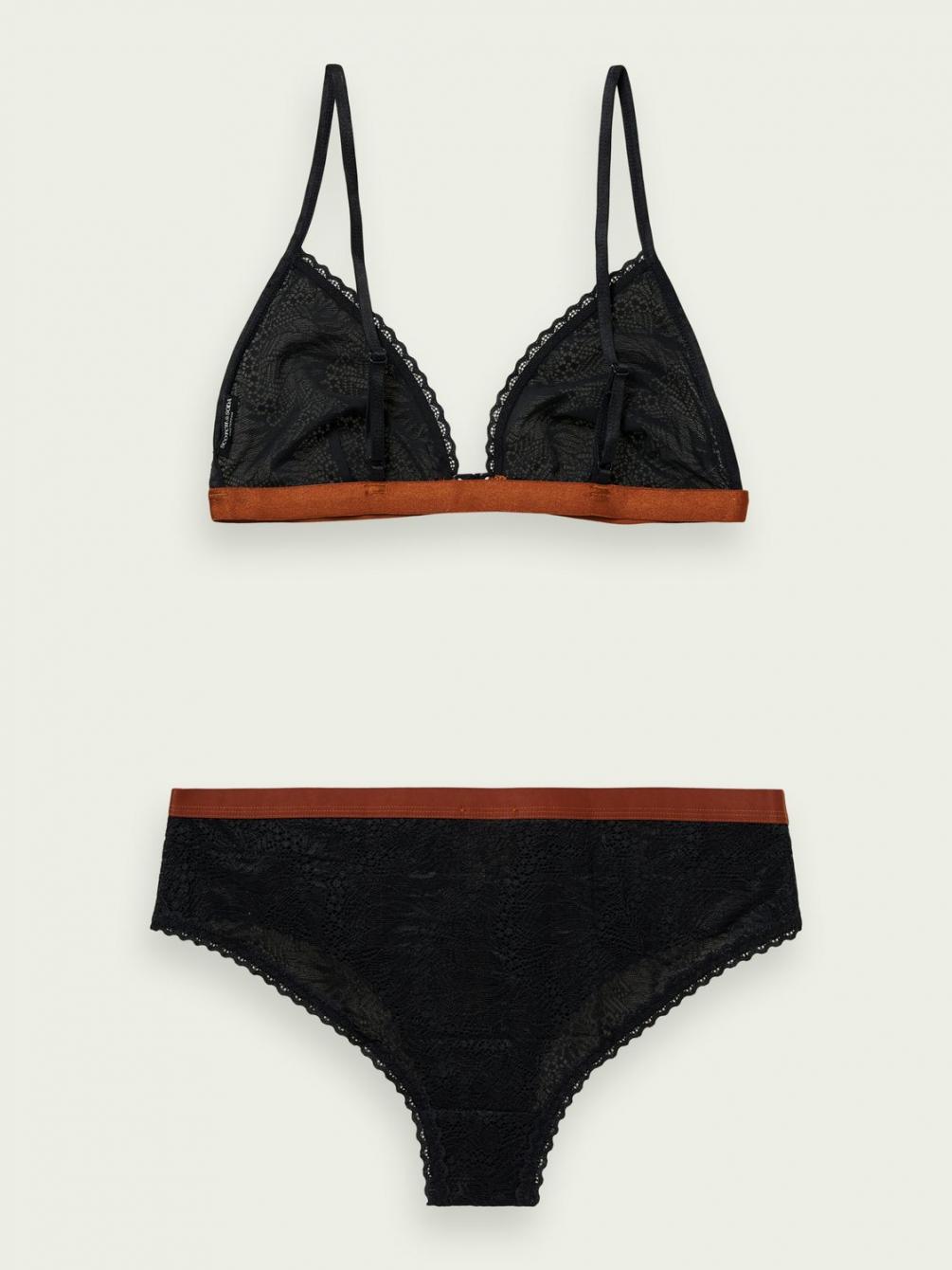 In the look for a matching underwear set? Spice up your lingerie collection with this lace underwear set featuring clasp closures and a soft waistband.