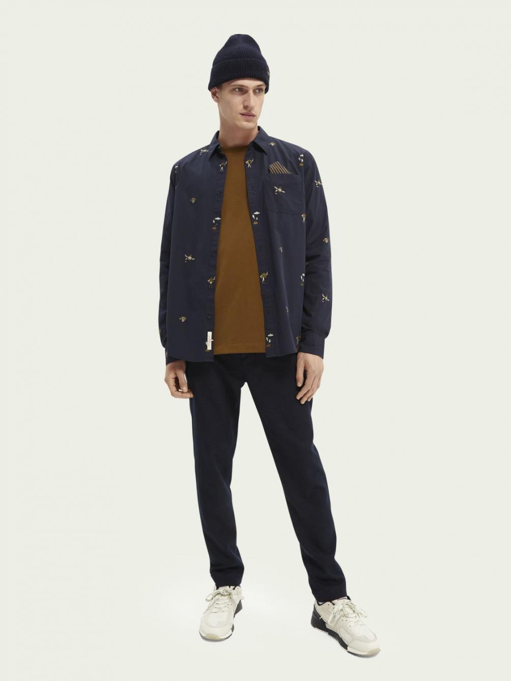 Als het iets formeler moet, is dit poplin overhemd met fil-coupé dessin en een vaste pochet de perfecte keuze. Dit lichte en comfortabele overhemd is gemaakt van katoen om het de hele n…