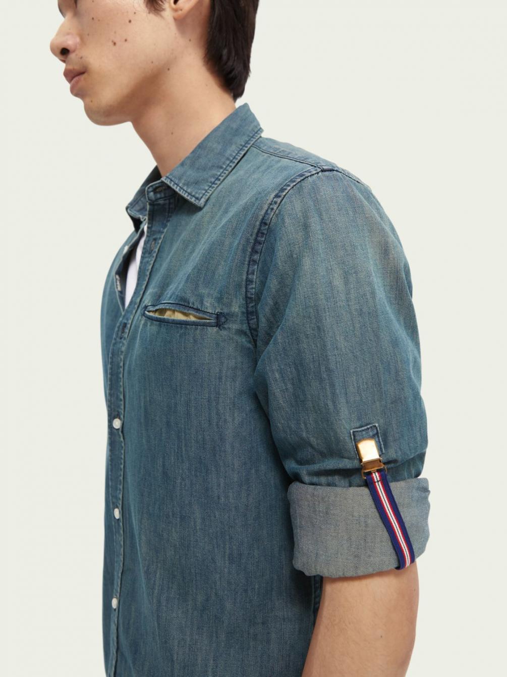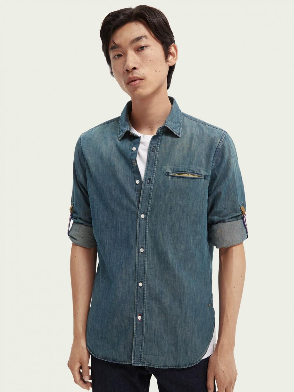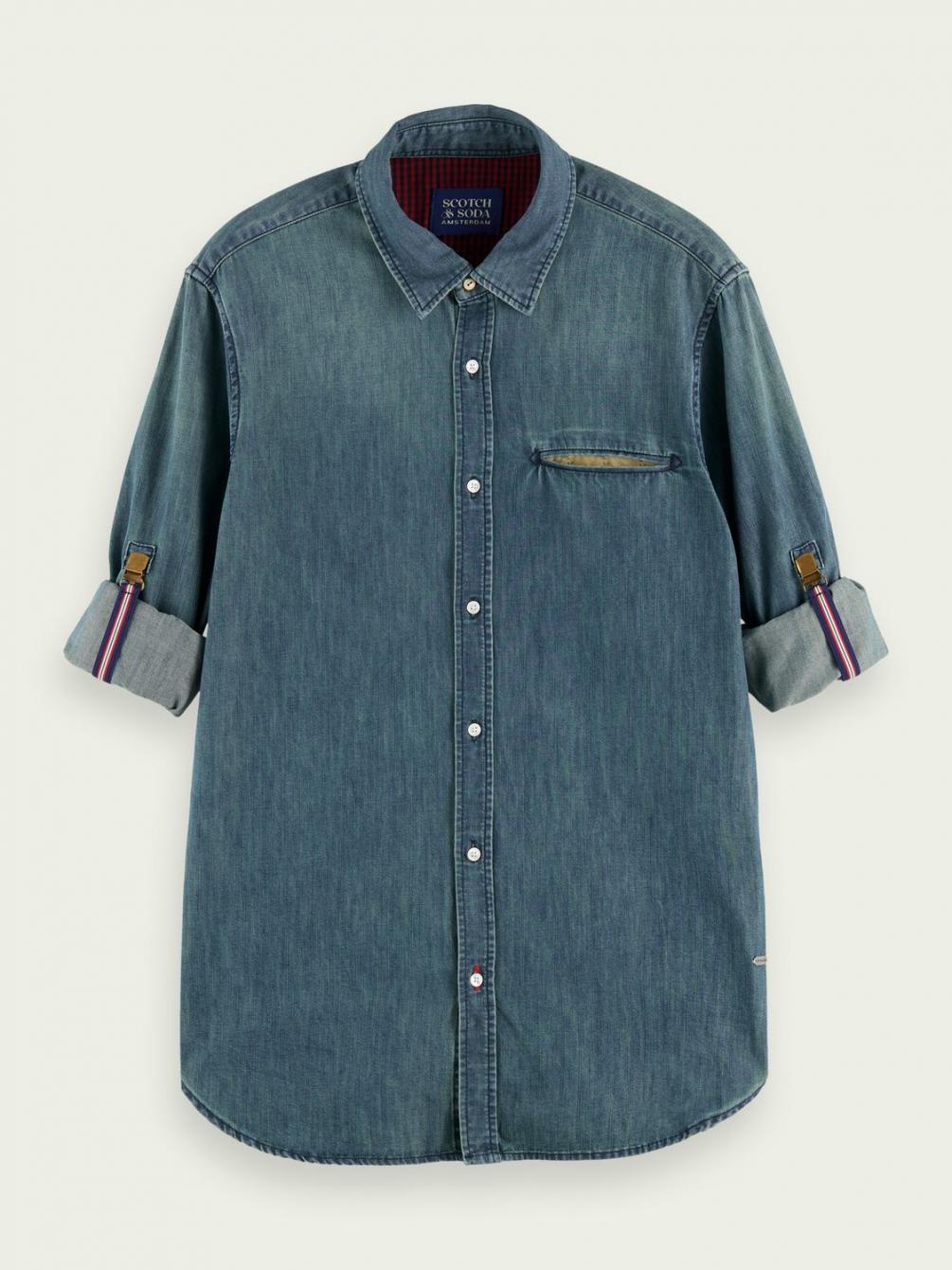 Dit overhemd is gemaakt van een lichtgewicht katoenmix en gedetailleerd met een gepaspelde borstzak en mouwophouders.