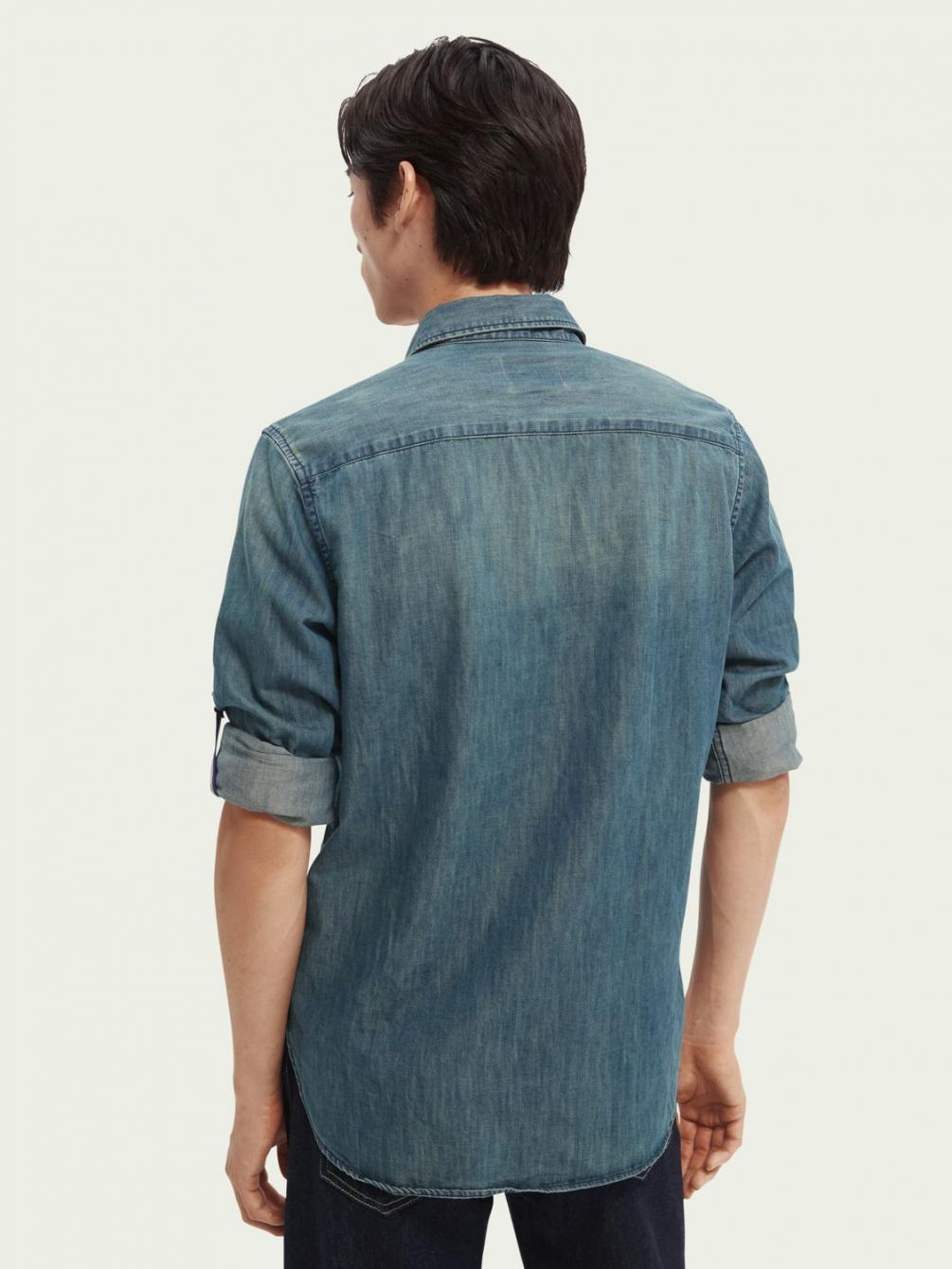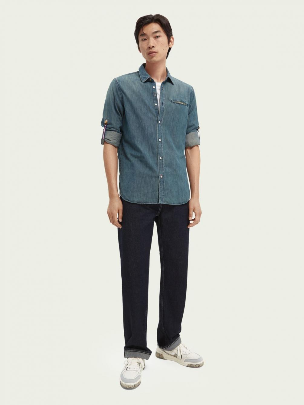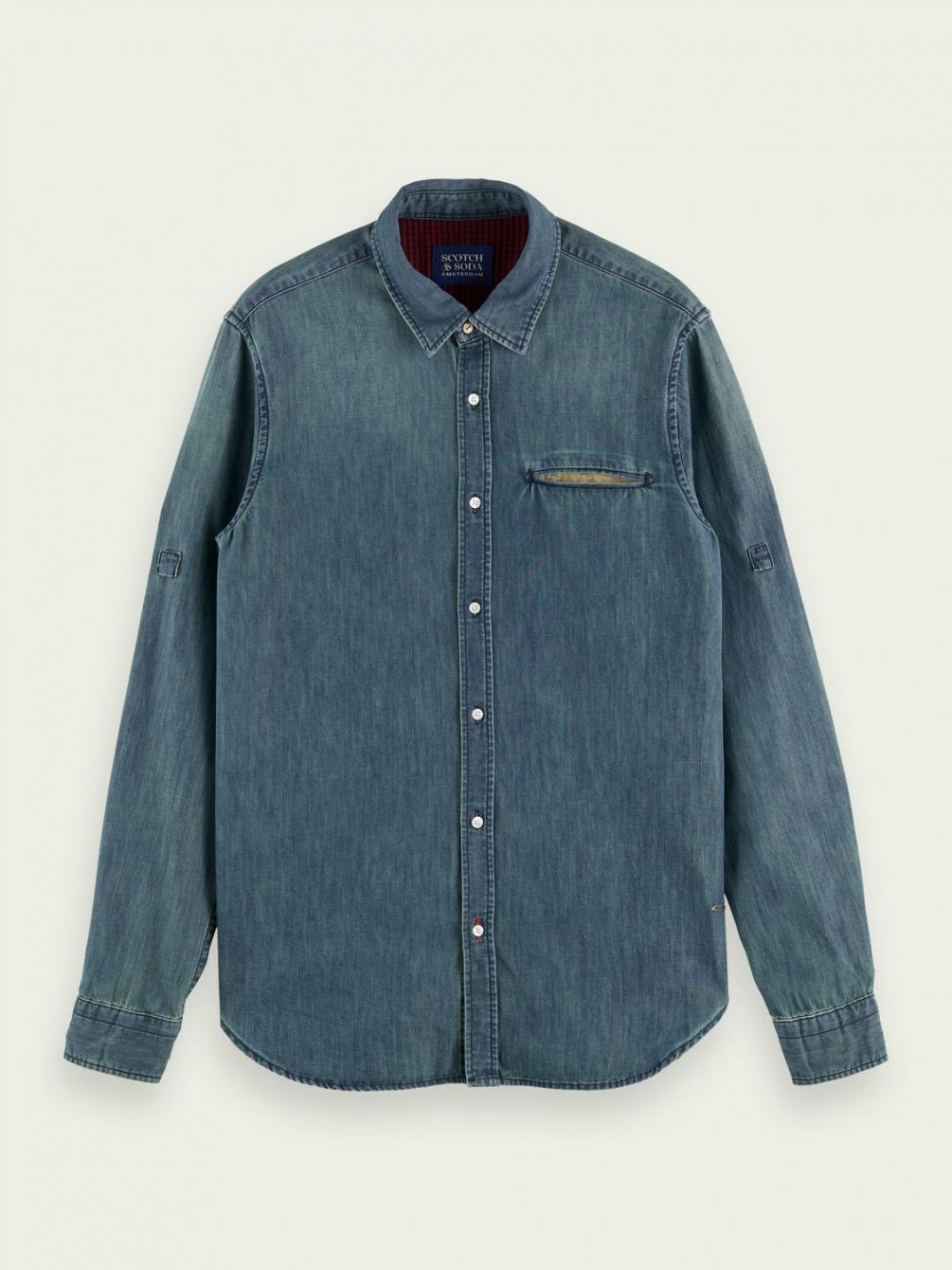 Dit overhemd is gemaakt van een lichtgewicht katoenmix en gedetailleerd met een gepaspelde borstzak en mouwophouders.