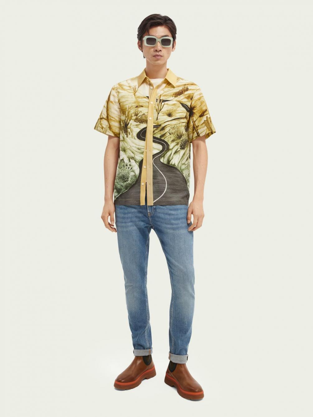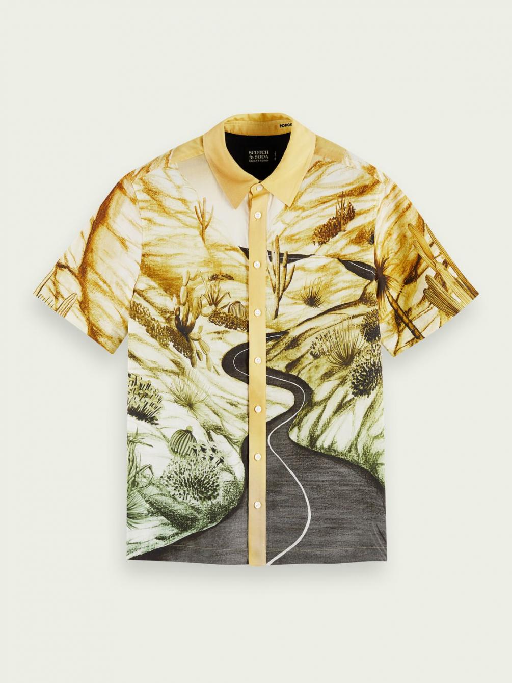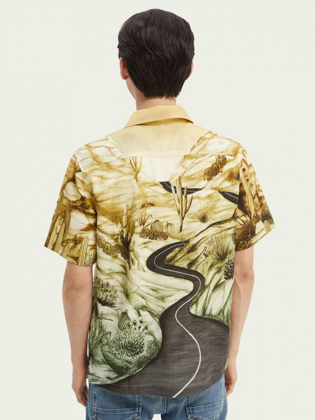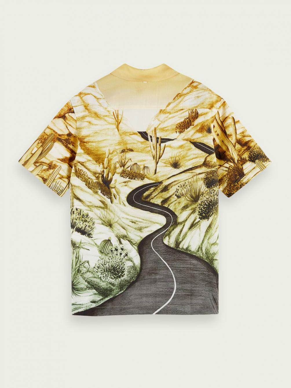Een prestigieuze variant van een cultklassieker: dit overhemd met korte mouwen tilt de hawaïstijl naar nieuwe hoogten met een wonderlijke print van een droomlandschap en een ultrazacht gedrapeerd effect. Ontworpen in een relaxed fit.