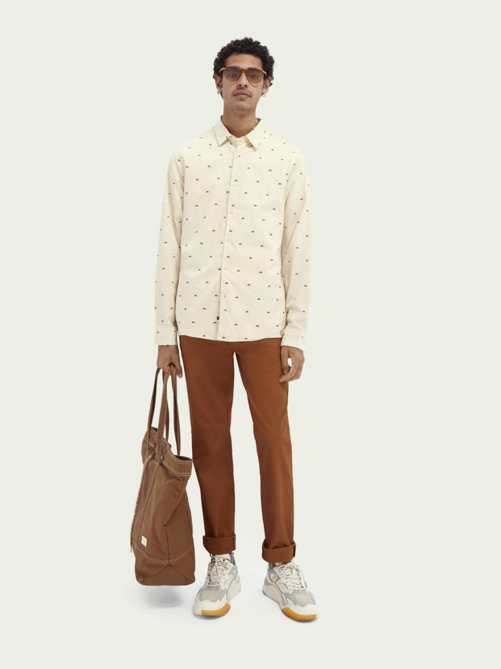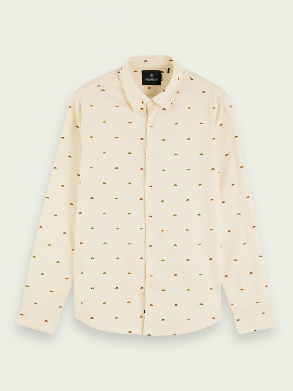 De perfecte keuze voor een casual overhemd met knoopsluiting. Onze uitvoering van katoenen poplin heeft een smalle, klassieke kraag en een moeiteloze afgeronde zoom. De all-over-print is de perfecte finishing touch. Je garderobe is een favoriet rijker.