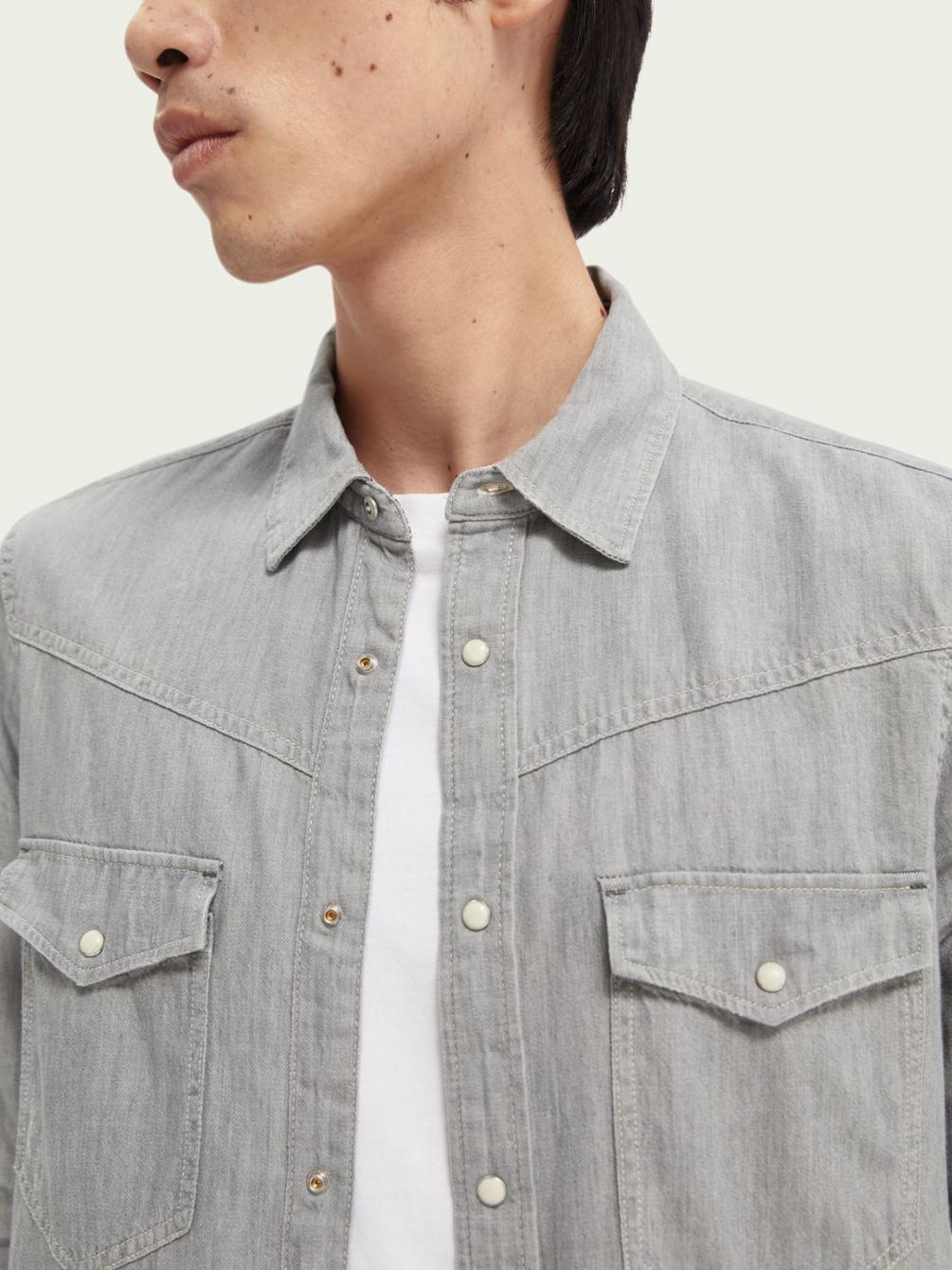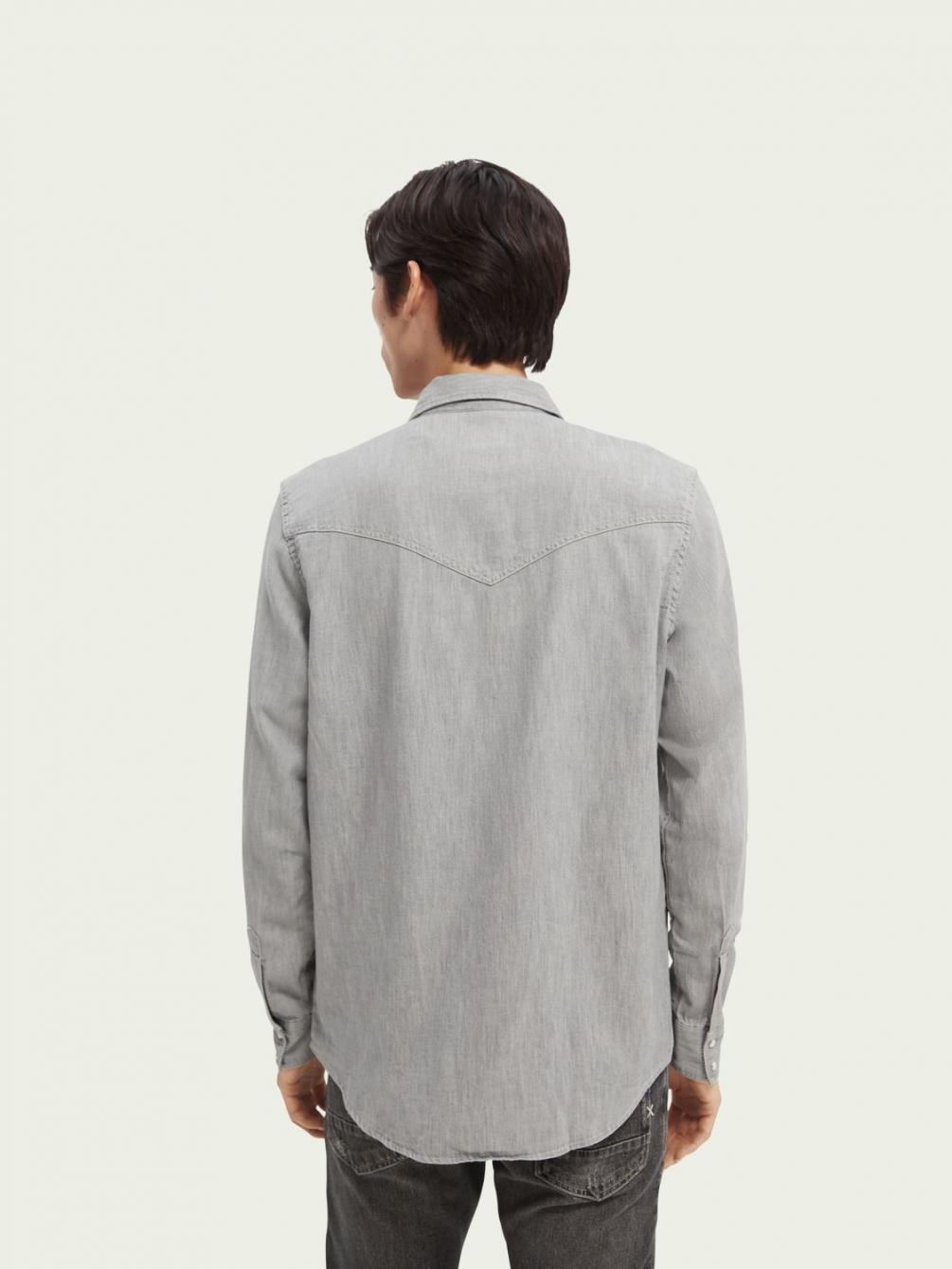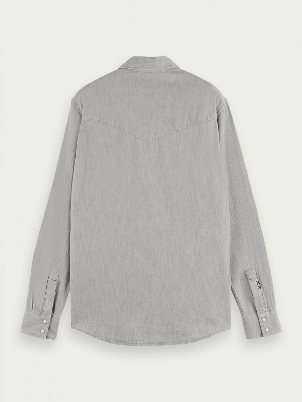 Overhemden | Regular fit overhemd van gewassen denim Grey – Scotch & Soda Heren
