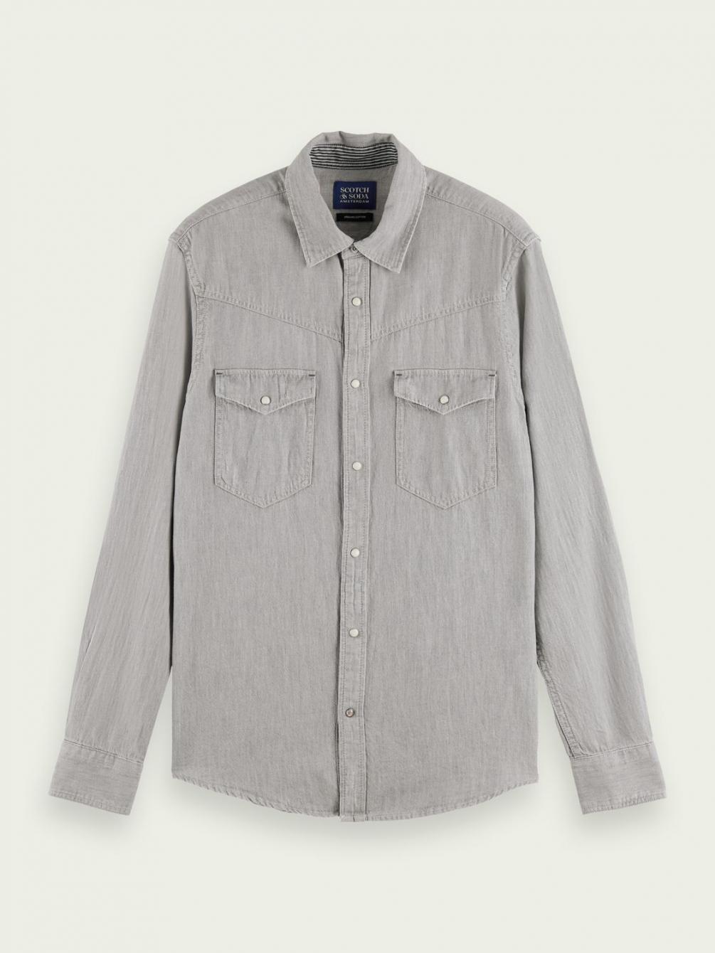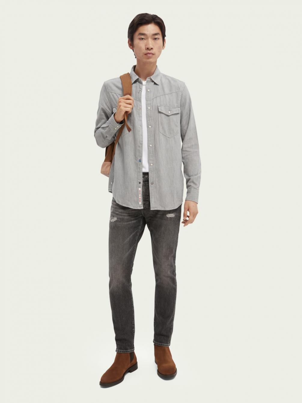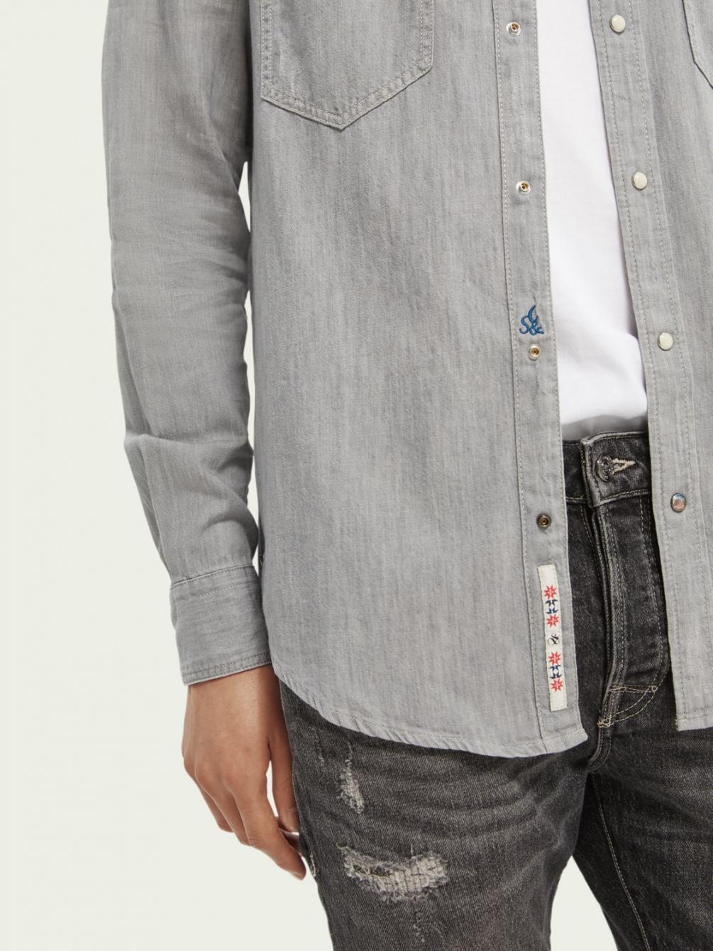 Overhemden | Regular fit overhemd van gewassen denim Grey – Scotch & Soda Heren