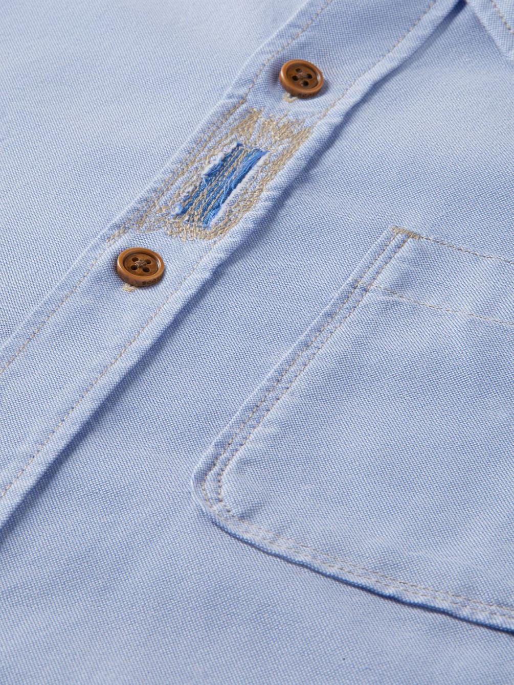 Ons klassieke slim-fit overhemd met een twist: slijtage-effecten, reparatiedetails en twee verschillende tinten geven dit design een extra dimensie. Dit veelzijdige en comfortabele overhemd is gemaakt van zac…