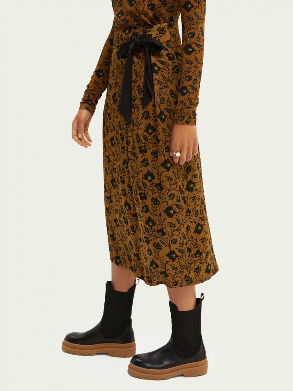 Deze rok met sjaaldetail en een prachtige bloemenprint is ideaal om iedere dag te dragen. De midilengte voegt een klassiek element toe aan je look. Creëer een contrasteffect met laarzen.