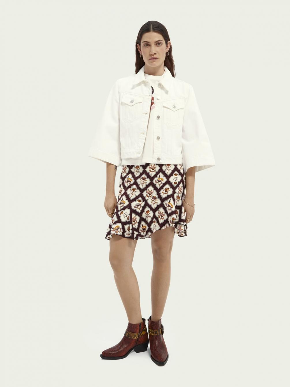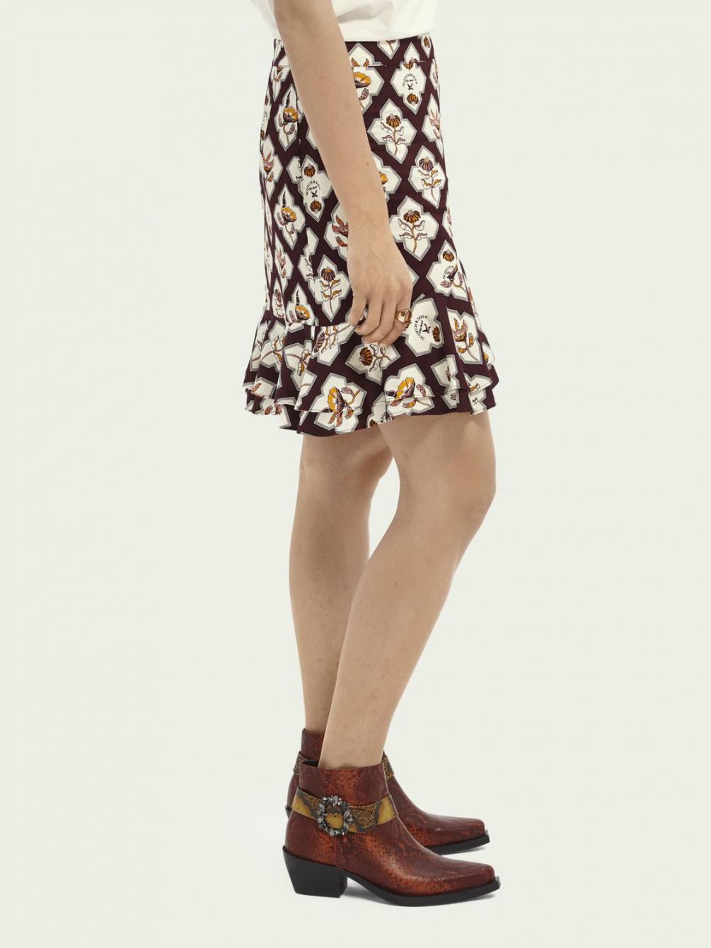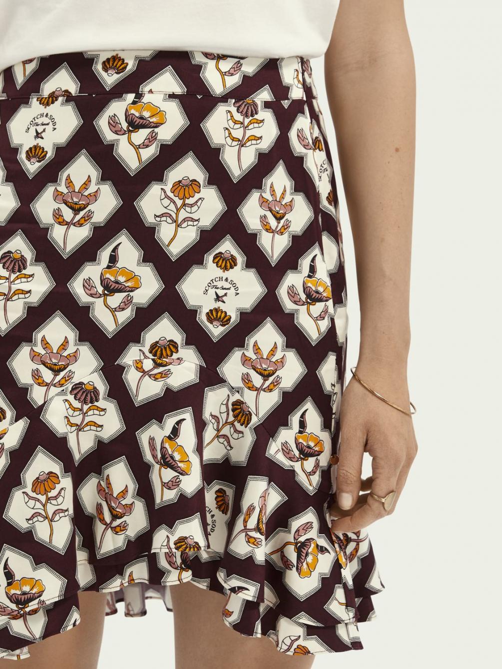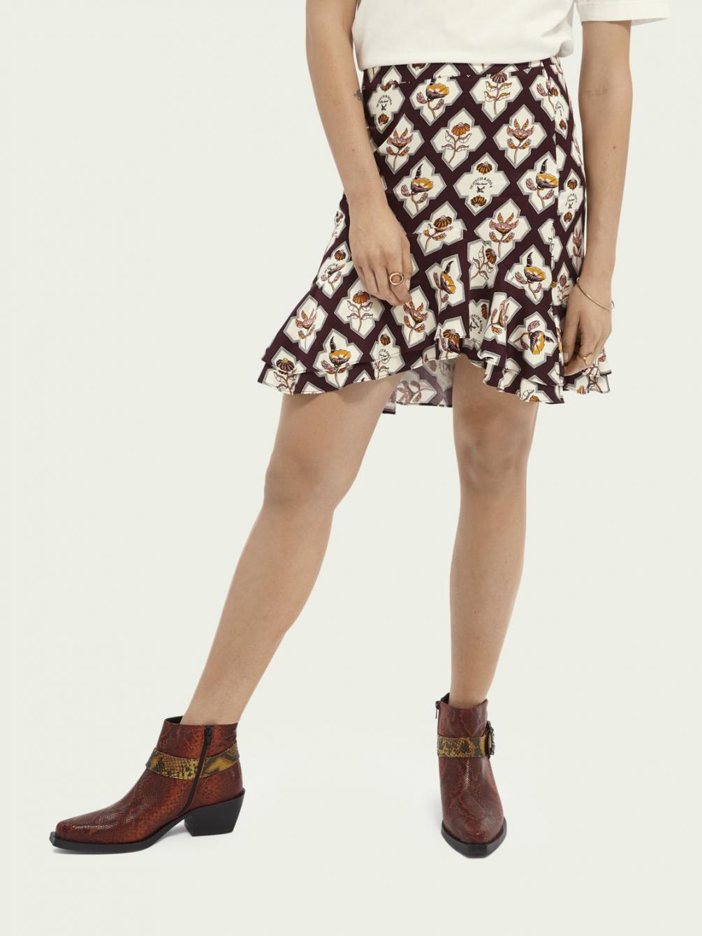 Onze rok met print is perfect afgewerkt met subtiele ruches langs de zoom. De korte lengte versterkt deze flirterige en vrolijke look. Ideaal voor zomeravonden.