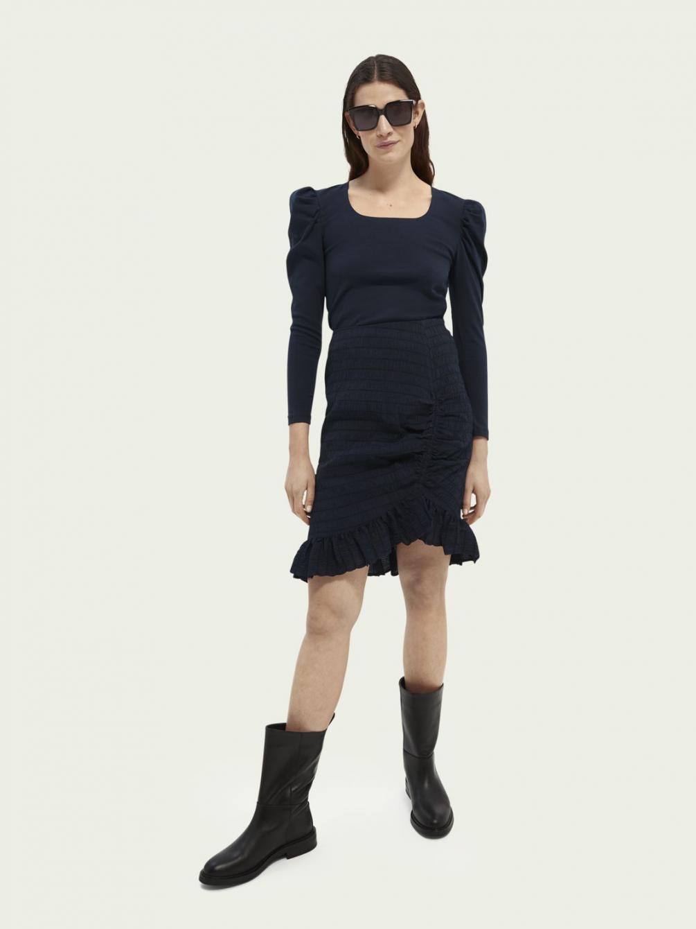 Deze rok van seersucker stof is gemaakt van een TENCEL™mix (50%). De ruches en geplooide details zitten precies waar je ze wilt hebben. Je hoeft er alleen maar een simpel T-shirt bij te dragen om je zomergarderobe wat extra flair te geven.