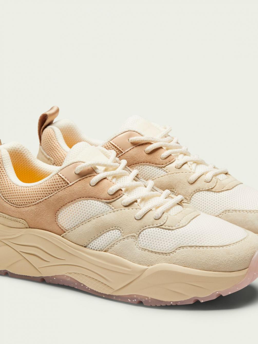 Deze chunky sneakers voor dames zijn gemaakt om flink mee door te stappen, met een speciaal ontworpen rubberzool met profiel aan de onderkant voor grip. Ze zijn gemaakt met panelen van rundsuède en nylon en verfijnd met een prachtig contrasteffect tussen de donker- en lichtgrijze tinten. Onder een midi-jurk of cropped jeans stelen ze de show.