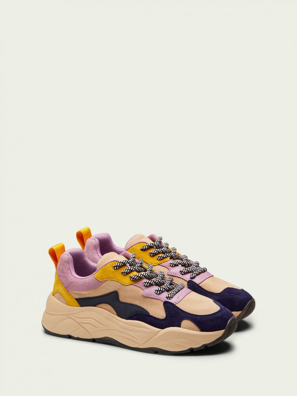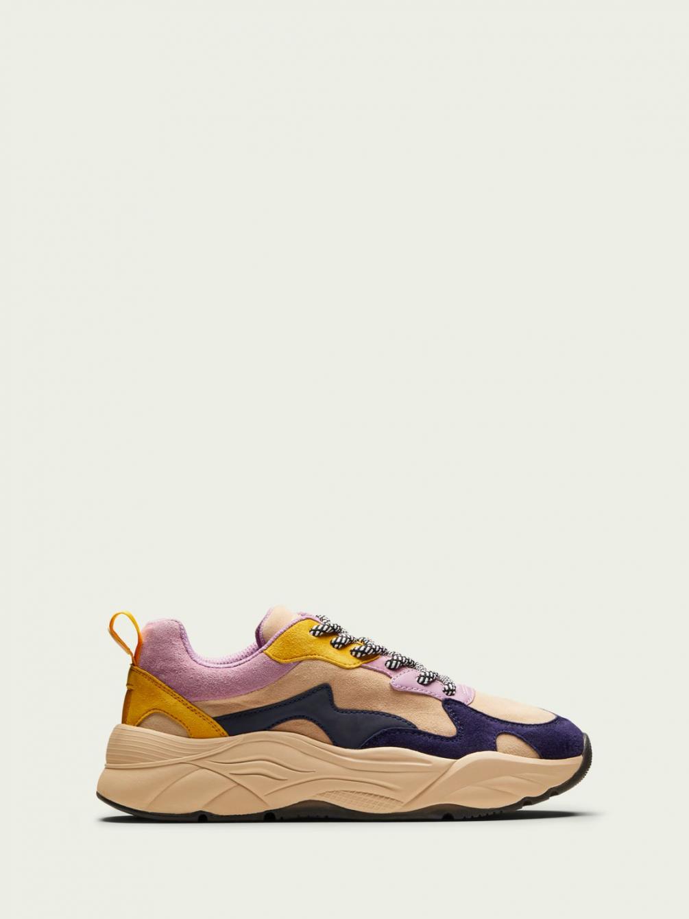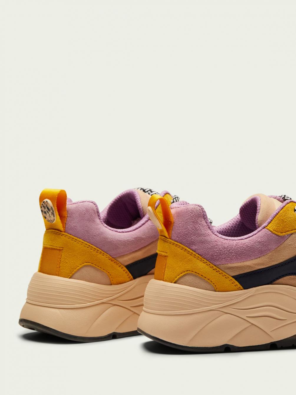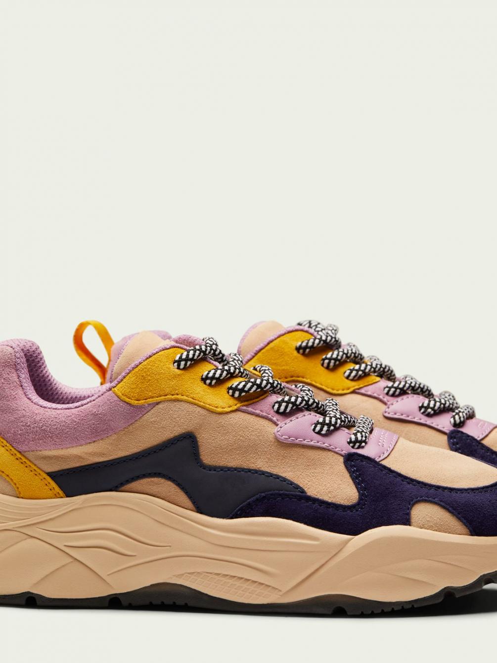 Deze chunky sneakers voor dames zijn gemaakt om flink mee door te stappen, met een speciaal ontworpen rubberzool met profiel aan de onderkant voor grip. Ze zijn gemaakt met panelen van rundsuède en geaccentueerd met details in verschillende kleuren. Onder een midi-jurk of cropped jeans stelen ze de show.