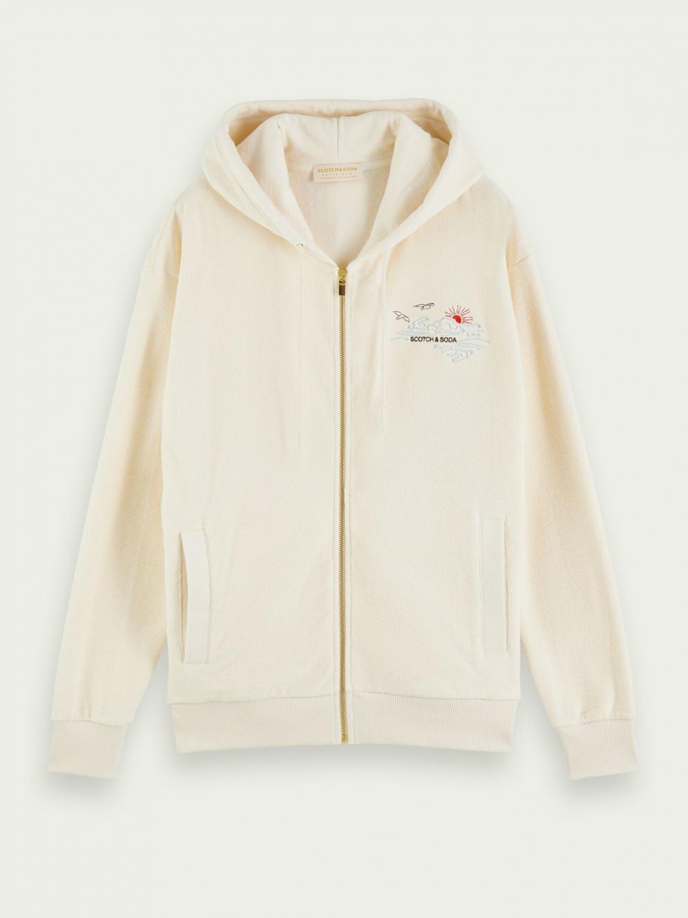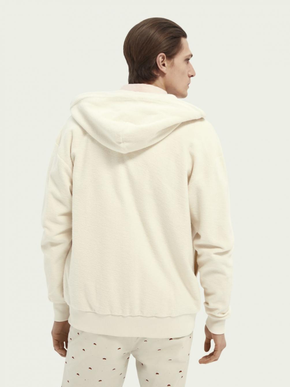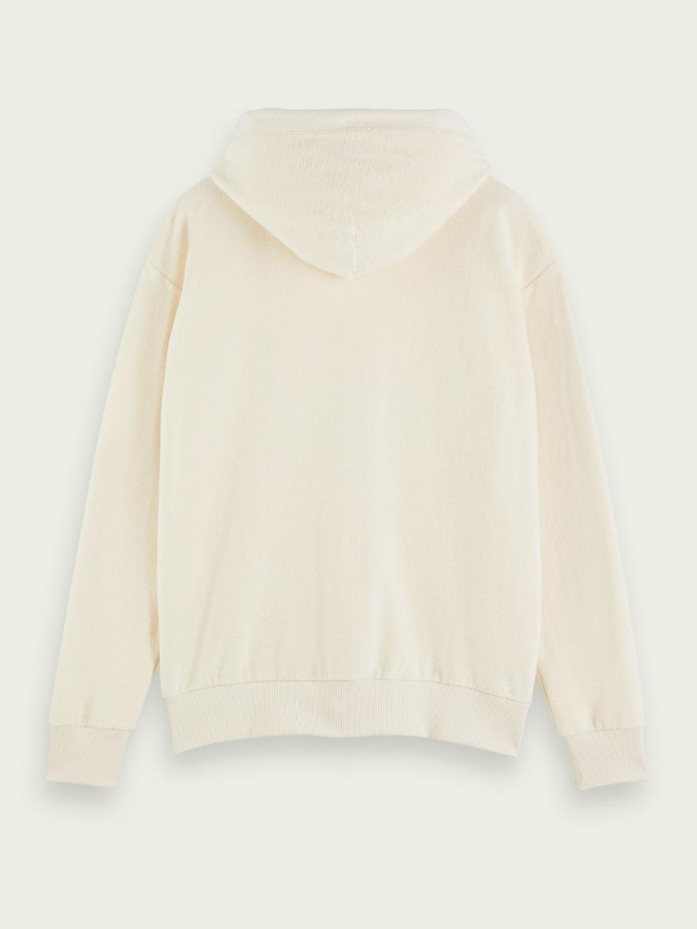 Als je net van de surfplank afstapt, is er niks beters dan onze badstoffen hoodie. Hij is heerlijk warm en dankzij de ritssluiting makkelijk om aan te trekken. Het subtiele grafische logo op de borst voegt er nog een vleugje Scotch & Soda flair aan toe.Bevat biologisch katoen: niet-GGO-zaden worden geteeld zonder het gebruik van pesticiden en synthetische meststoffen. Daarnaast wordt ook het waterverbruik verminderd en vruchtwisseling gebruikt, wat beide beter is voor de bodemgezondheid.