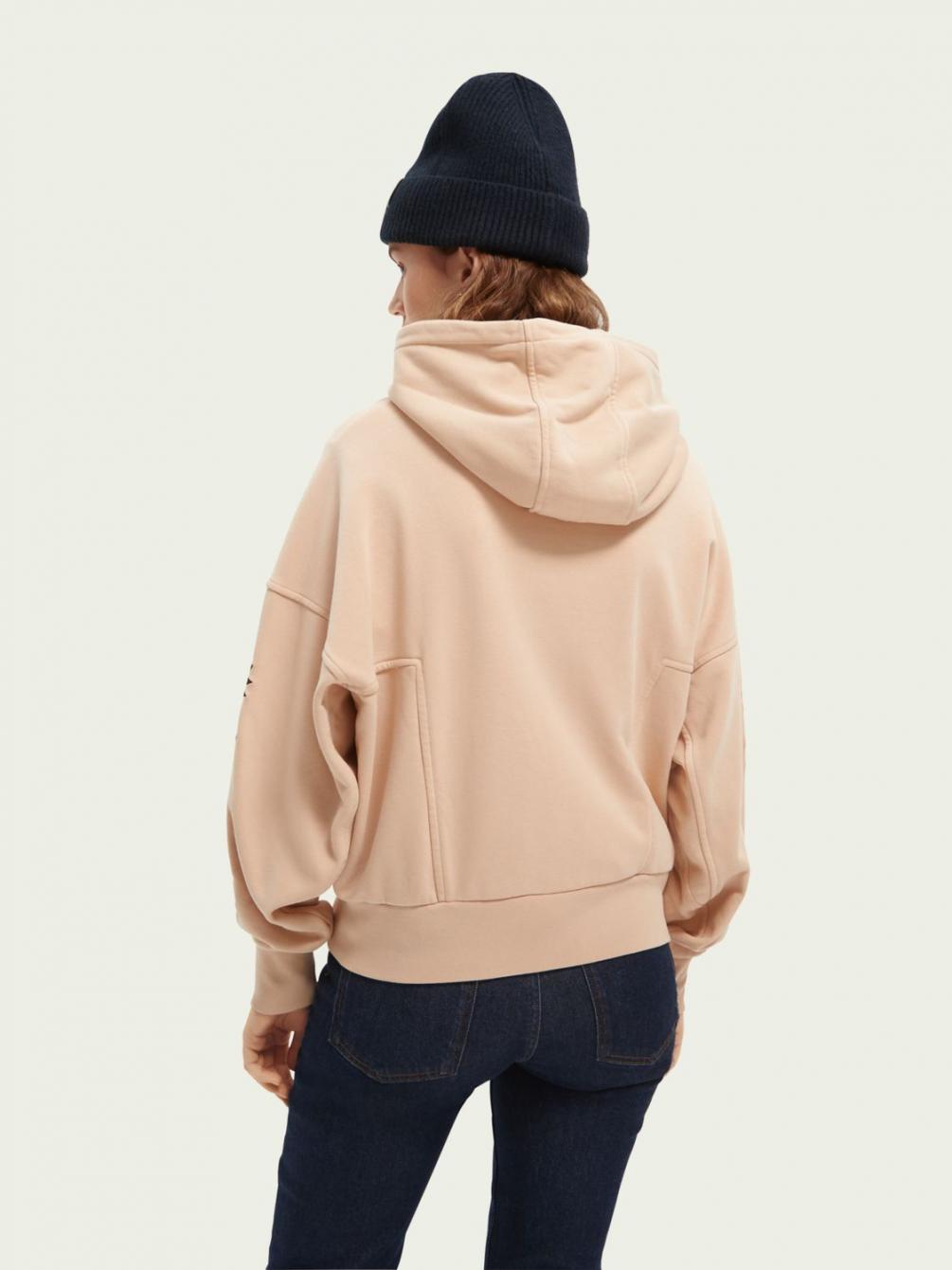Onze nieuwste hoodie heeft een oversized fit en is afgewerkt met borduursels over de mouwen.