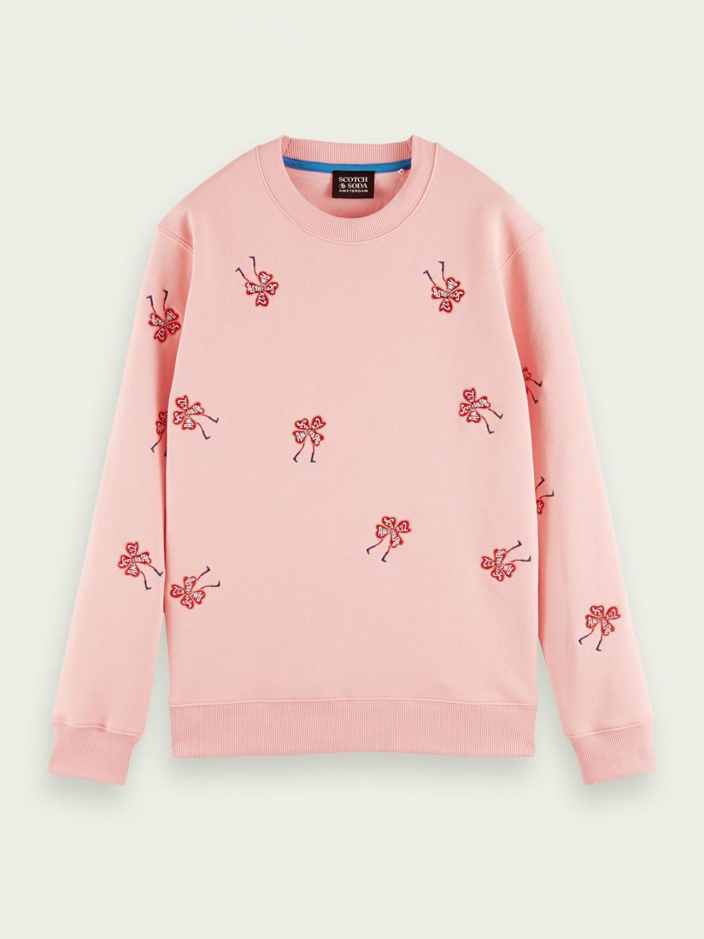 Deze sweater met ronde hals en all-over geborduurde decoraties geeft iedere outfit een boost. Gelaagd of op zichzelf, dit zachte item van een katoenmix is perfect voor iedere dag.