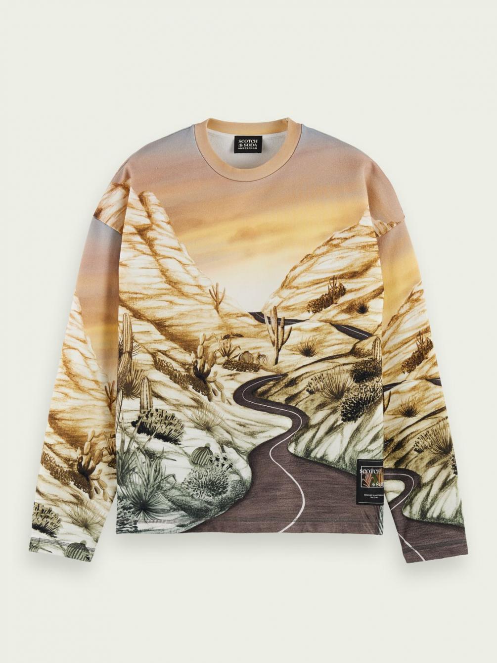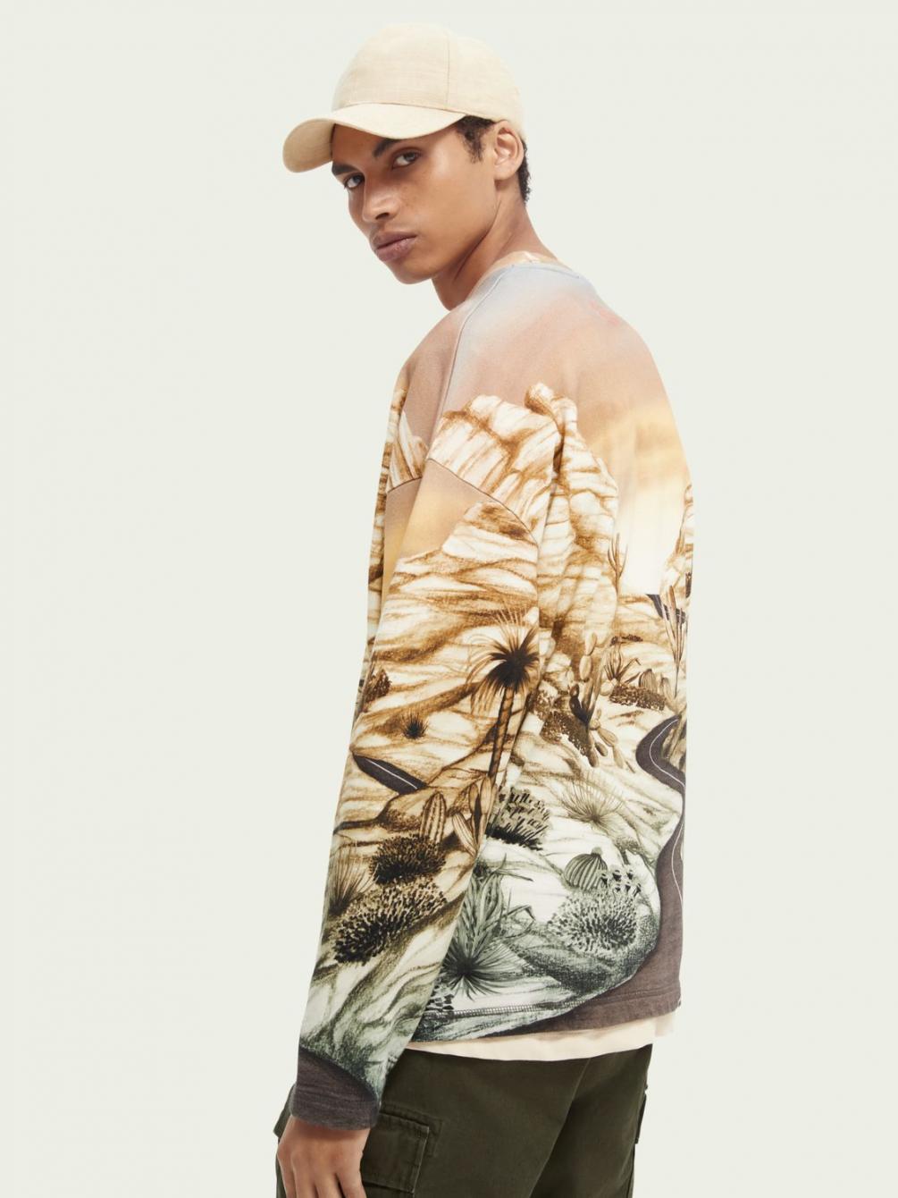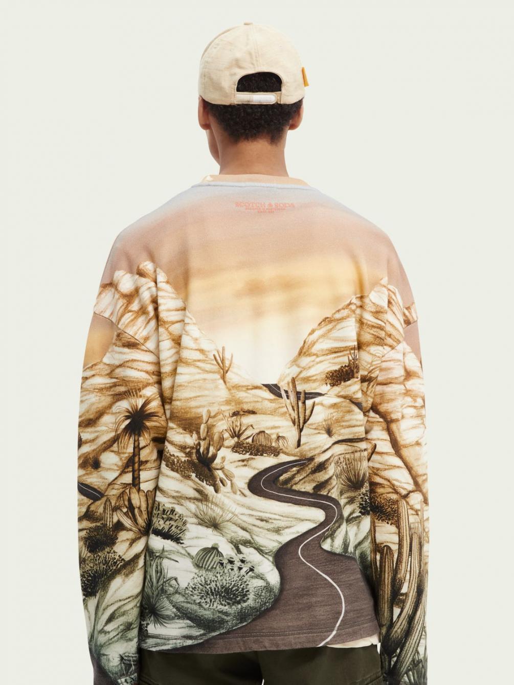 Het perfecte lounge-item: onze klassieker sweater met ronde hals en een droomlandschap.