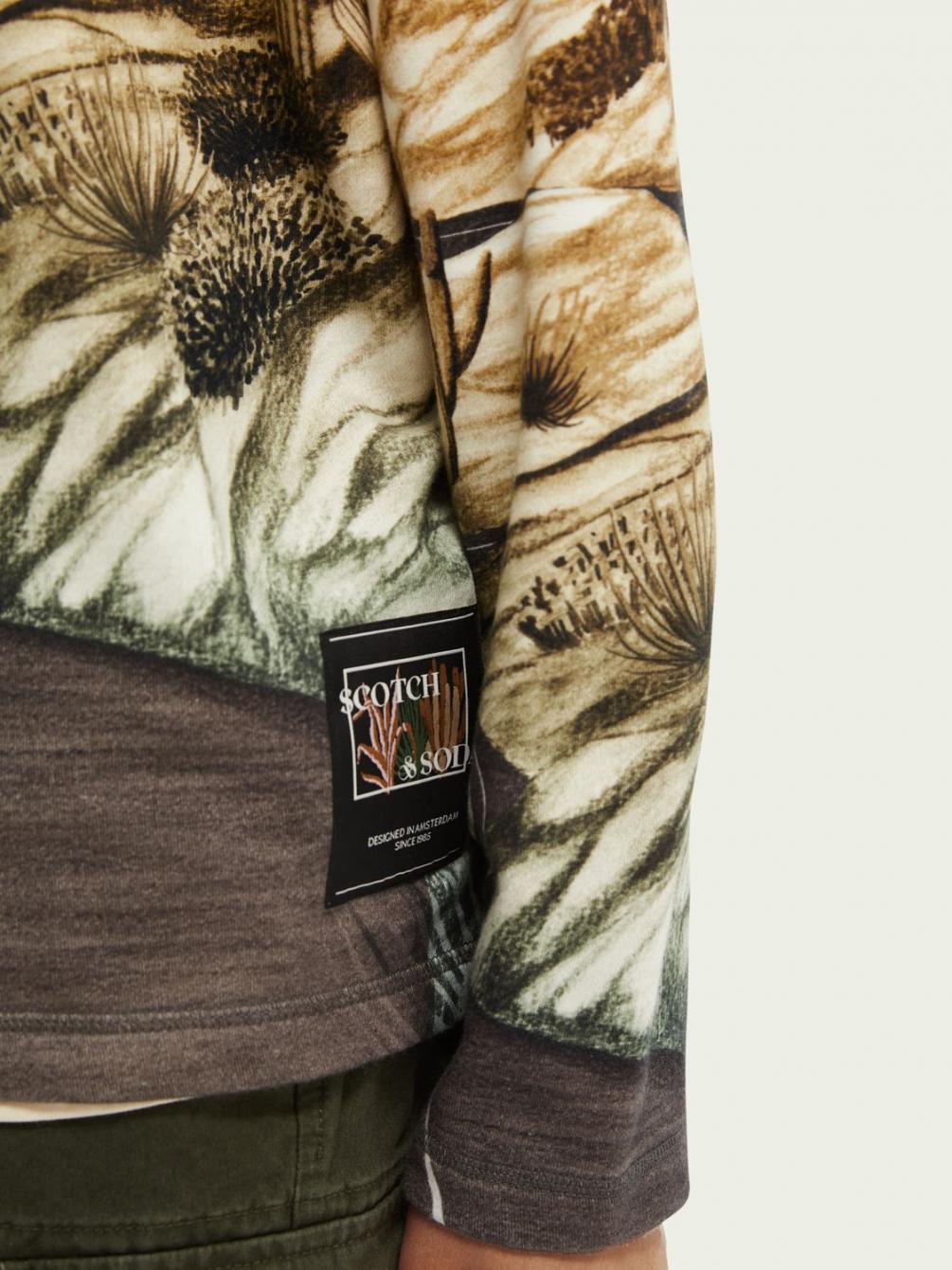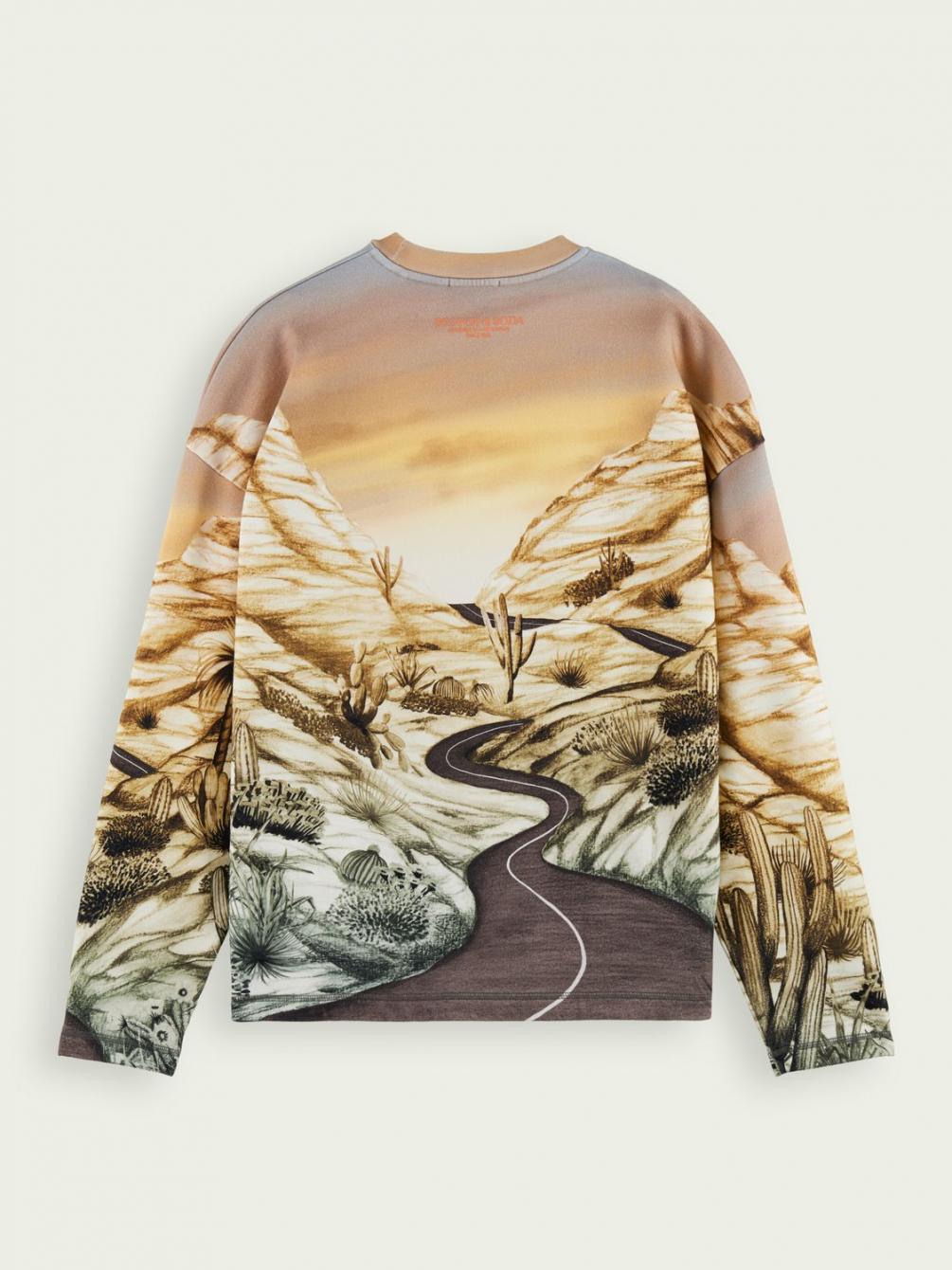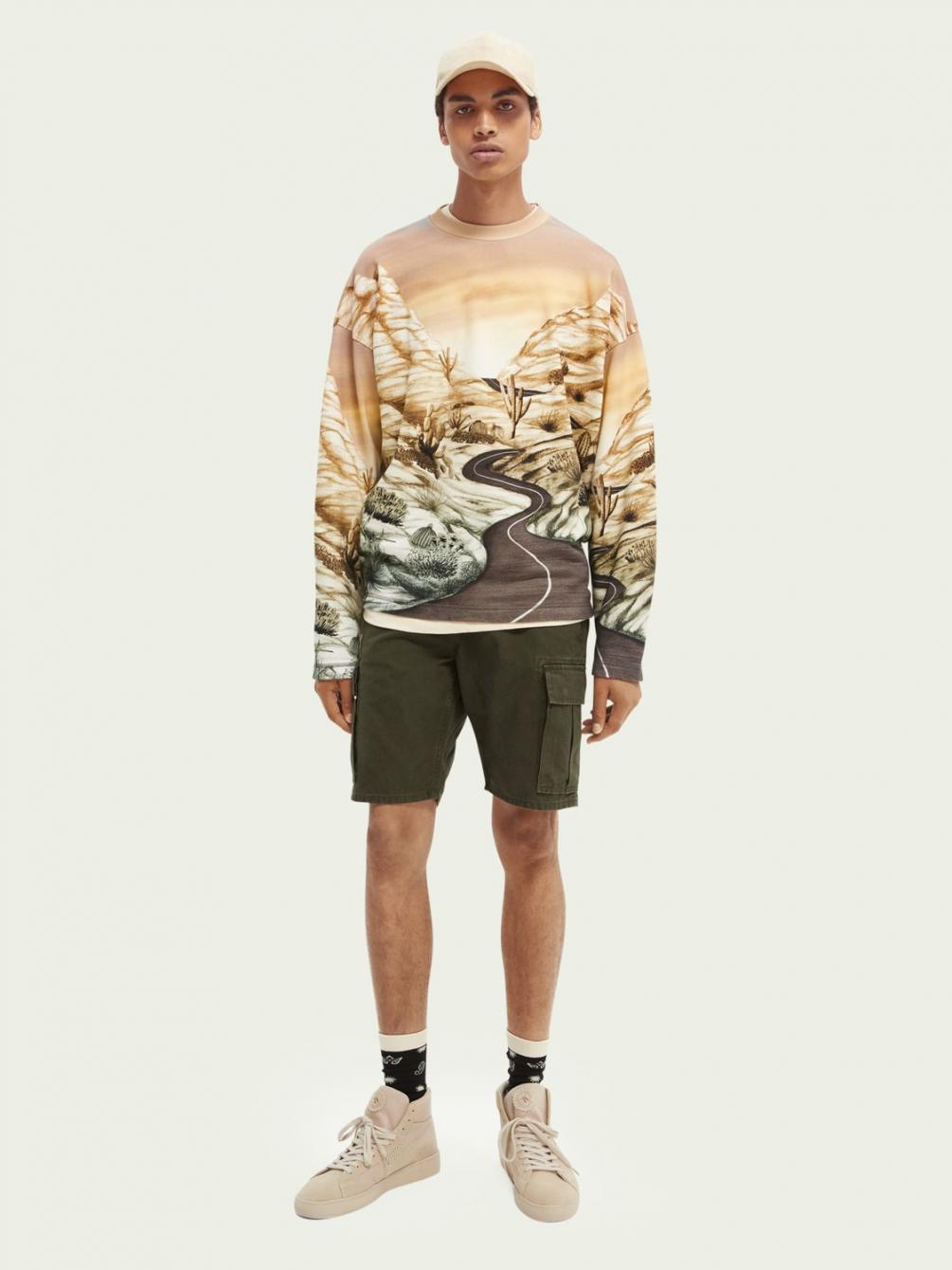Het perfecte lounge-item: onze klassieker sweater met ronde hals en een droomlandschap.